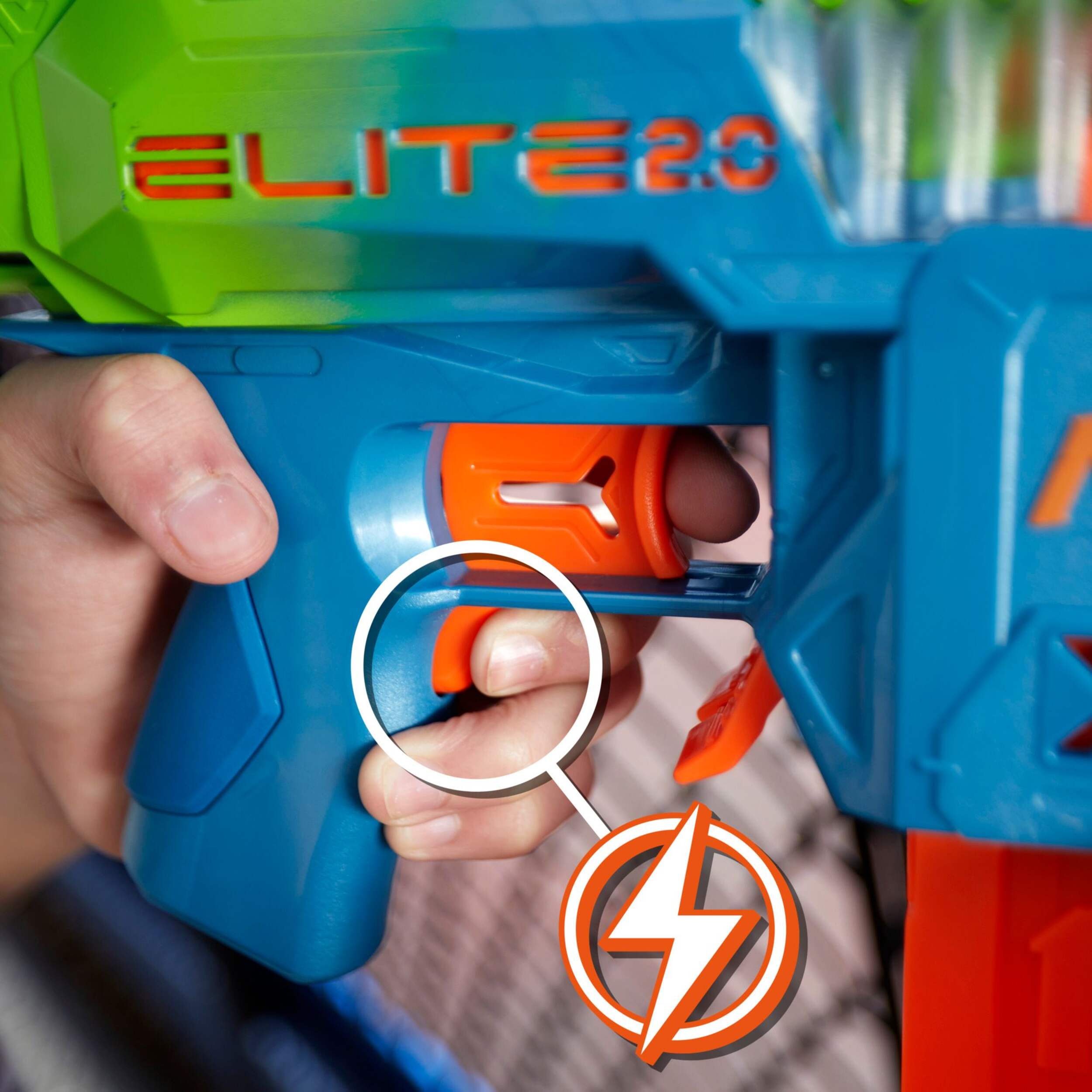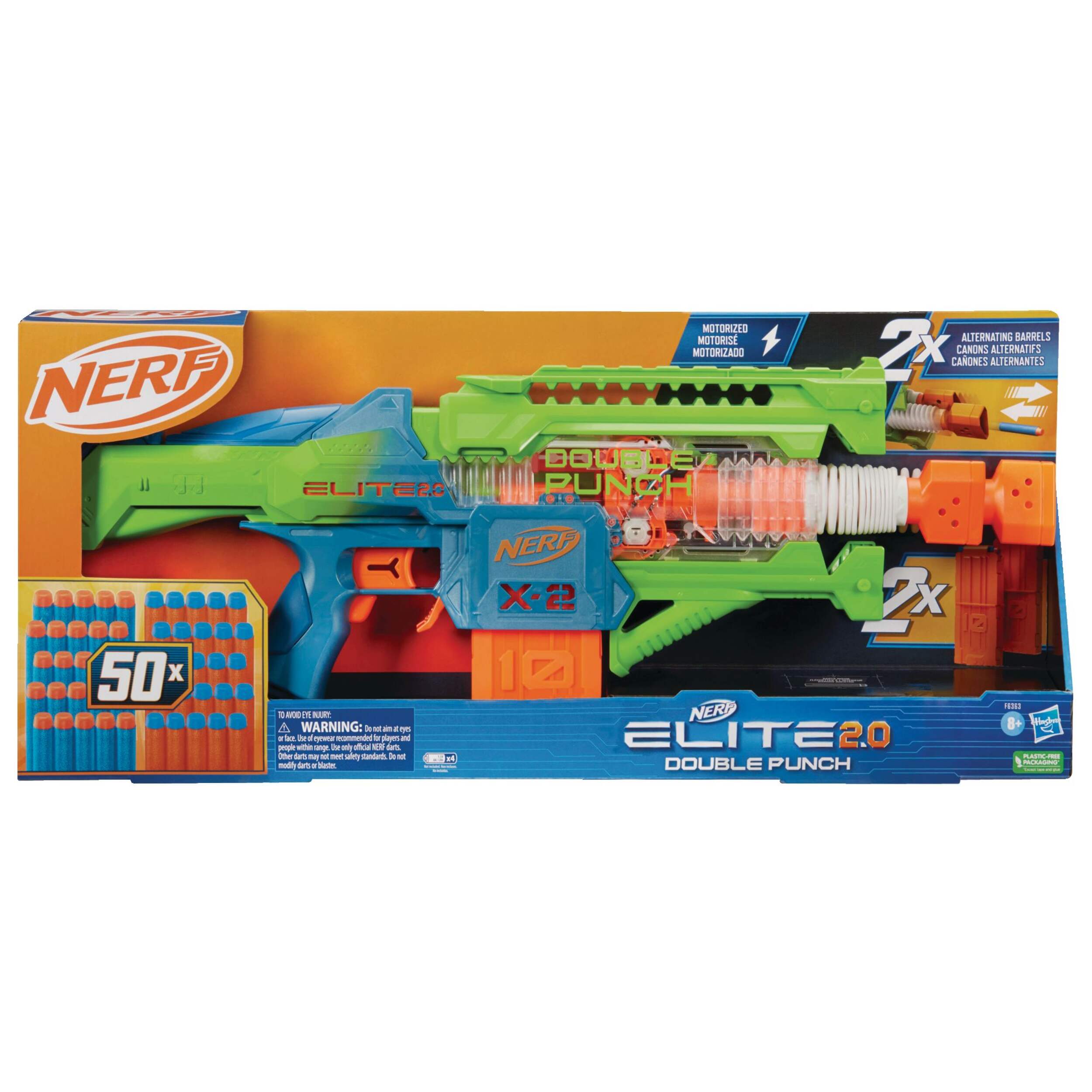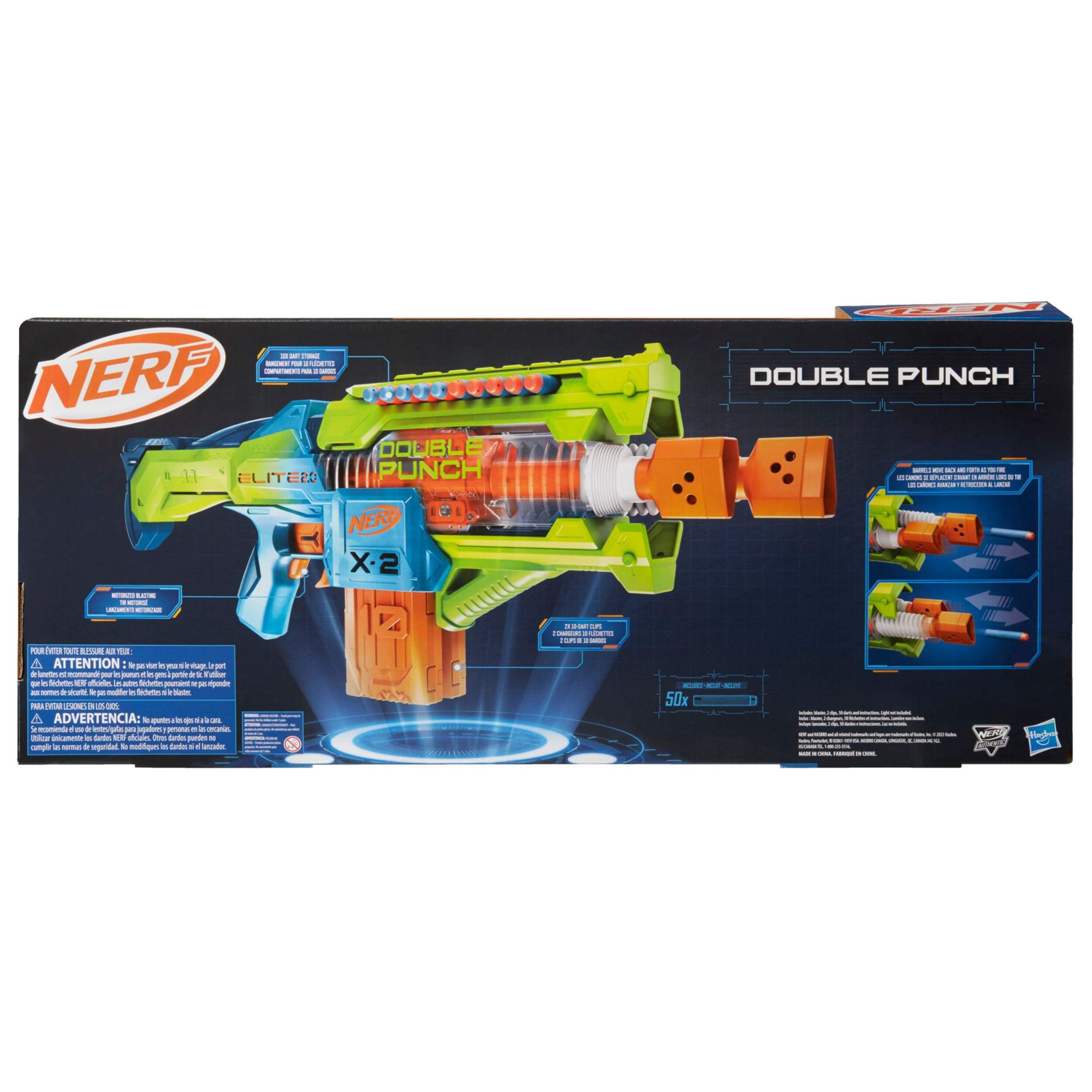 Doublez votre plaisir avec le lance-fléchettes NERF Elite 2.0 Double Punch à 2 canons et à 2 chargeurs. Comprend 2 canons alternés rapides qui se déplacent d'avant en arrière pendant que vous tirez des fléchettes.