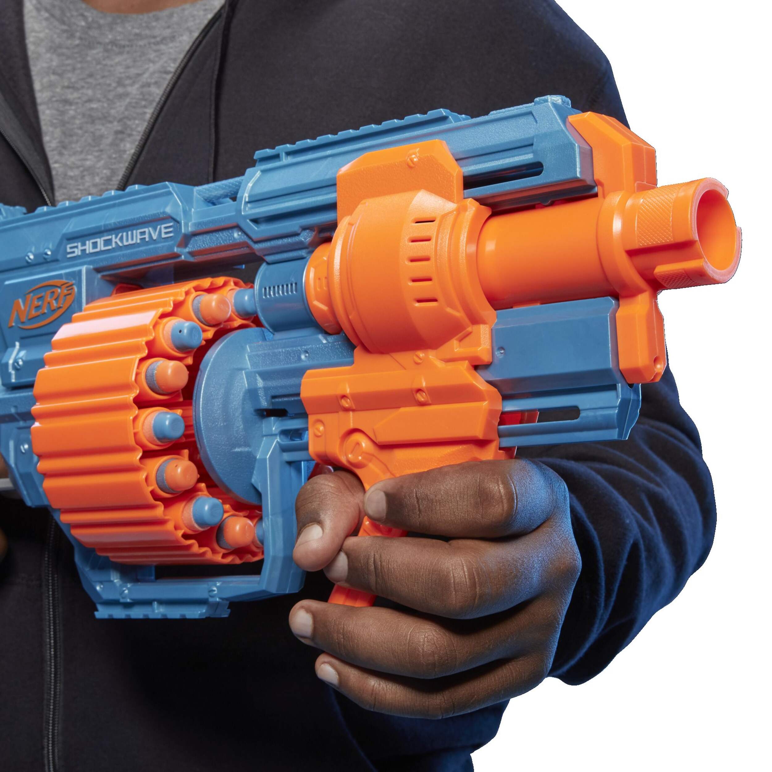 Personnalisez le foudroyeur en ajoutant des accessoires aux 3 rails tactiques, au point de fixation du canon et au point de fixation du crosse (extension du crosse et du canon non incluse)