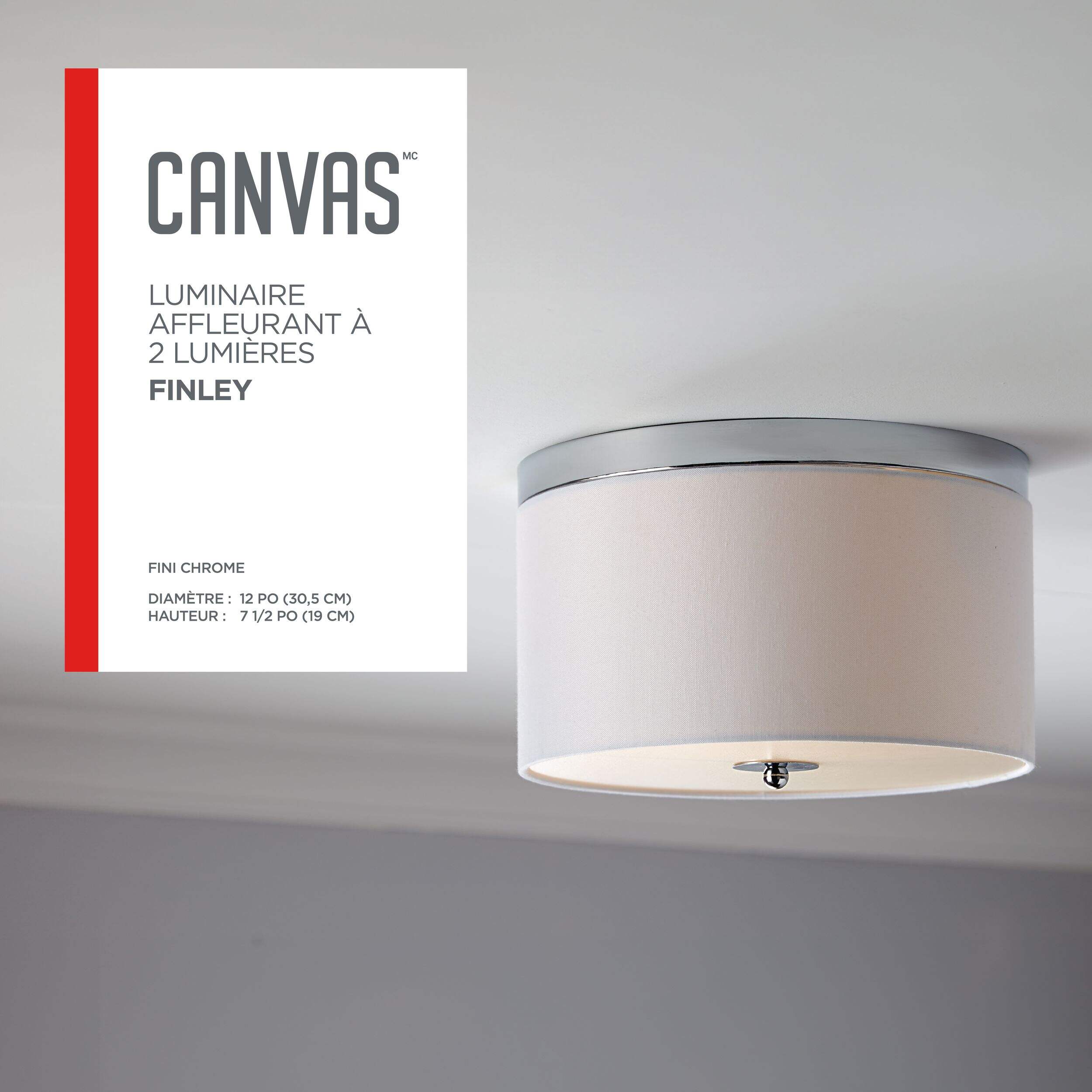 Modernisez n'importe quelle pièce de votre maison avec ce plafonnier CANVAS Finley tendance. Ce luminaire est doté d'un fini moderne qui ajoute une touche d'élégance aux espaces intérieurs, tandis que l'abat-jour en lin de haute qualité donne une allure décontractée à votre maison. Placez ce plafonnier moderne dans le salon, le couloir ou l'entrée pour une touche subtile, mais remarquable de classe, et profitez de son éclairage double.
