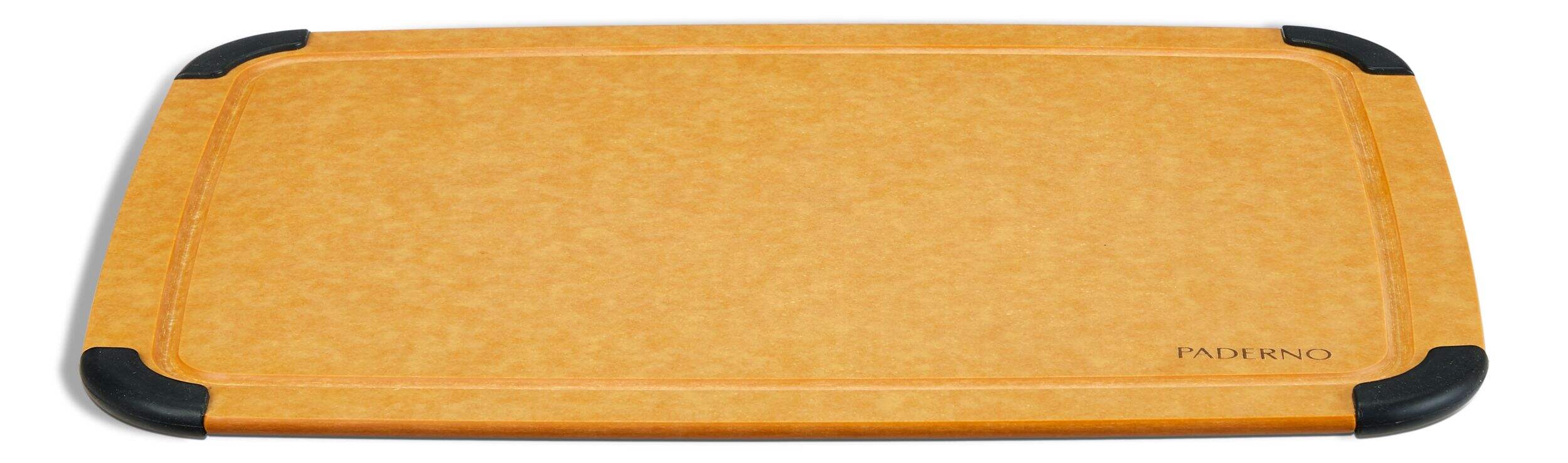 Hachez, tranchez et coupez en dés presque n'importe quoi avec la planche à découper en composite PADERNO. Cette planche à découper est faite d'une combinaison de résines phénoliques et de fibres de bois pour créer une surface très robuste et durable, mais douce pour les couteaux afin de prévenir le ternissement. Conçue dans un souci de commodité, cette planche à découper lavable au lave-vaisselle est dotée de coins en caoutchouc pour éviter de glisser pendant le découpage, ainsi que d'une rainure le long du bord pour recueillir les liquides avant qu'ils ne se répandent sur votre plan de travail.