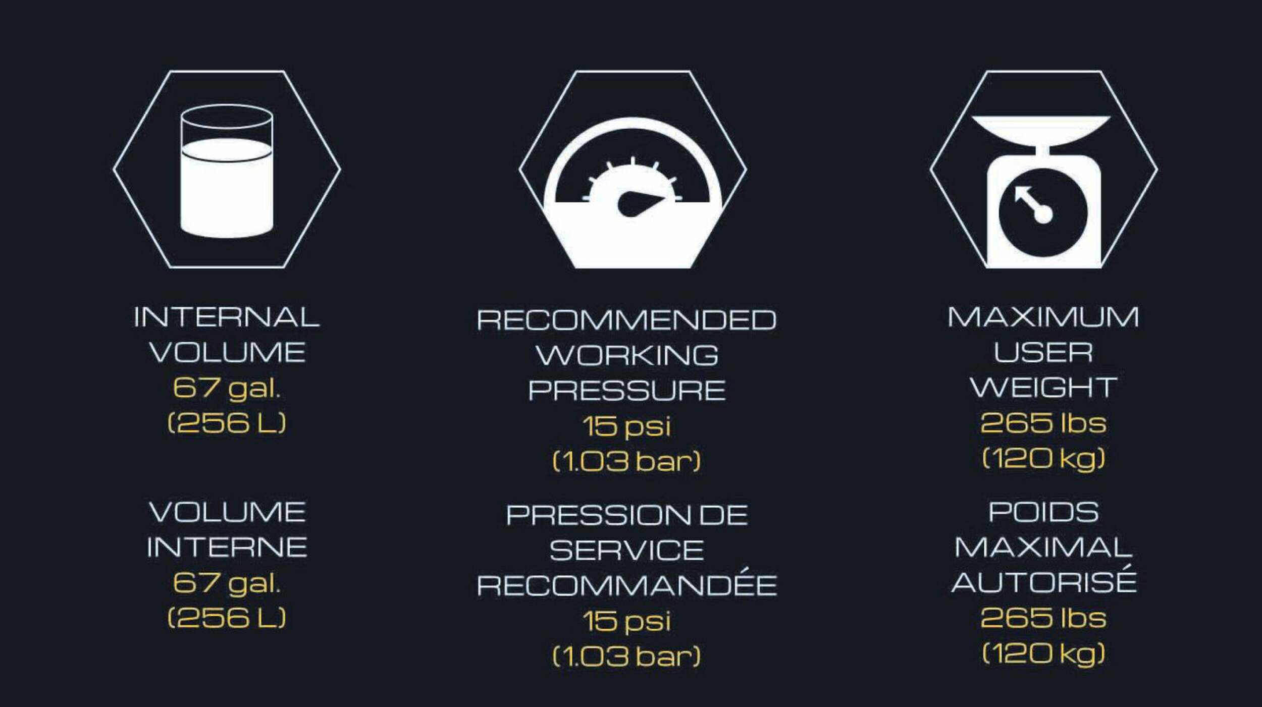 | Gonflage maximum (lb-po) | 15 lb/po² |