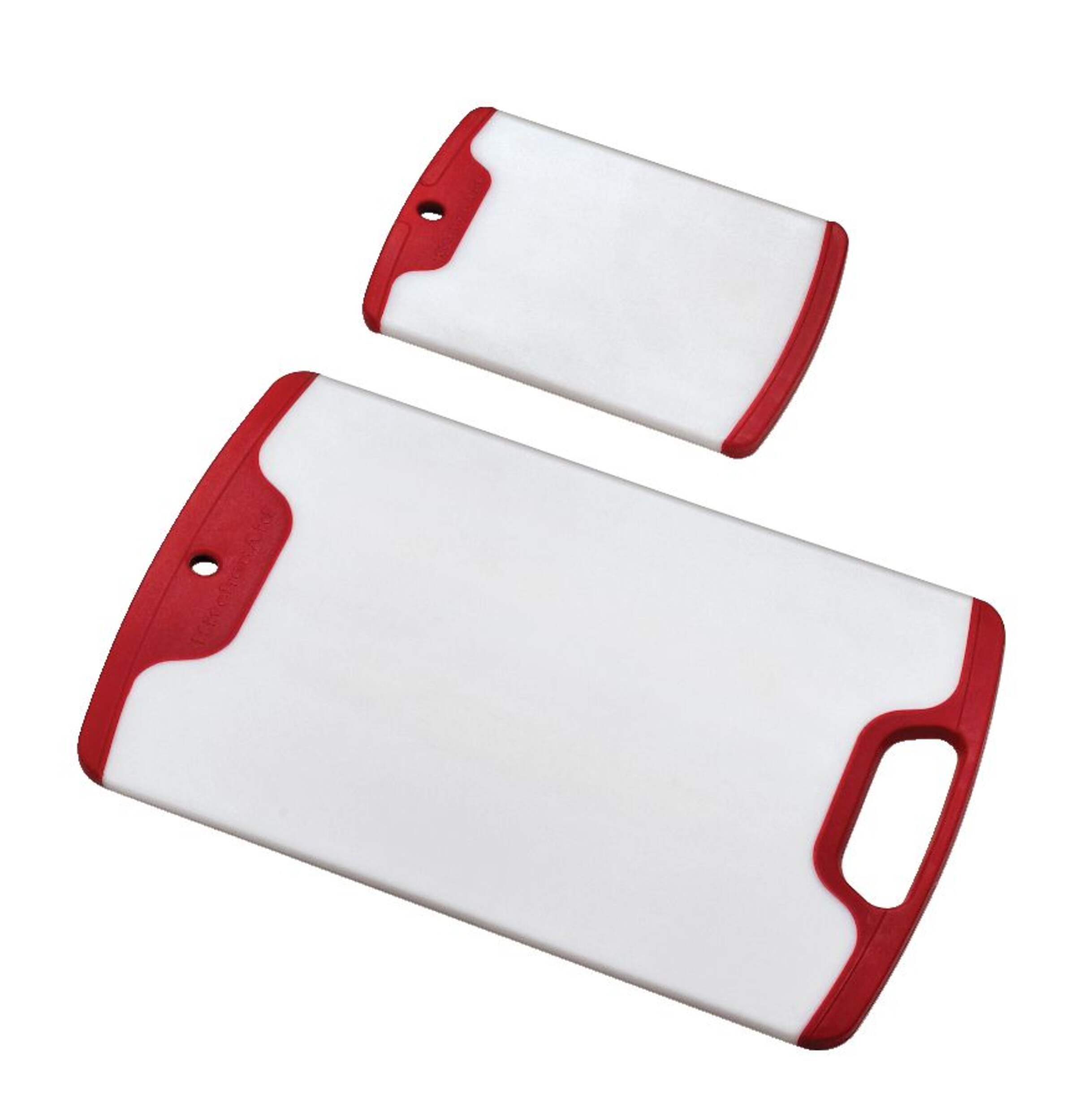Les planches à découper en polyéthylène MASTER Chef en paquet de 2 offrent une solution pratique et durable pour les tâches quotidiennes de préparation en cuisine. Ces planches à découper antidérapantes sont faites de polyéthylène robuste sans BPA, ce qui assure qu'elles peuvent résister à une utilisation intensive sans émousser vos couteaux. Leur surface non poreuse résiste aux mauvaises odeurs et aux bactéries, gardant votre cuisine propre et hygiénique. Légères et robustes, ces planches à découper sont parfaites pour tout cuisinier ou chef à la maison.