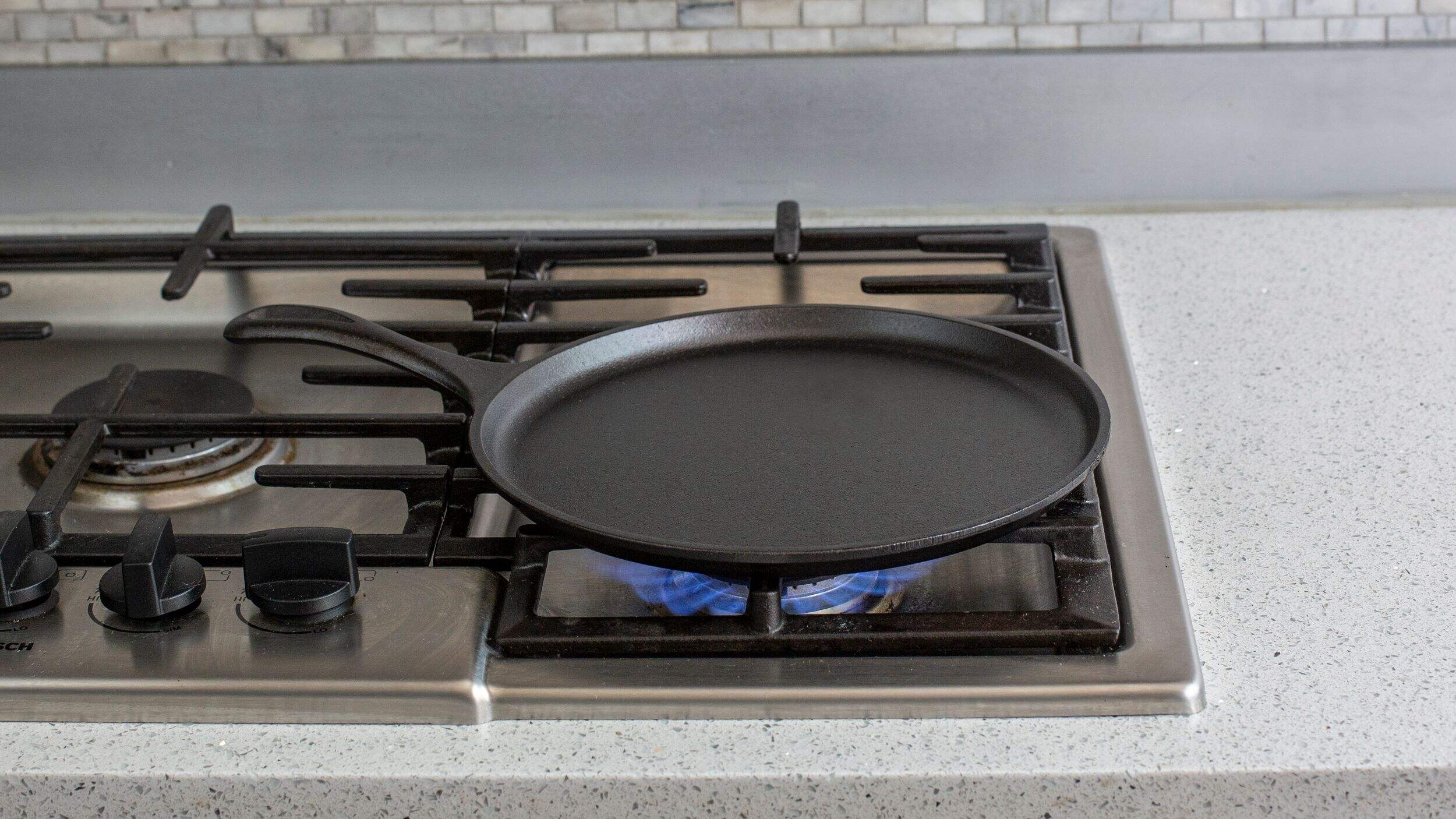 Plaque en fonte culottée avec rebords Lodge offrant une excellente distribution et rétention de la chaleur pour une cuisson uniforme et constante