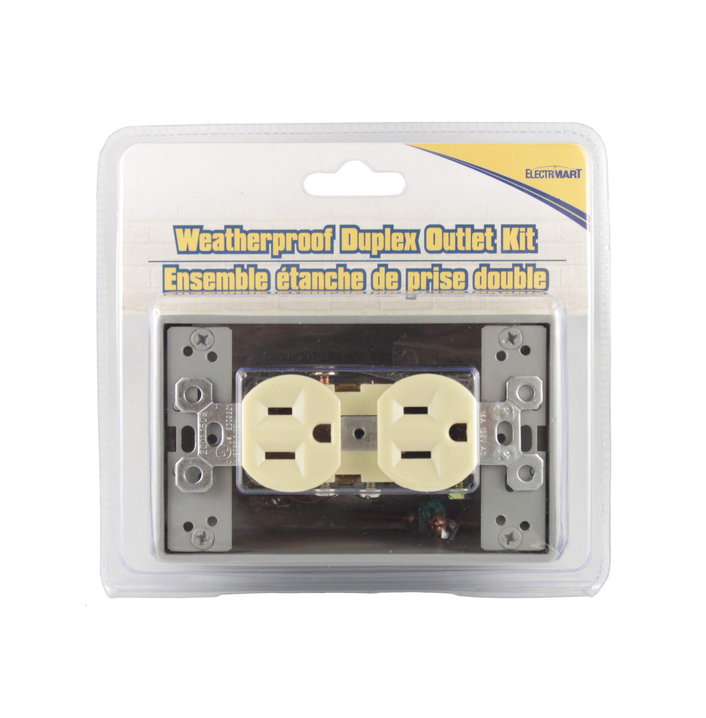 Prise double et plaque étanche Leviton est un ensemble comprenant 1 prise double de qualité résidentielle et 1 couvercle autofermant gris