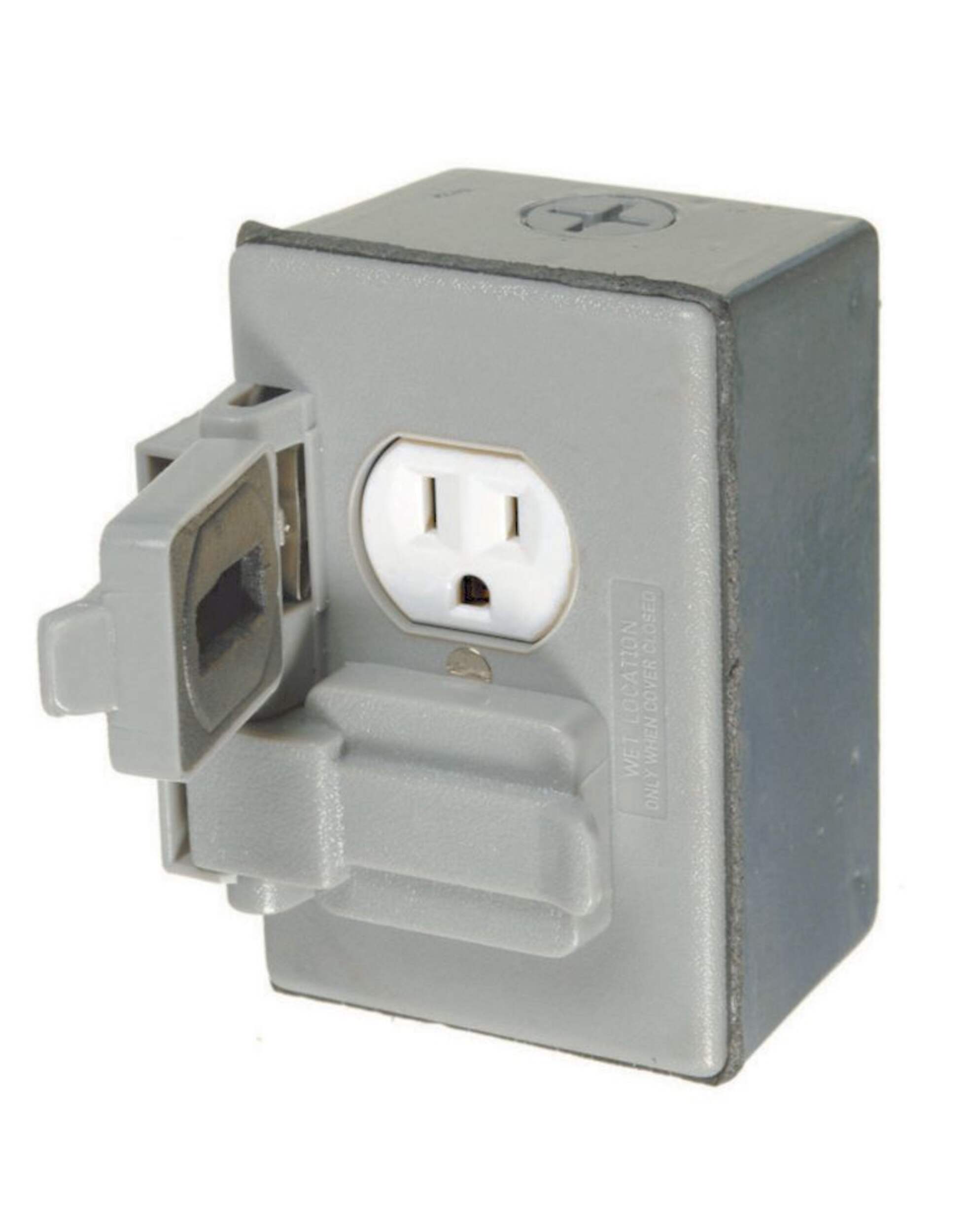 Plaque murale de prise de courant double 1 gang, résistante aux intempéries, en nylon thermoplastique, pour montage de dispositif, horizontale, couvercles à fermeture automatique - GRIS. Conforme à la section 406 du Code national de l'électricitéMD (2017). 9 pour les boîtiers étanches dans les endroits humides et mouillés.