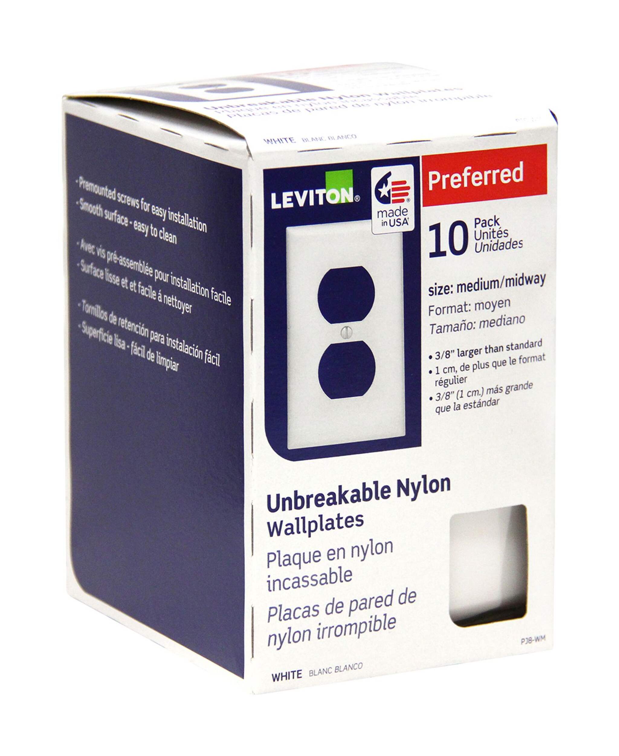 Plaque murale pour prise double Leviton en nylon incassable, pour la plupart des prises doubles standards