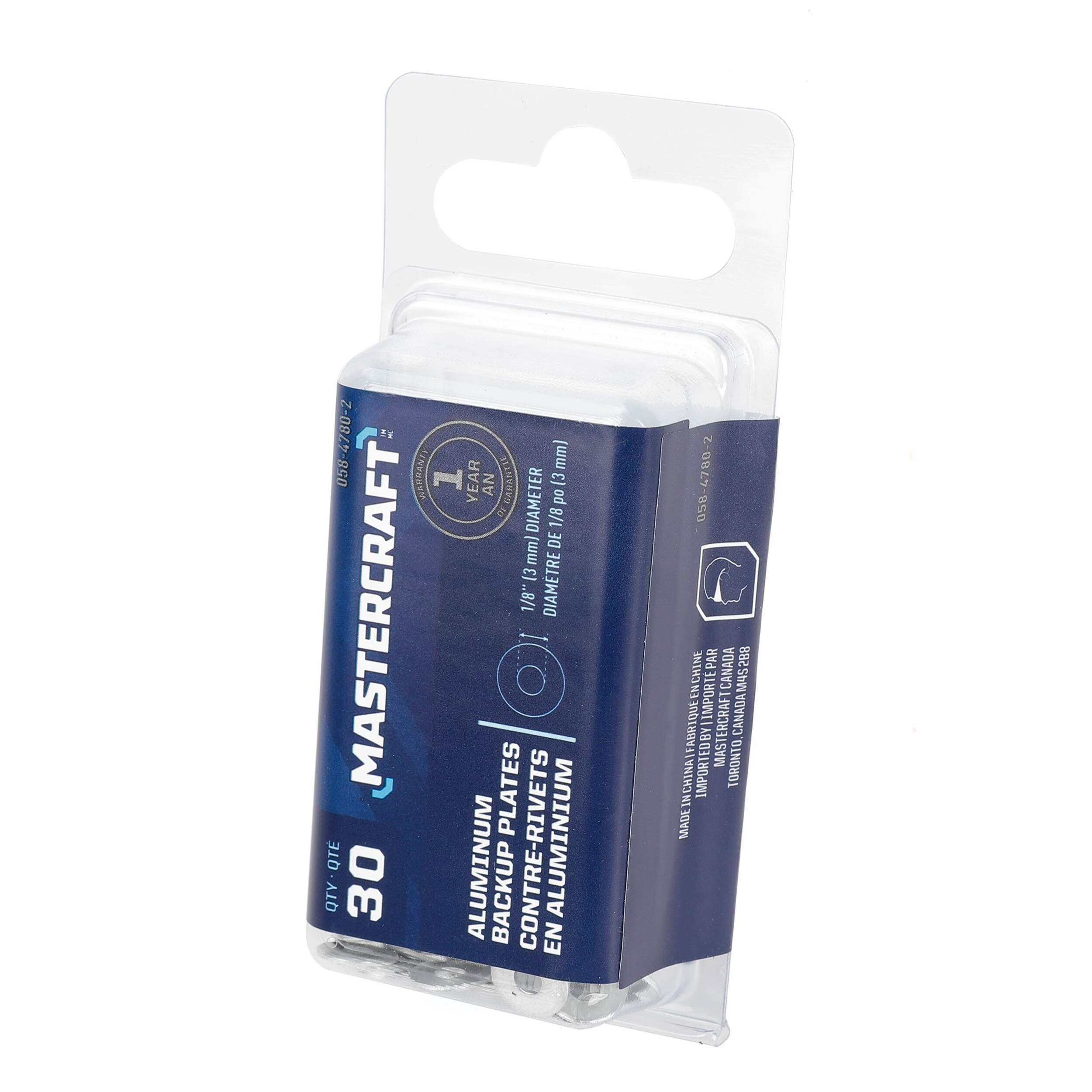 Les plaques de renfort en aluminium Mastercraft offrent un soutien robuste pour la fixation des rivets dans 30 tailles variées. Faites d'aluminium pour une excellente résistance à la corrosion, ces plaques à rivet de résistance moyenne ont une surface plane pour supporter la pression des rivets pendant l'installation. Avec la durabilité de l'aluminium et une multitude de tailles pour plus de polyvalence, ce paquet de 30 plaques de réserve est idéal pour renforcer les raccords de rivets.