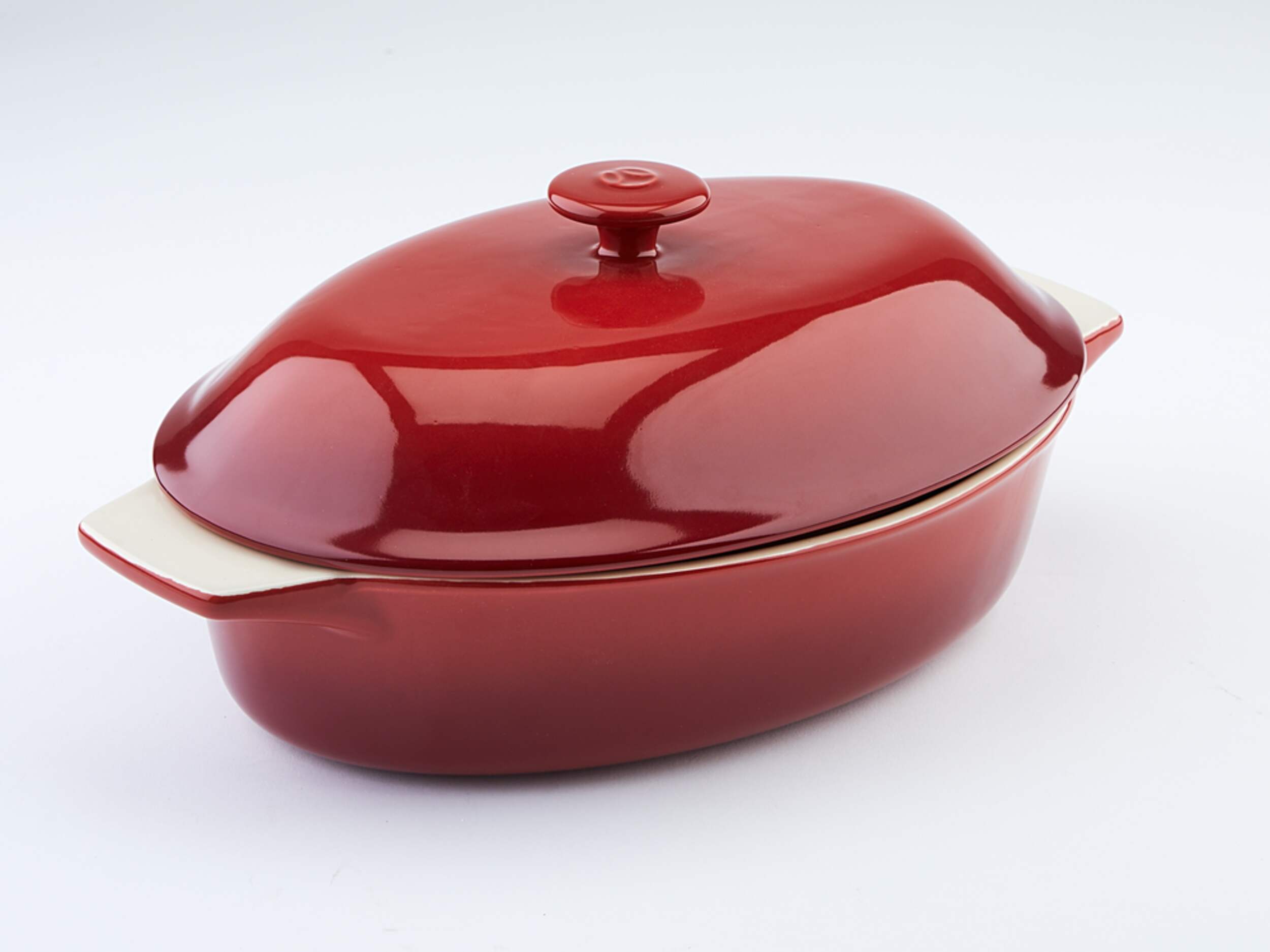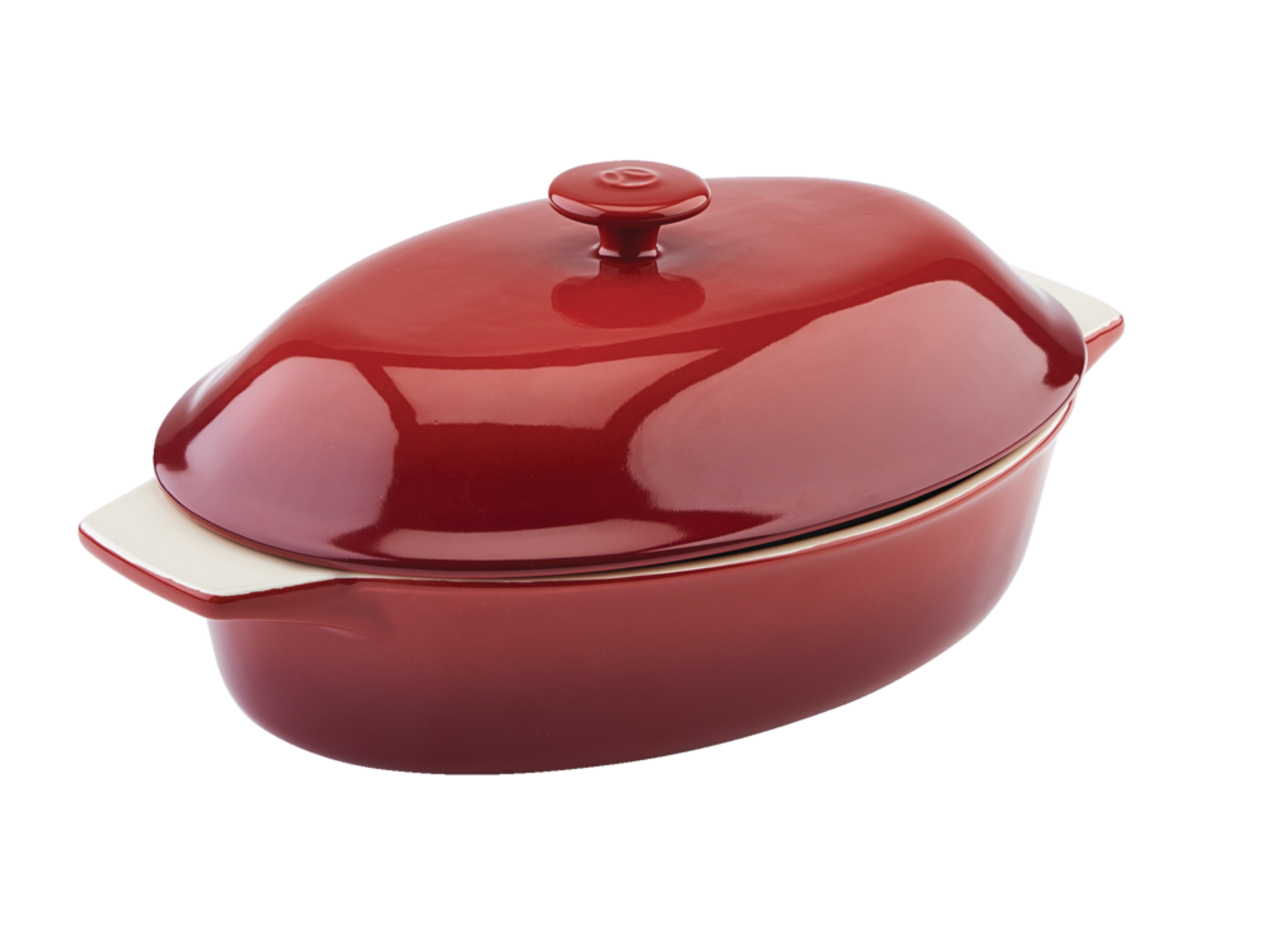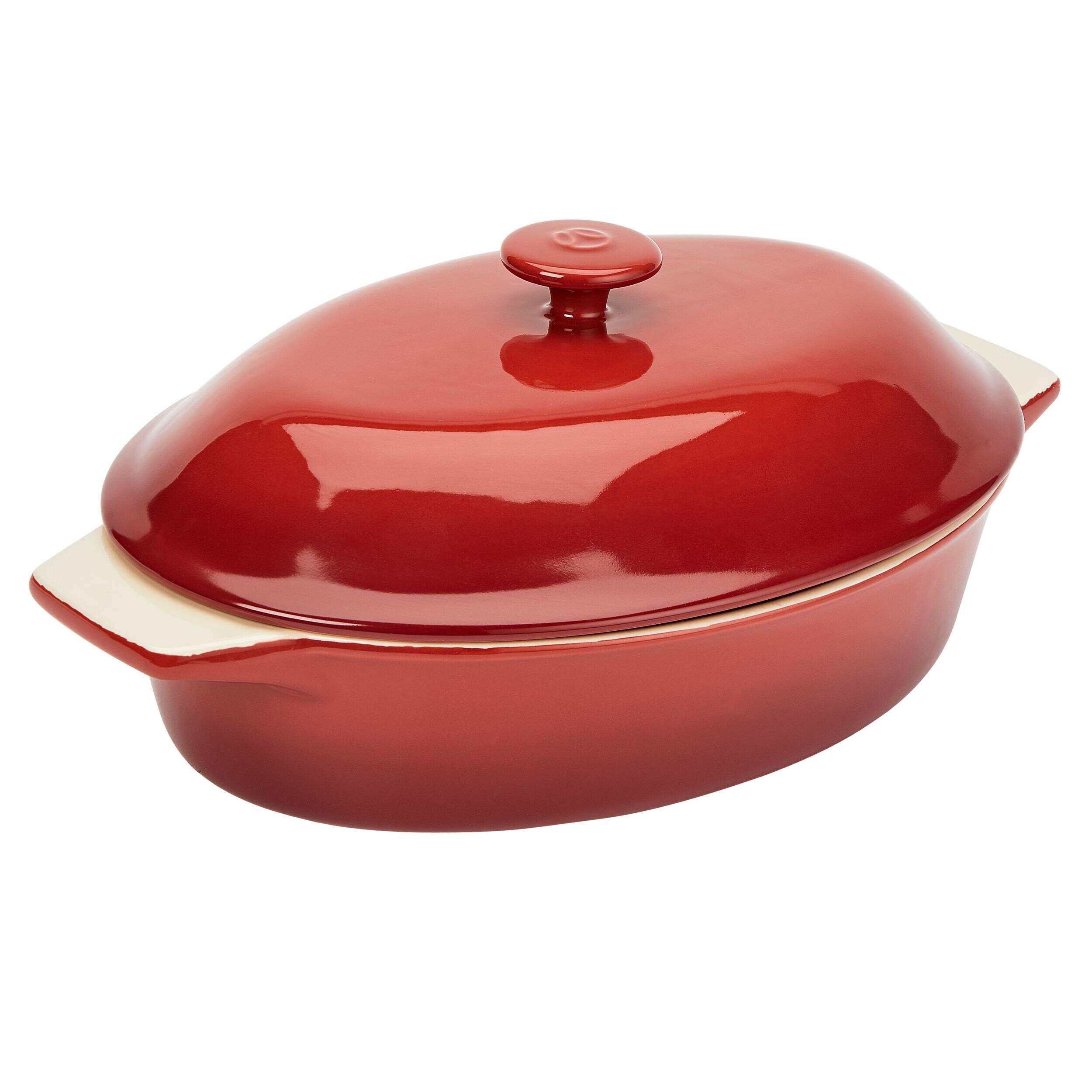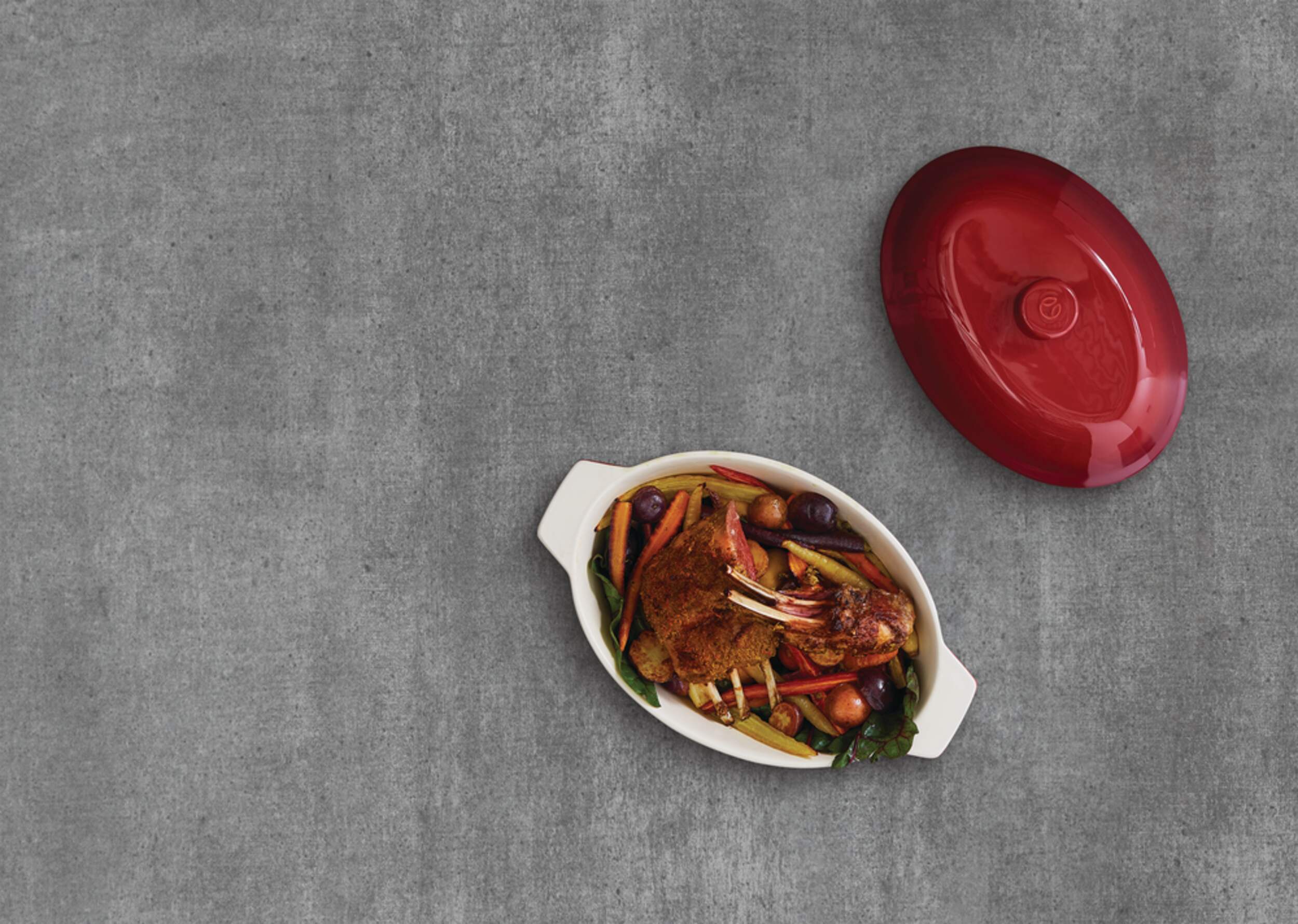 Servez les plats du four à la table avec l'élégant plat de cuisson PADERNO Signature en céramique, avec couvercle