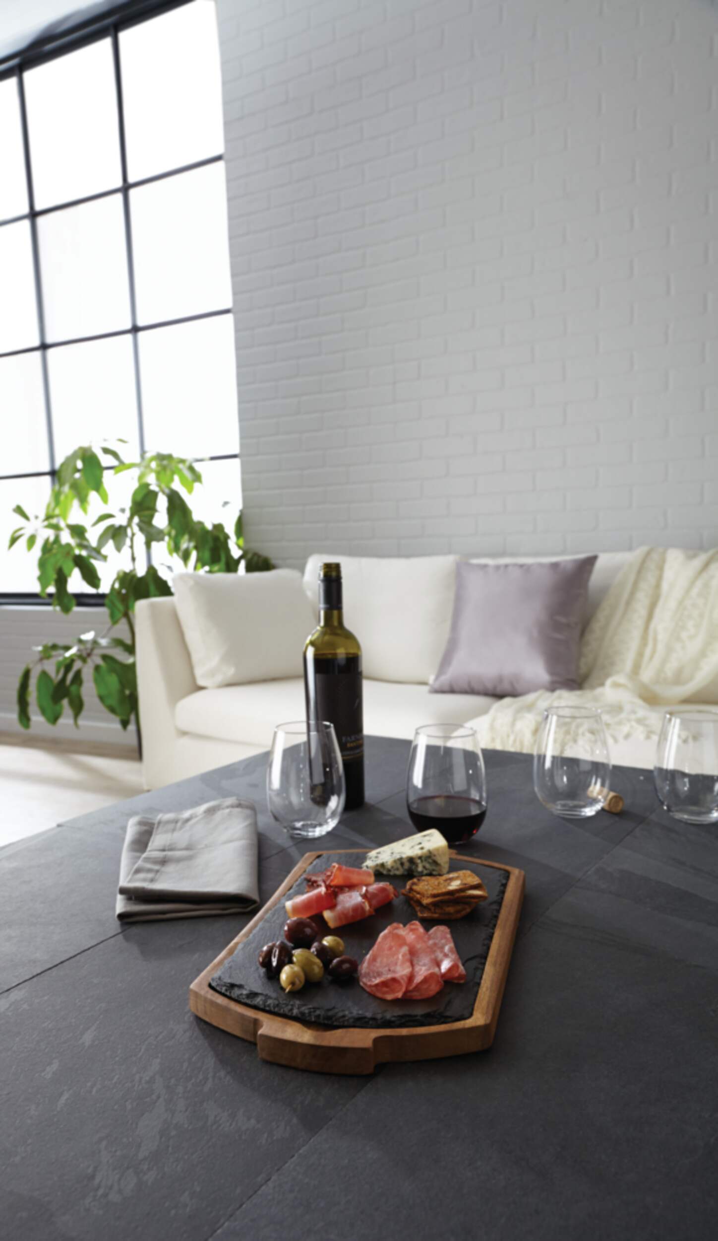 Plateau CANVAS en acacia avec garniture en ardoise pour servir vos créations préférées avec élégance