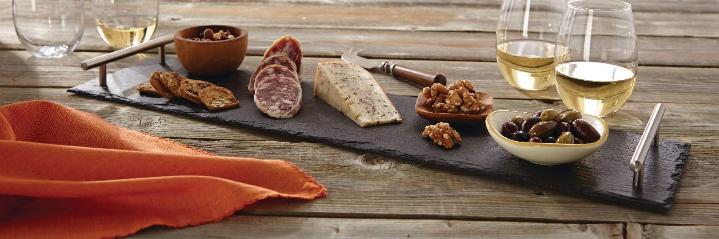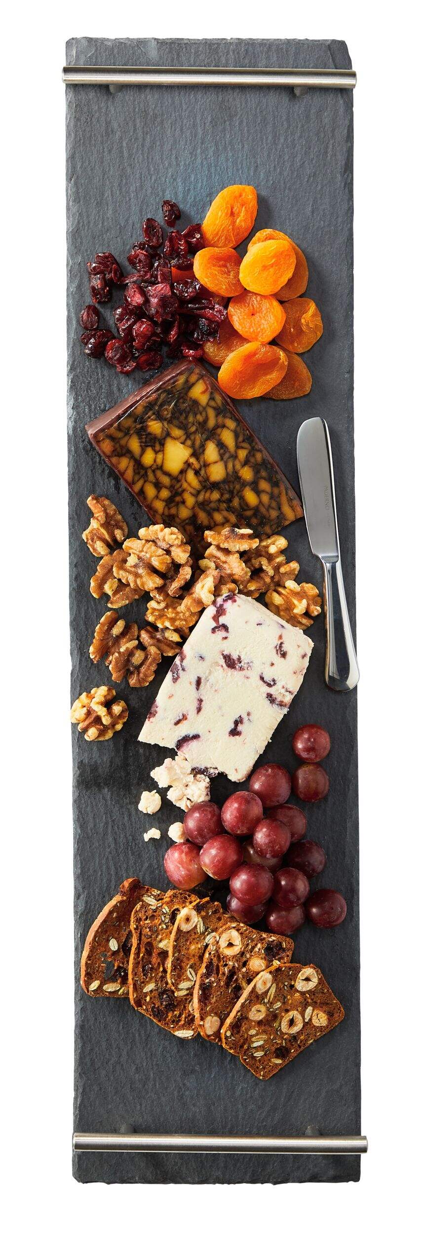 Plateau en ardoise avec poignées CANVAS doté de poignées élégantes en métal pour faciliter le transport de la cuisine à la table