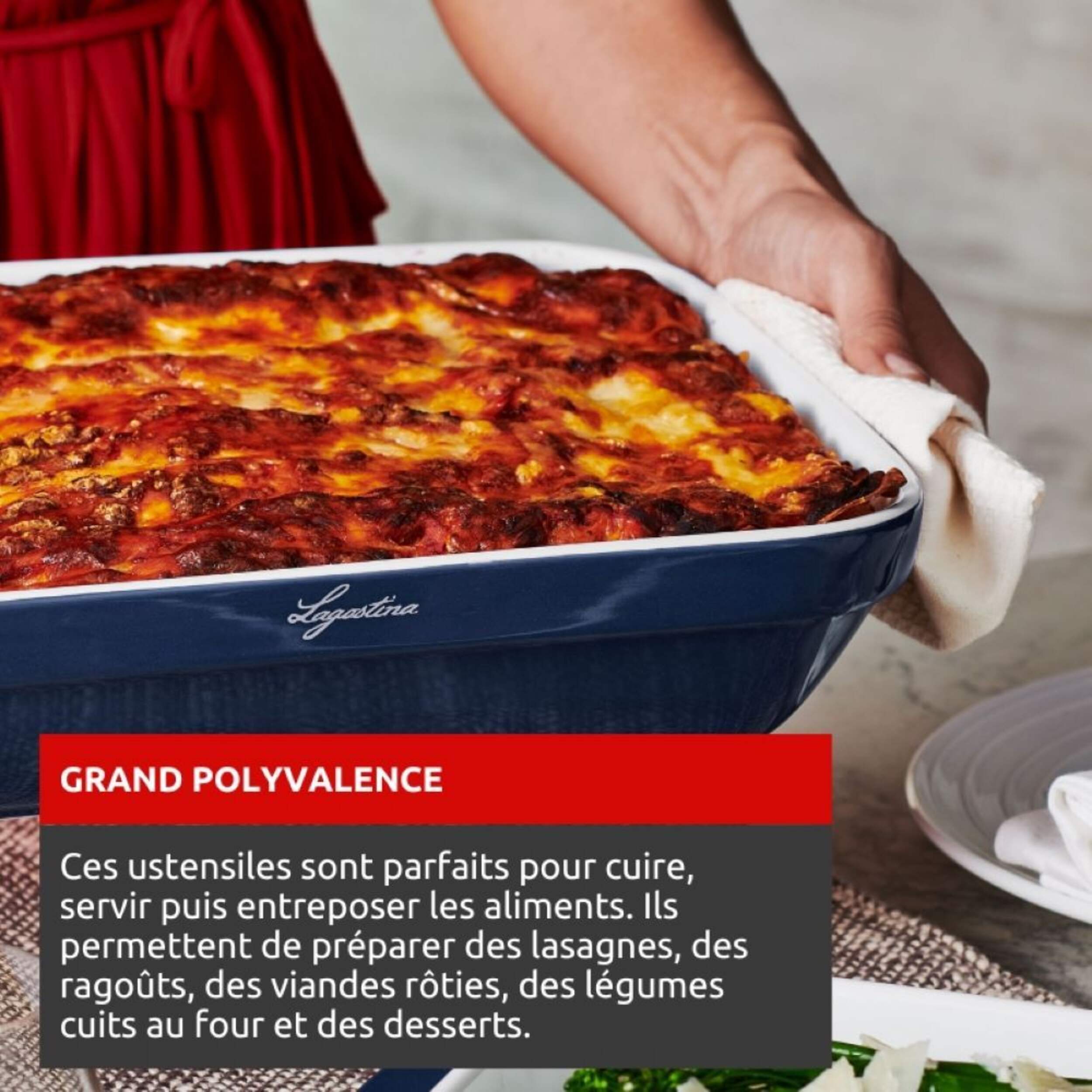 GRANDE POLYVALENCE : plats parfaits pour la cuisson, le service et le rangement, vous permettant de préparer des lasagnes, des ragoûts, des viandes rôties, des légumes cuits au four et des desserts