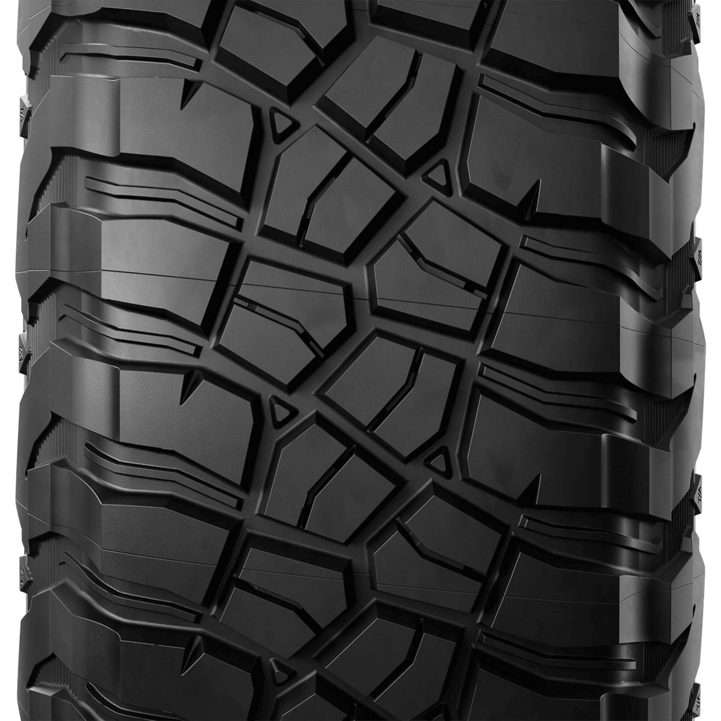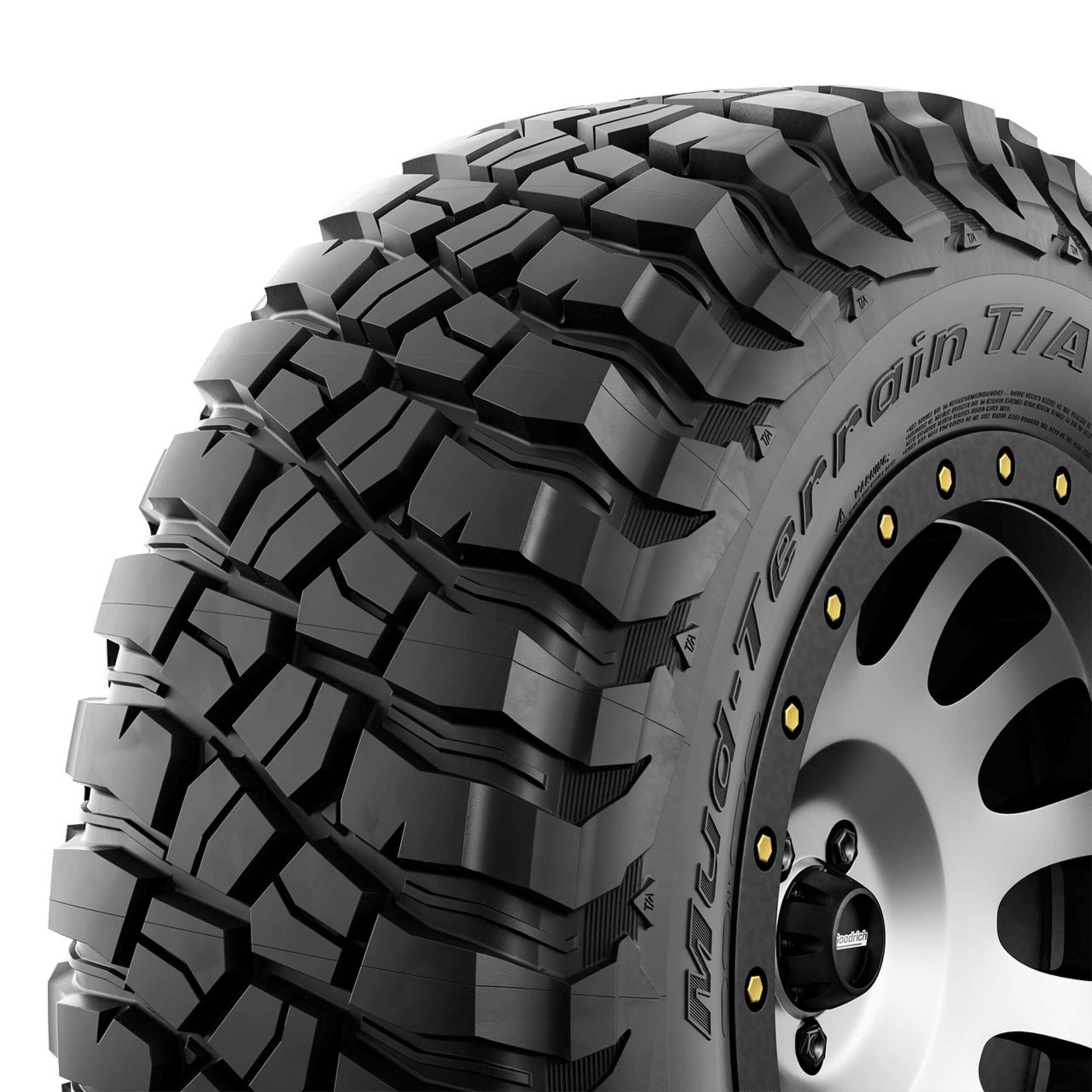Pneu toute saison BFGoodrich Mud terrain T/A KM3 pour camions et VUS qui amène conquérir les éléments à un tout autre niveau. Mud-Terrain KM3 qui offre une adhérence 5 % supérieure dans la boue grâce à sa bande de roulement Terrain-Attack avec énormes blocs qui adhèrent sous tous les angles. Composé de caoutchouc de pointe qui adhère aux surfaces glissantes, vous permettant de conquérir la roche avec une adhérence supérieure de 8 %. Technologie Linear FlexZone qui permet au pneu de fléchir et de contourner les obstacles lorsque la pression d'air est base et flancs 27 % plus robustes avec technologie CoreGard Max et sculpture Traction-Armor qui protègent contre les perforations. Ensemble, ces caractéristiques vous permettent d'aller plus loin et plus vite sur n'importe quel terrain avec la confiance que procurent l'adhérence et la robustesse extrêmes.
