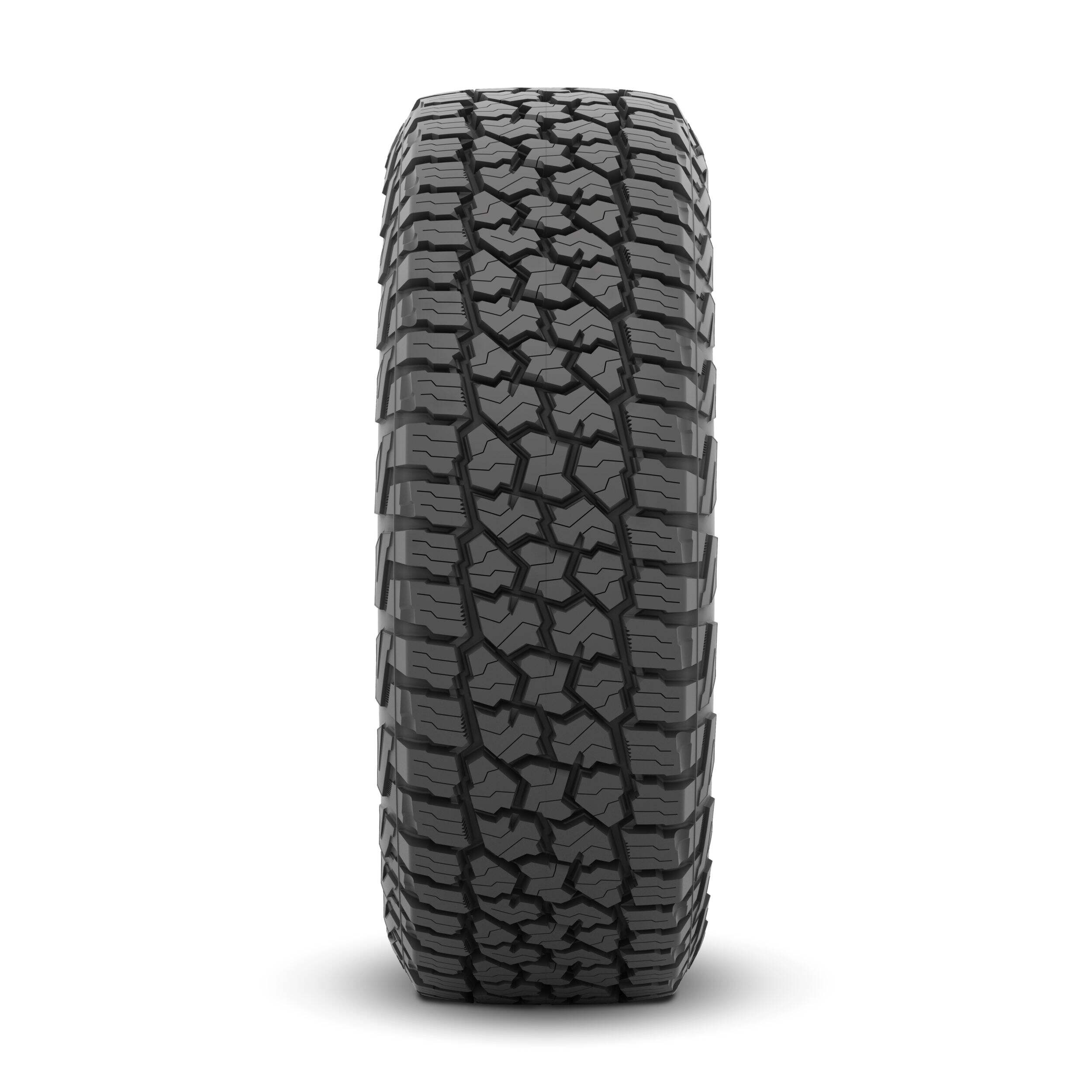 Épaulement à conception robuste qui comprend des bords de bande de roulement incurvés, de larges rainures et des crochets latéraux, procurant adhérence et traction pour la durée de vie du pneu