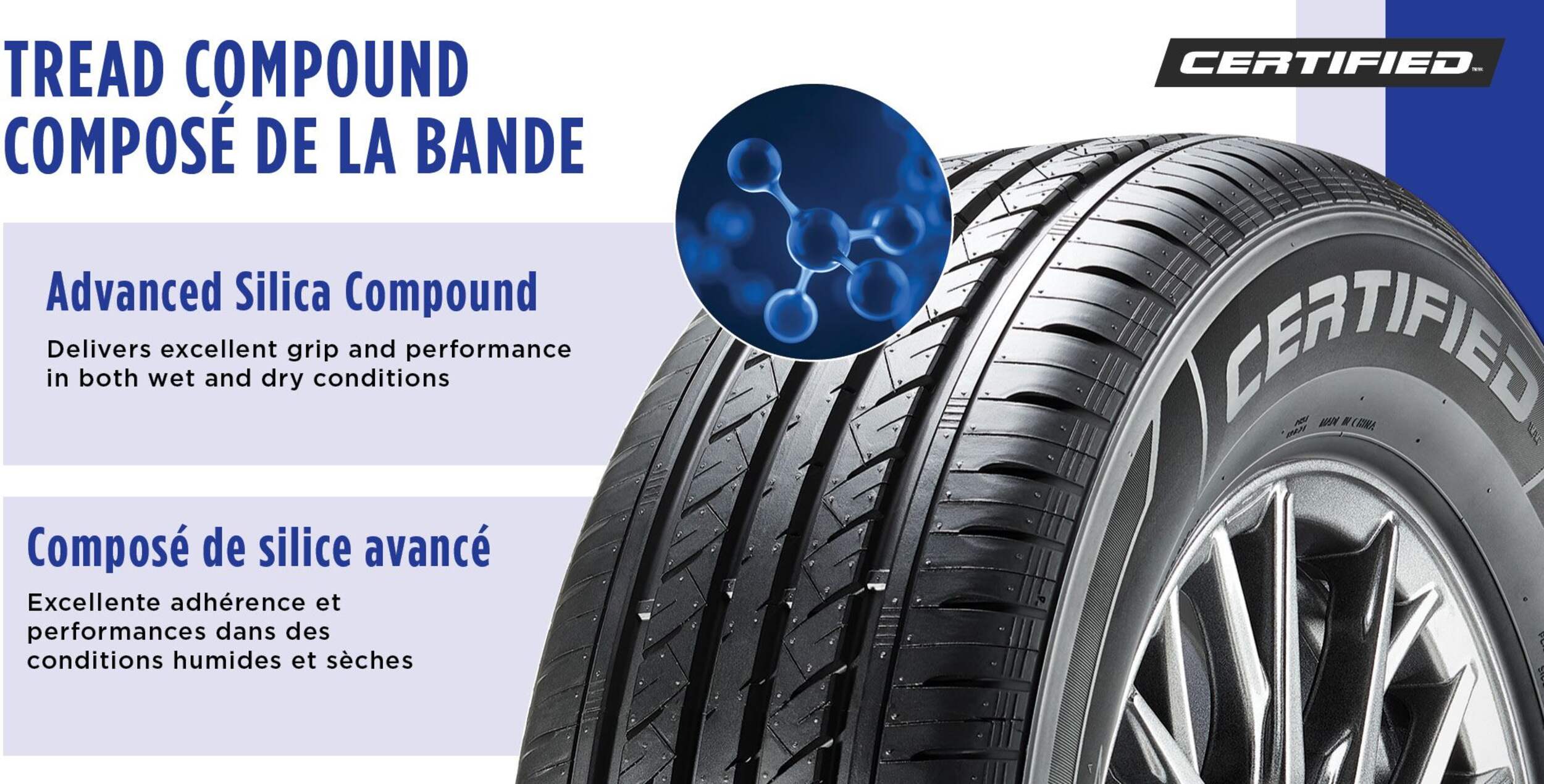 Adhérence et freinage améliorés sur les chaussées mouillées grâce à son composé en silice