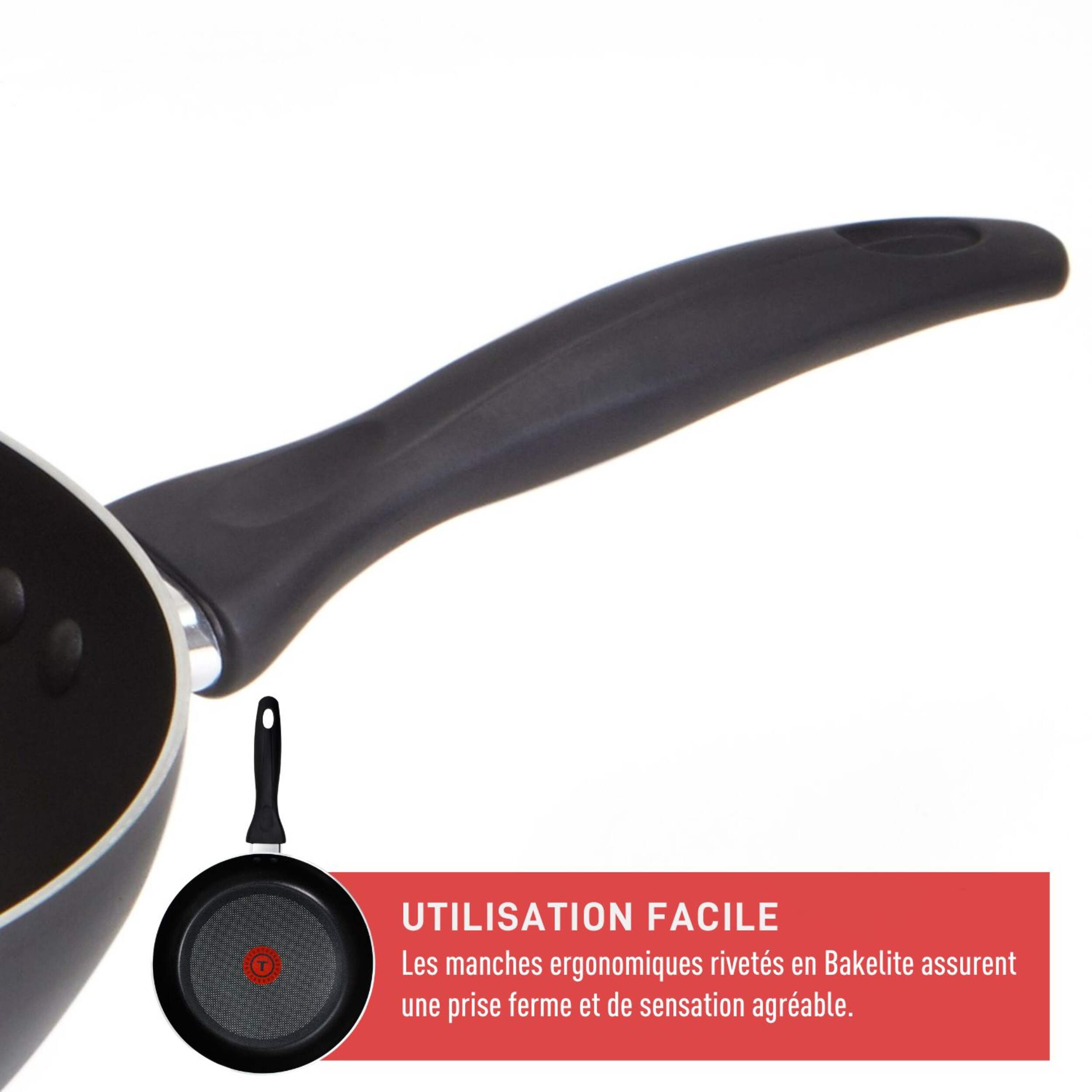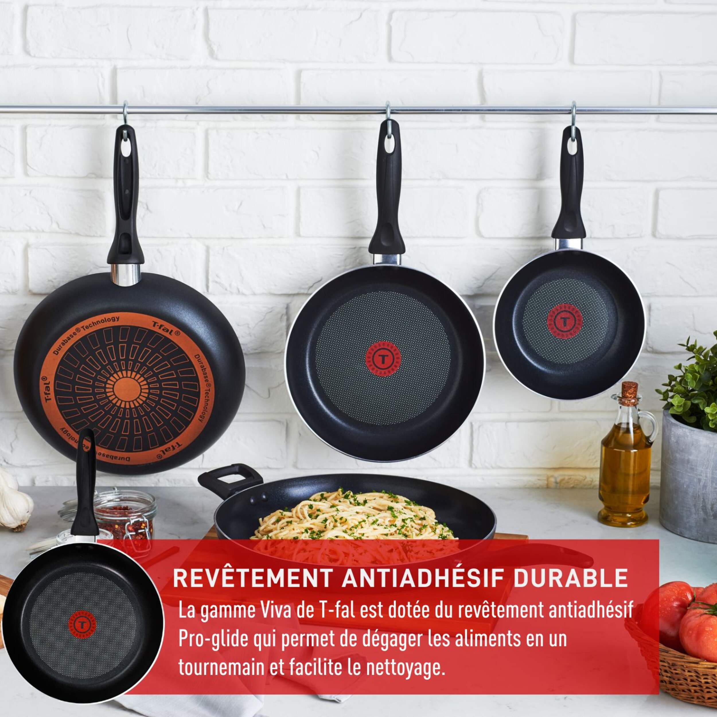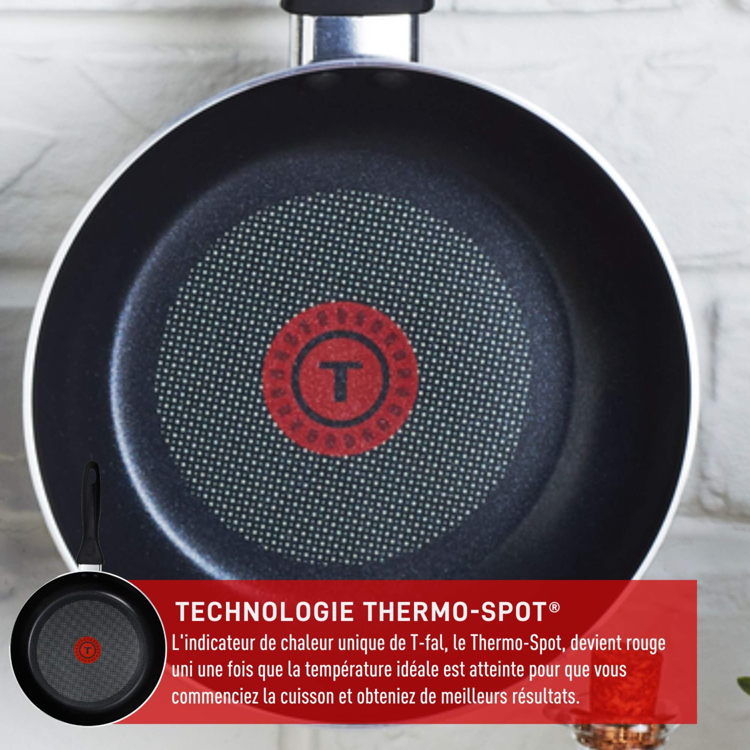 En avez-vous assez des résidus collants et brûlés dans votre poêle à frire? Le revêtement antiadhésif exclusif de T-Fal permet aux aliments de glisser, ce qui facilite la cuisson et le nettoyage. Le Thermo-Spot pratique au centre vous indique quand la poêle est préchauffée et prête à utiliser pour saisir les aliments. Une fois que vous avez préparé un délicieux repas, vous pouvez mettre cette poêle polyvalente directement au four (jusqu'à 400 °F) ou au lave-vaisselle grâce à sa construction durable qui va au four et au lave-vaisselle. Que vous souhaitiez faire sauter des légumes sur la cuisinière ou cuire du poulet au four, cette poêle tout usage répondra à tous vos besoins.