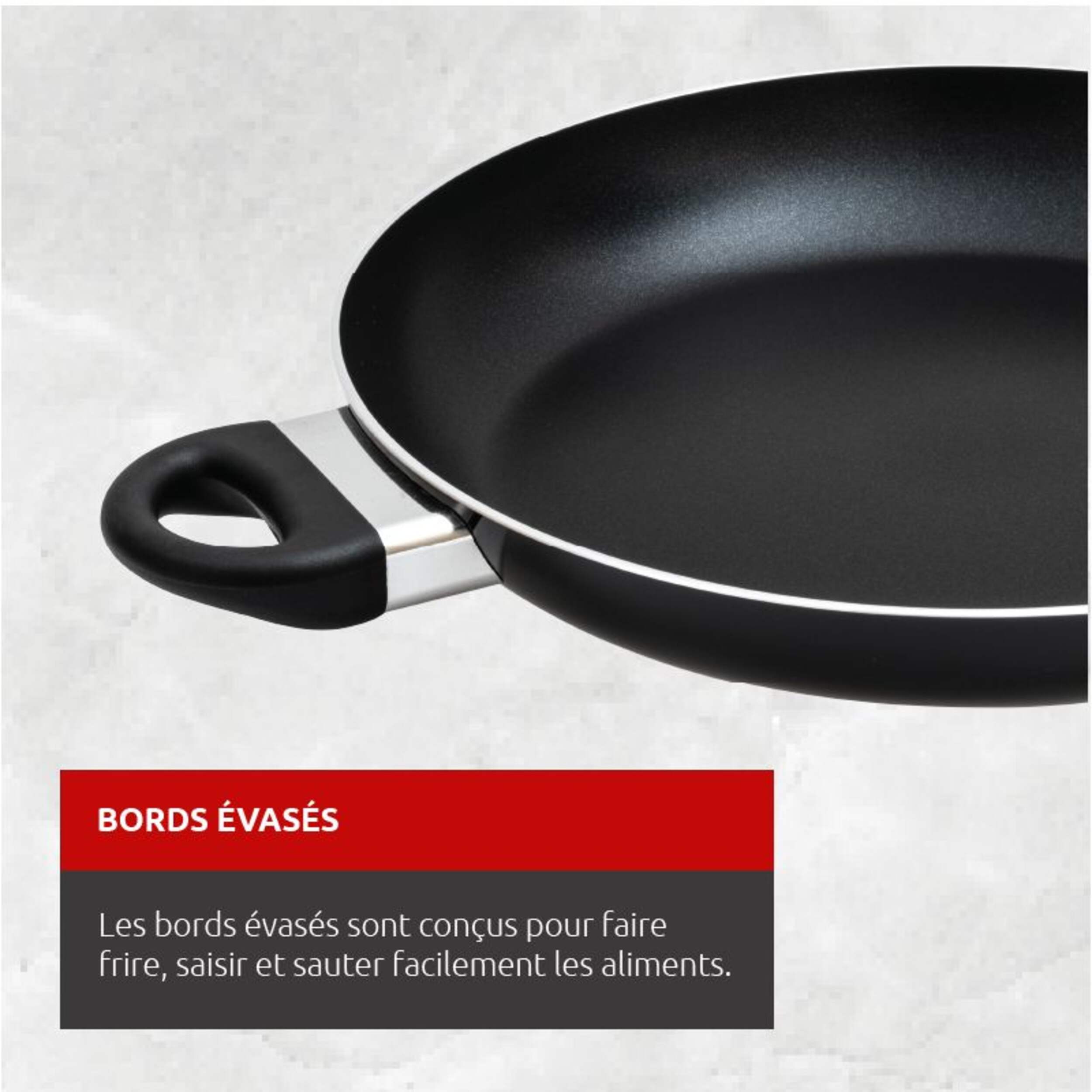 BORDS INCLINÉS : bords inclinés conçus pour faire frire, saisir et sauter facilement les aliments