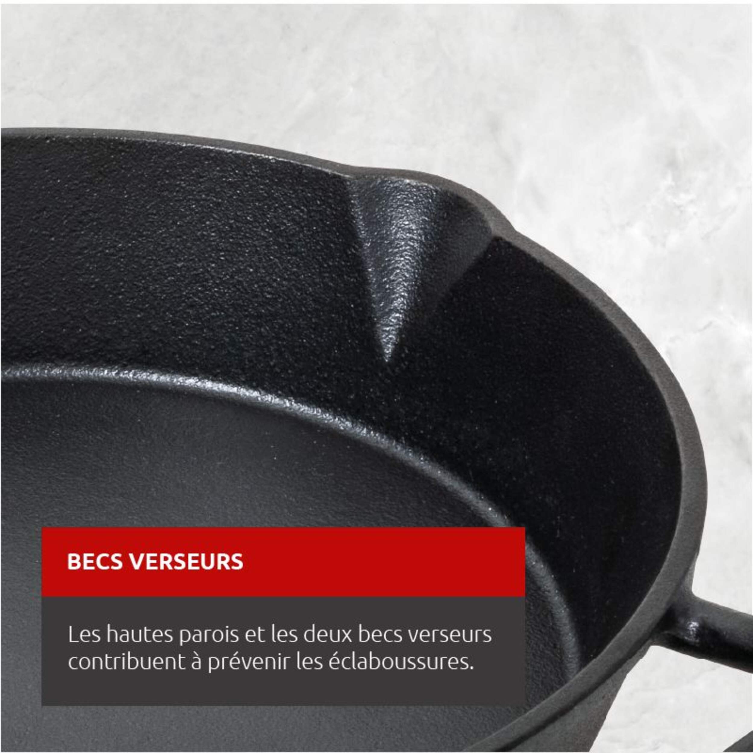 Poêle à frire en fonte prétraitée Lagostina qui est prête à l'emploi dès que vous la déballez et qui n'a pas besoin d'être assaisonnée. Conçue pour être écoénergétique, cette poêle en fonte est idéale pour la cuisson à haute température. Forme pratique et rebords très hauts qui aident à arrêter les éclaboussures. Poêle en fonte dotée d'un corps résistant au gauchissement qui conserve sa forme, même après des années de cuisson.
