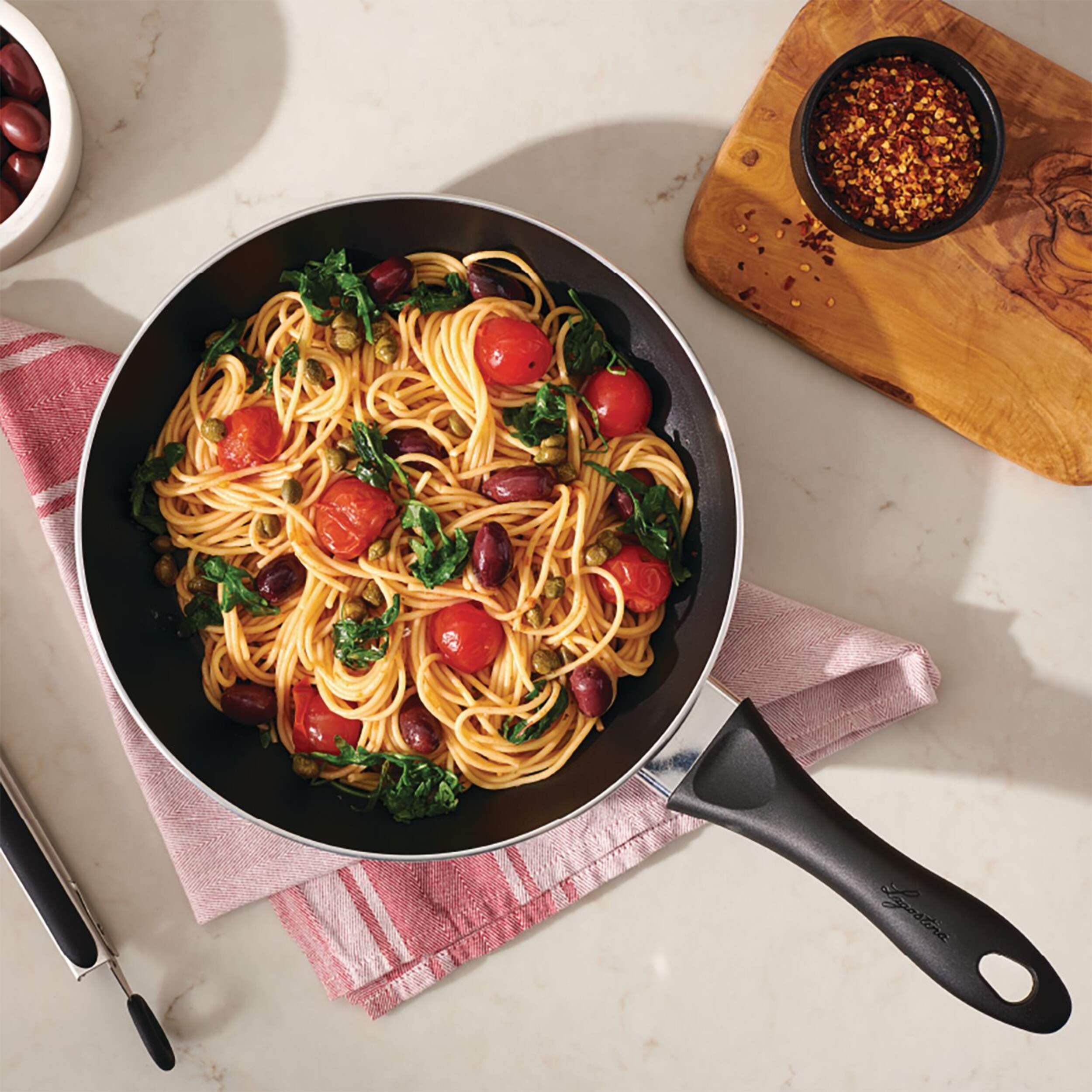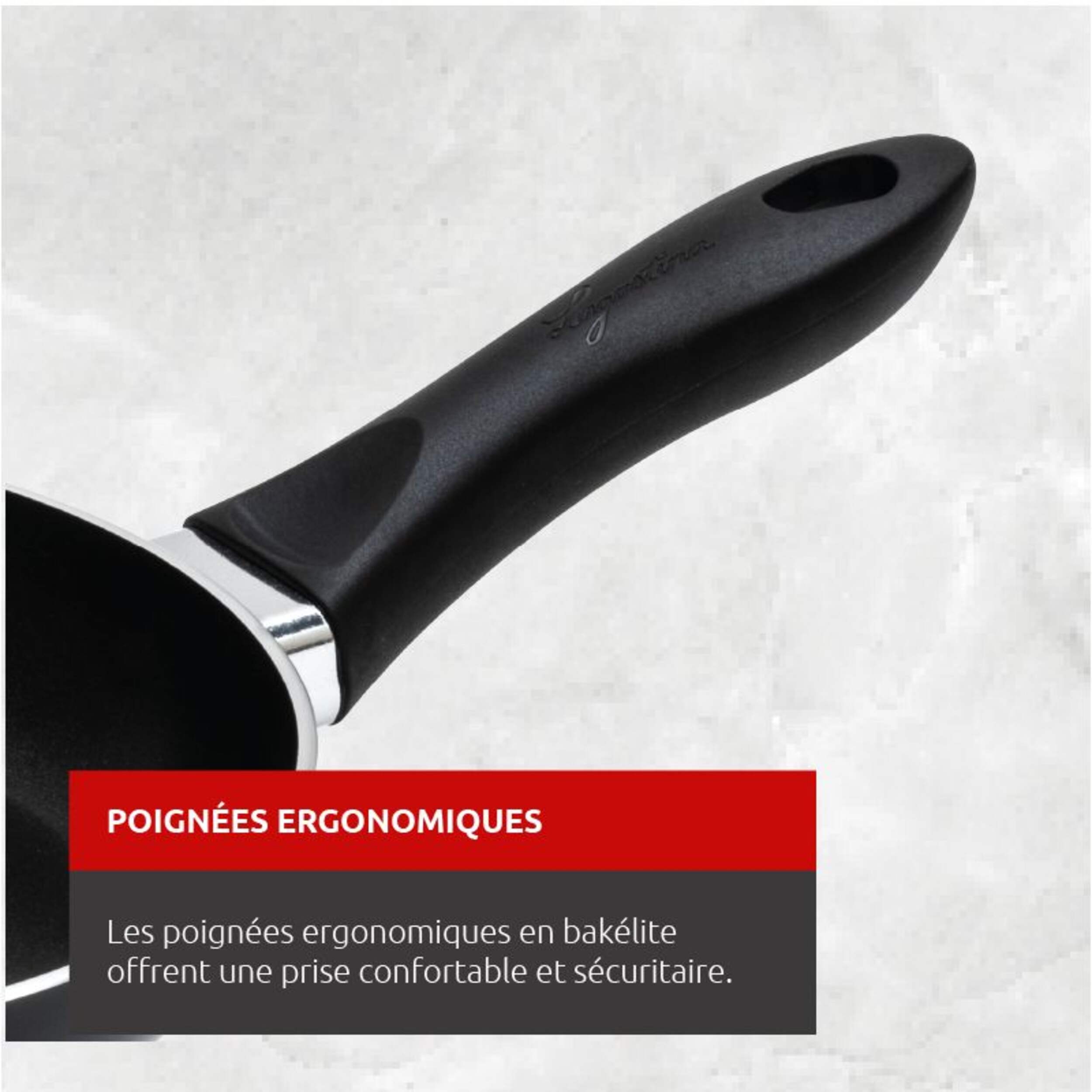 Cuisinez comme un pro avec la poêle à frire Lagostina Ticino, idéale pour nombre de vos créations culinaires. Son revêtement antiadhésif durable permet de dégager rapidement les aliments et facilite le nettoyage pour que vous passiez plus de temps à savourer vos repas. Les bords inclinés sont parfaits pour frire, saisir et faire sauter, ce qui vous donne un contrôle précis sur chaque plat. De plus, grâce aux poignées ergonomiques en bakélite, vous profiterez d'une prise sûre et confortable qui reste froide pendant la cuisson. Que ce soit pour préparer un déjeuner, un dîner ou un souper, cette poêle Lagostina est conçue pour la commodité et la performance.