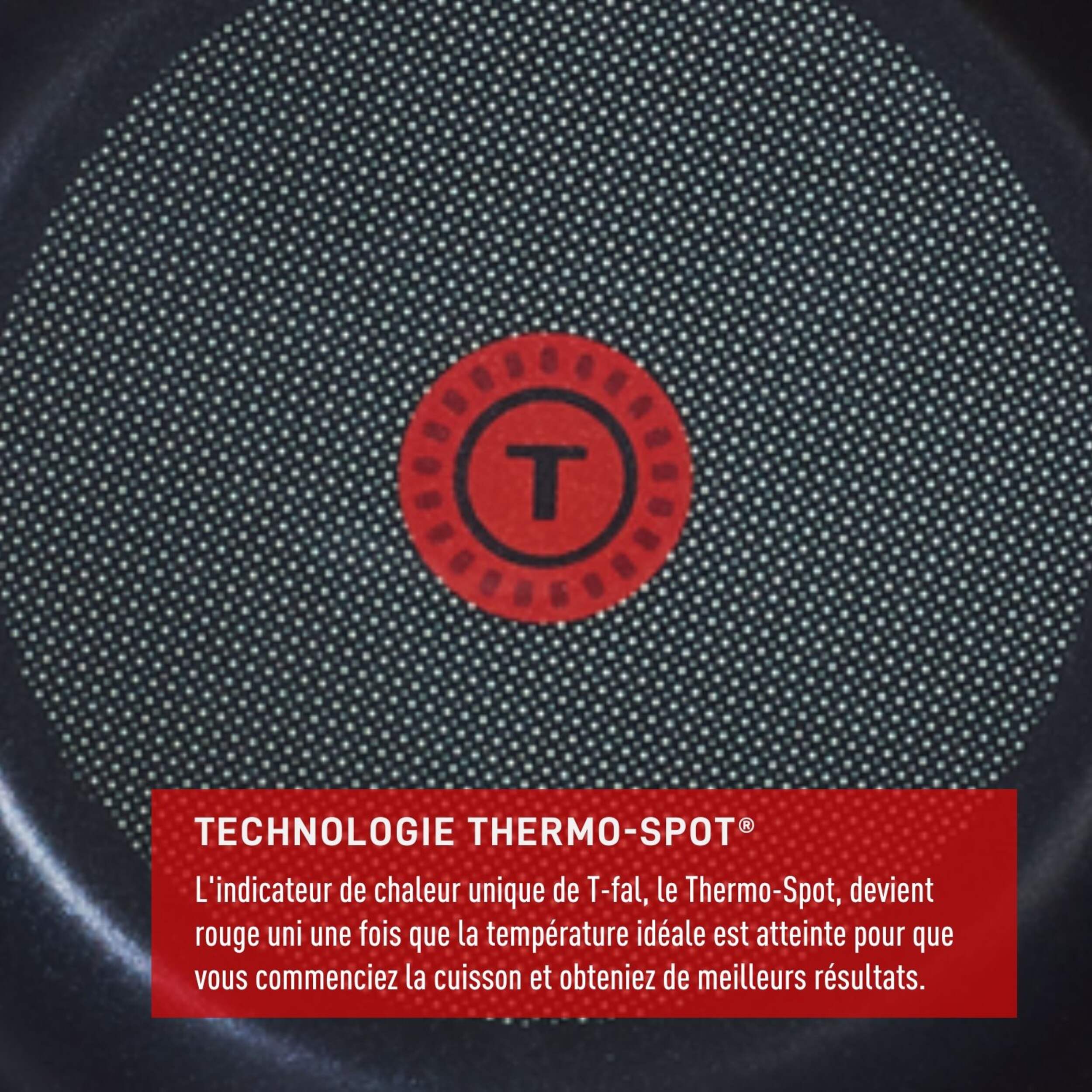 Indicateur de chaleur Thermo-Spot breveté qui devient rouge lorsque la température idéale de cuisson est atteinte