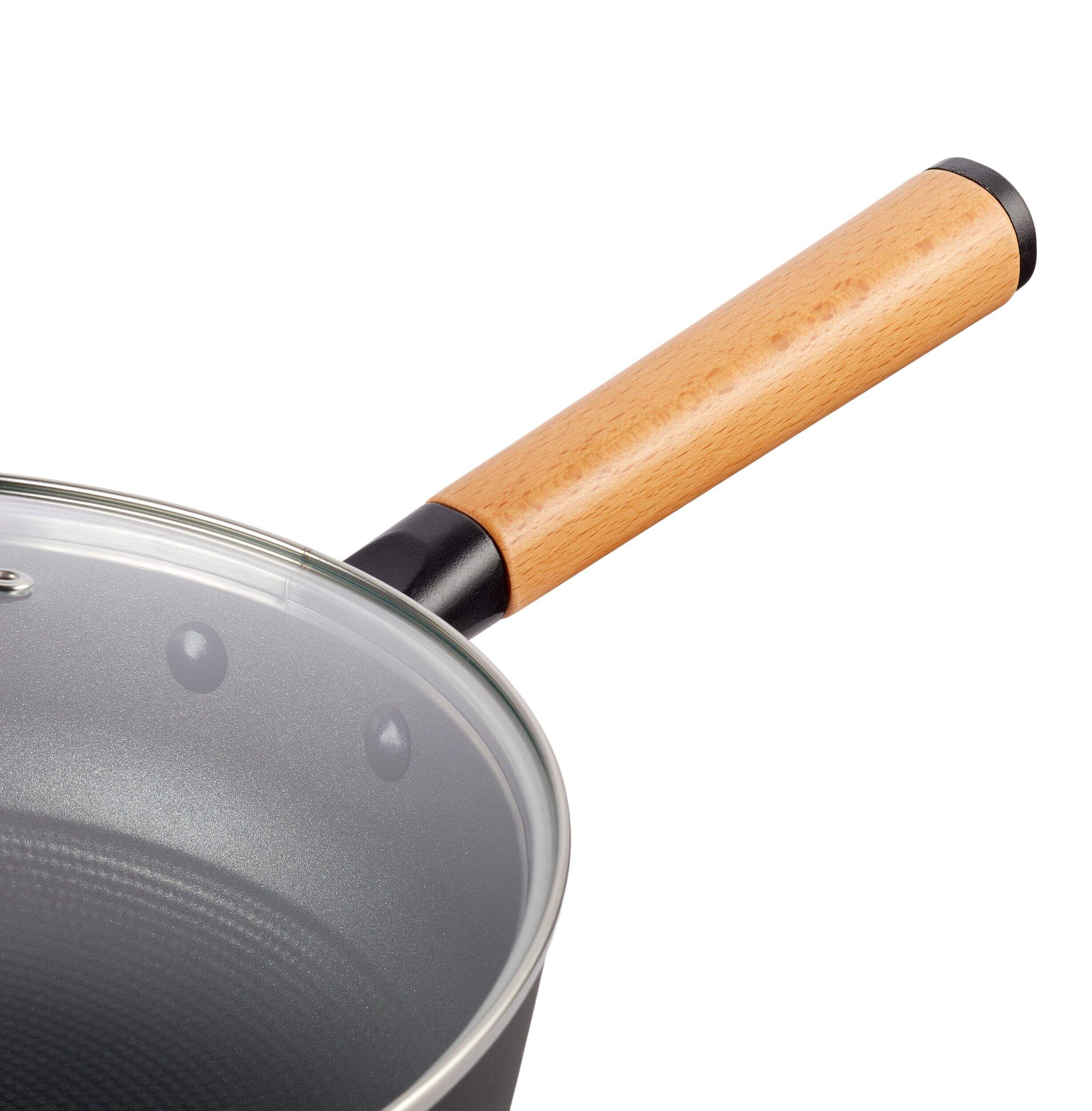 La poêle géante en fonte antiadhésive PADERNO est idéale pour saisir, brunir, faire sauter, frire ou étuver les aliments sur la cuisinière. Cette poêle de type wok dotée de nombreuses caractéristiques rendra vos moments dans la cuisine plus faciles et agréables. La surface de nid d'abeille retient l'huile, empêchant les aliments de toucher et de coller au fond de la poêle à frire, ce qui améliore la performance de cuisson. Avec sa construction en fonte sans soudure ultra-durable et son revêtement de quantanium, ce wok PADERNO est conçu pour durer des années.