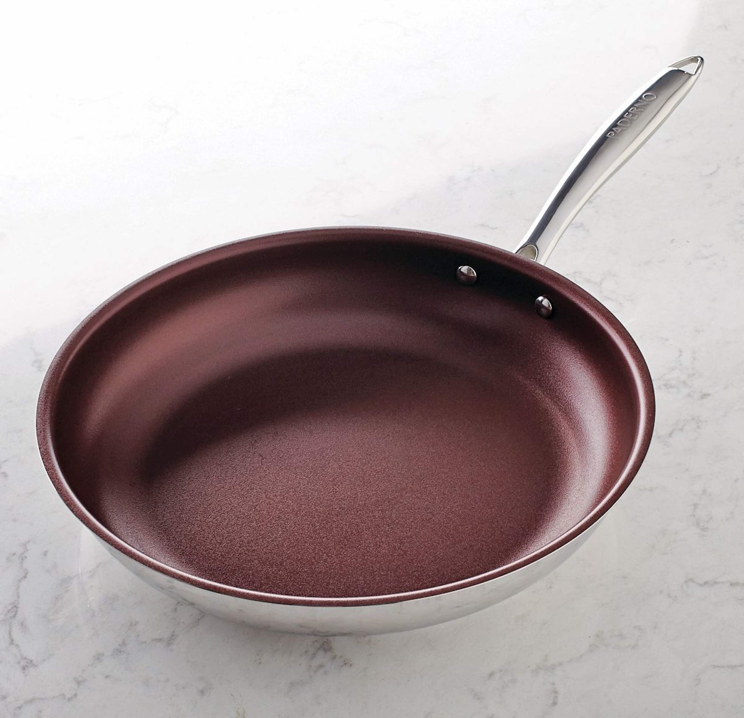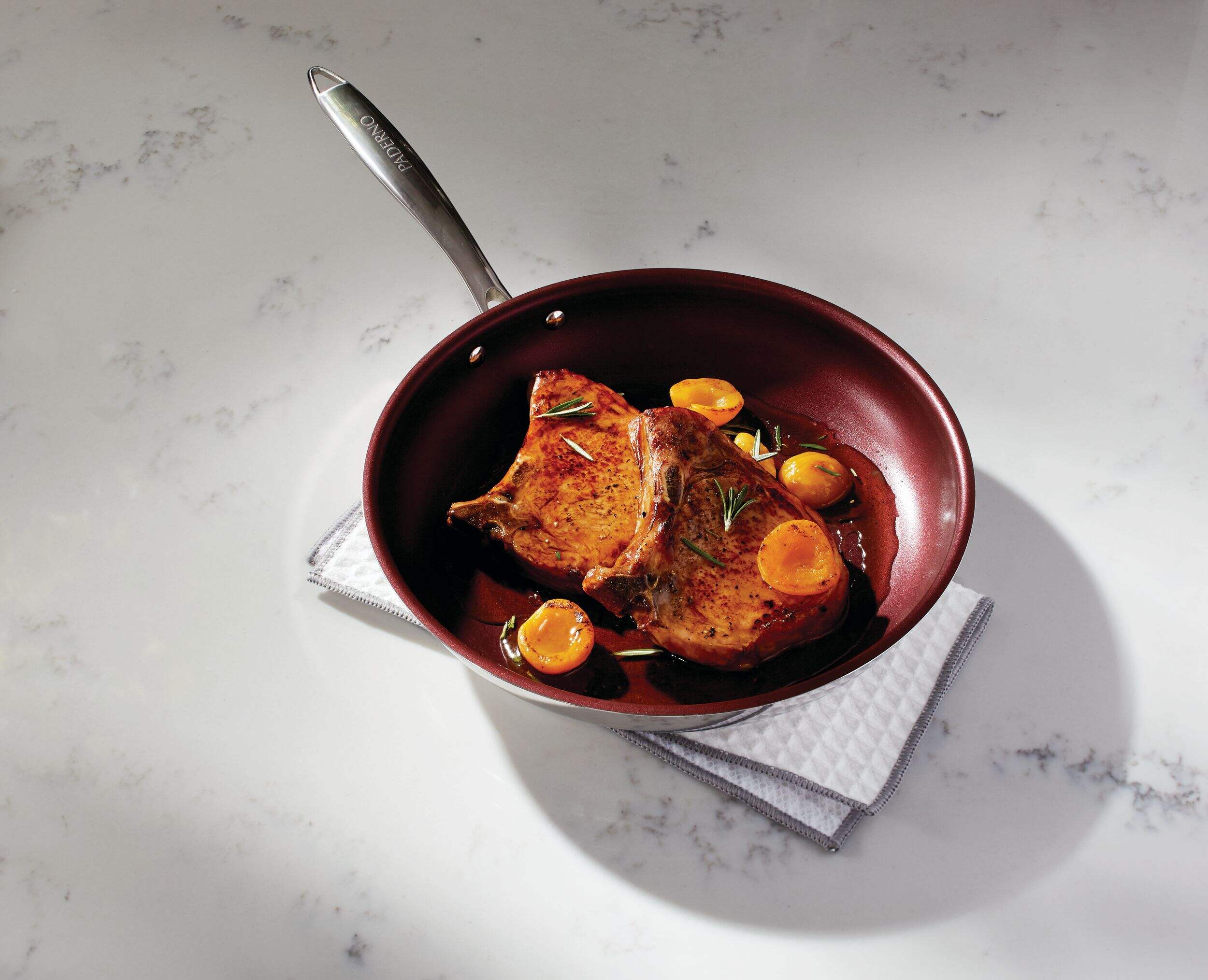 Faites glisser les aliments de votre poêle sans effort avec la poêle à frire antiadhésive en acier inoxydable PADERNO Signature canadienne. Aliments qui ont beaucoup de difficulté à adhérer à l'intérieur antiadhésif sans APFO, ce qui permet de réduire le gaspillage de nourriture et de nettoyer plus facilement cette poêle en acier inoxydable. Revêtement antiadhésif qui résiste aussi aux rayures, offrant une durabilité impressionnante pour les années à venir.