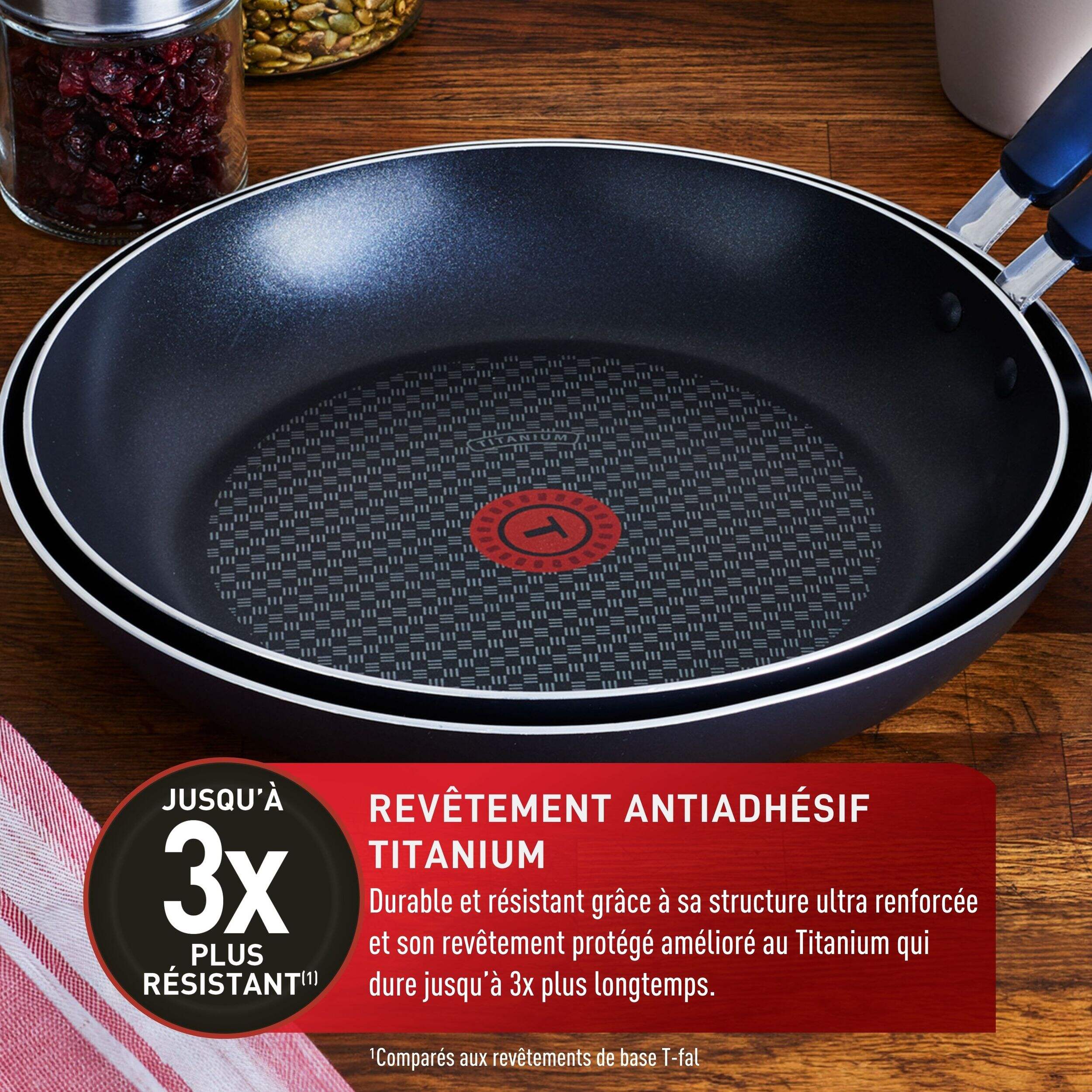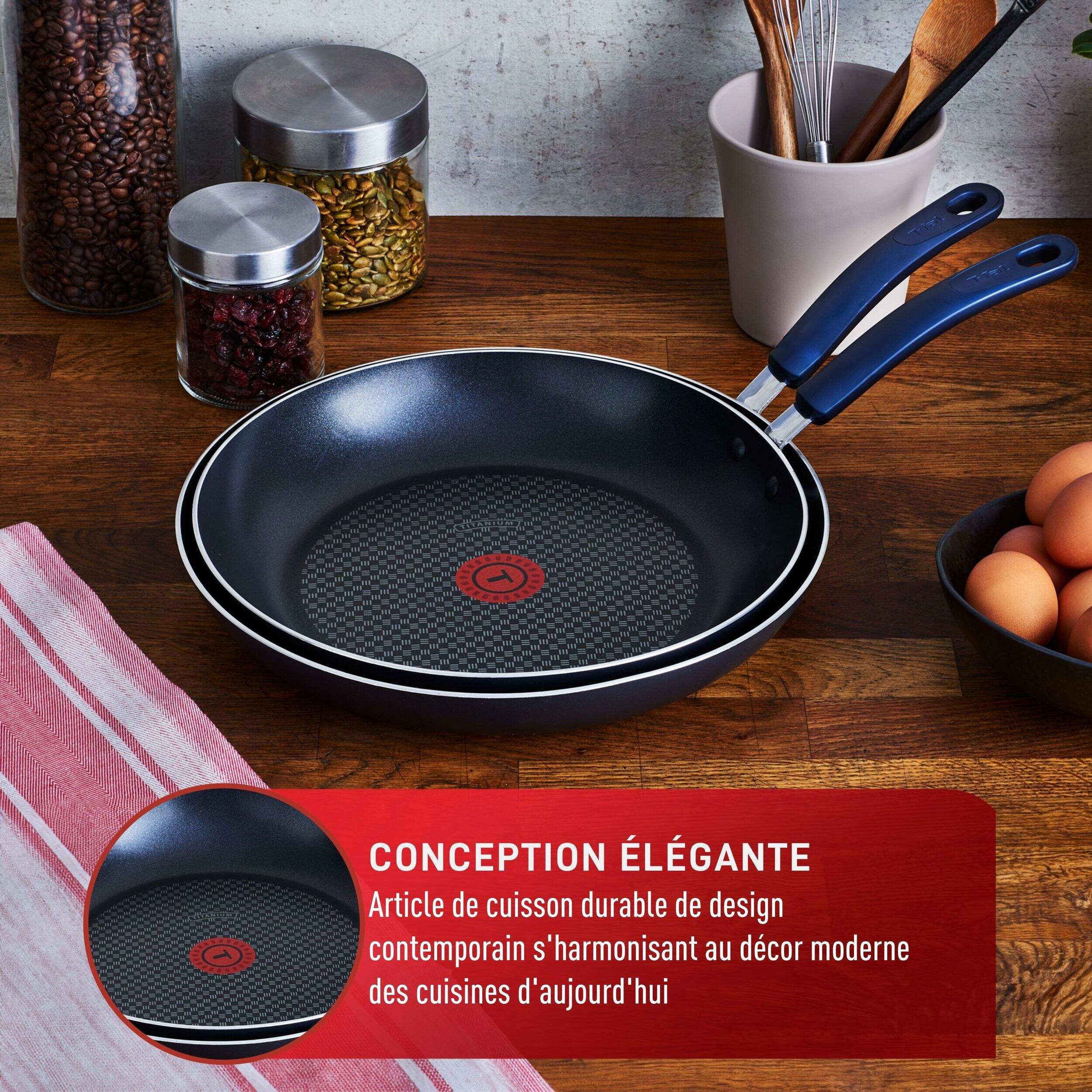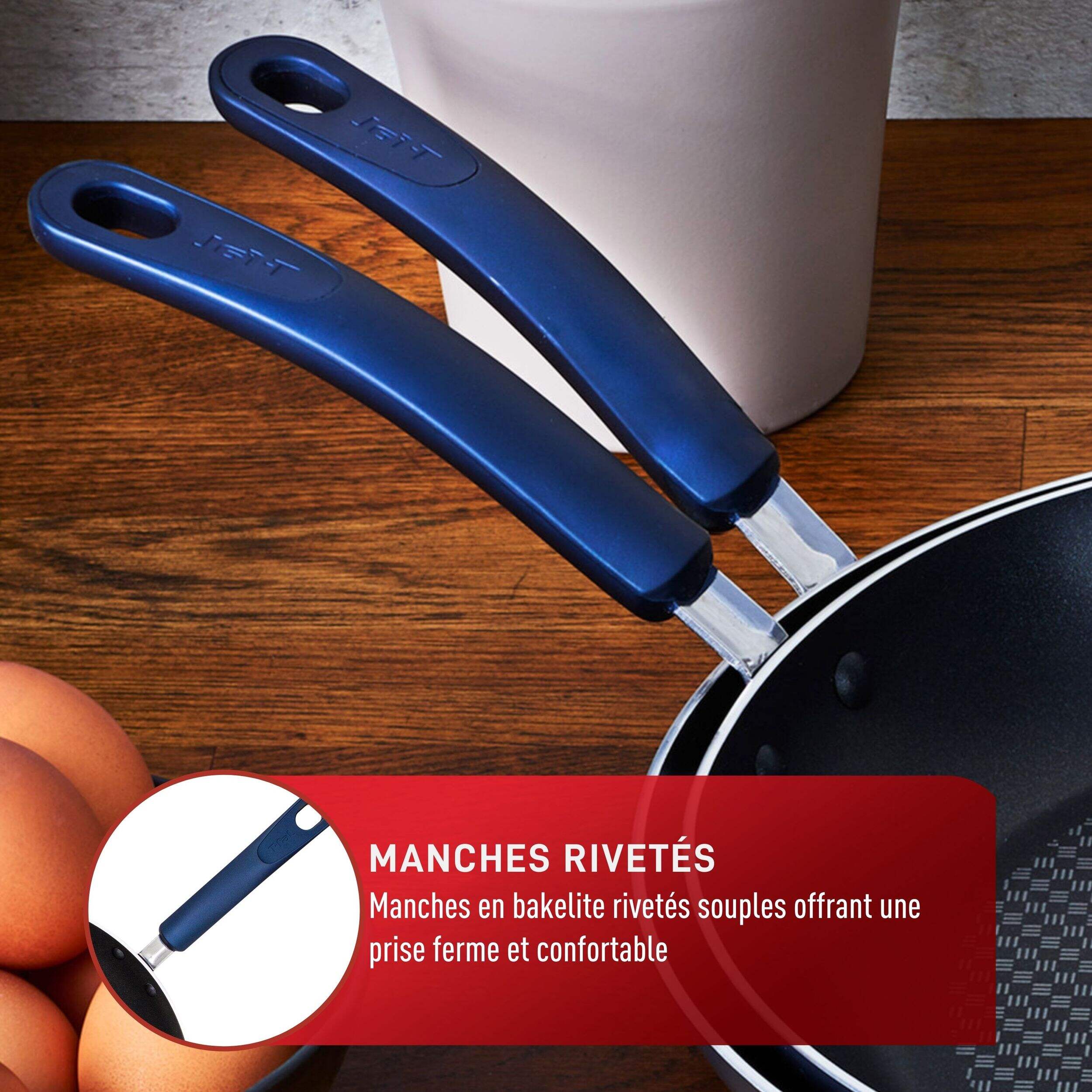 Comprend : 1 poêle antiadhésive T-fal AirGrip de 30 cm et 1 poêle antiadhésive T-fal AirGrip de 32 cm
