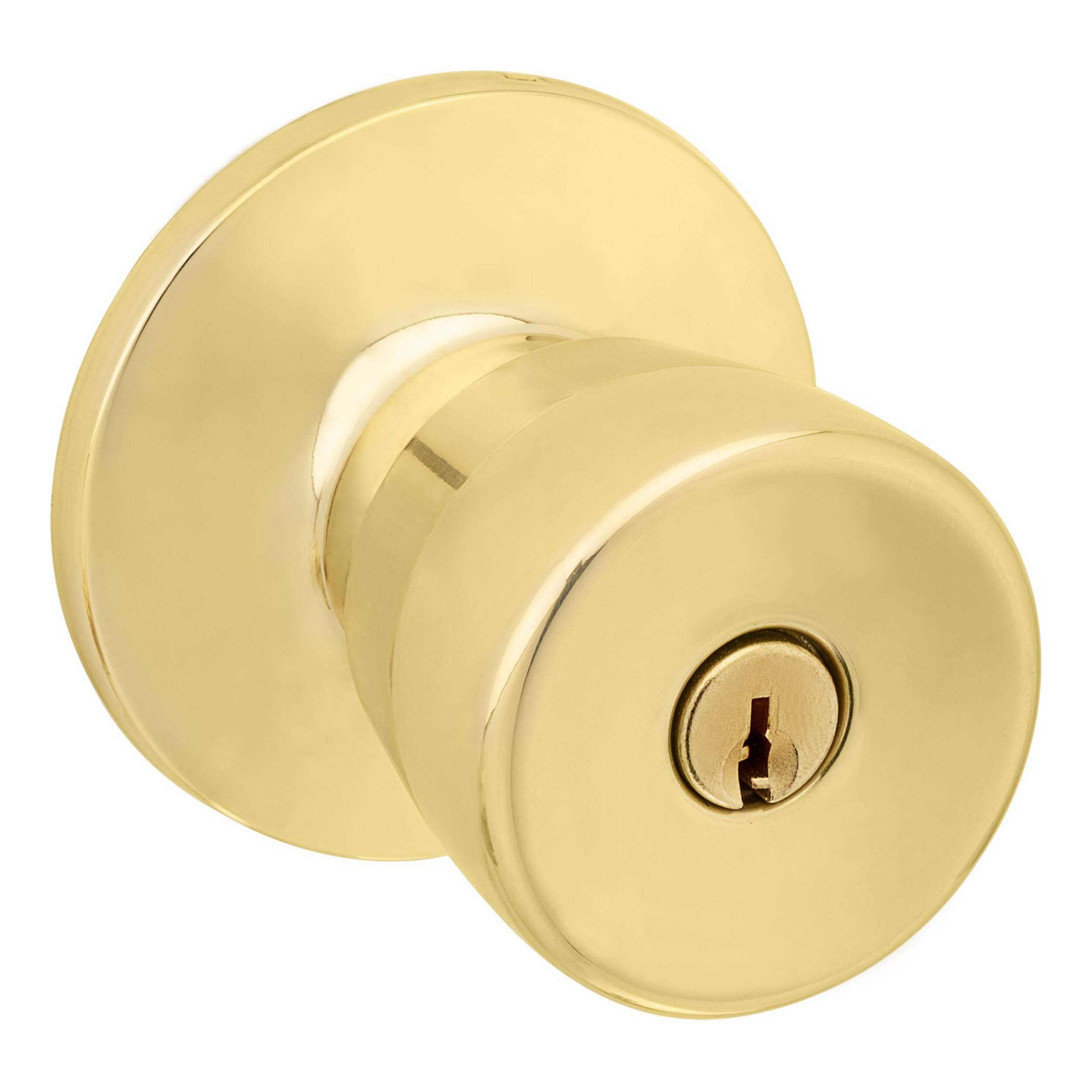 Poignée de porte d'entrée tulipe avec serrure à clé Garrison dotée d'un fini en laiton poli simple et certifiée pour la sécurité de niveau 3 ANSI/BHMA pour vous offrir la tranquillité d'esprit. Poignée de porte conçue pour convenir à la plupart des portes standard et facile à installer. Serrure de porte incluse dans cet ensemble dotée de propriétés résistantes aux coups et aux épingles de déverrouillage pour une sécurité accrue.