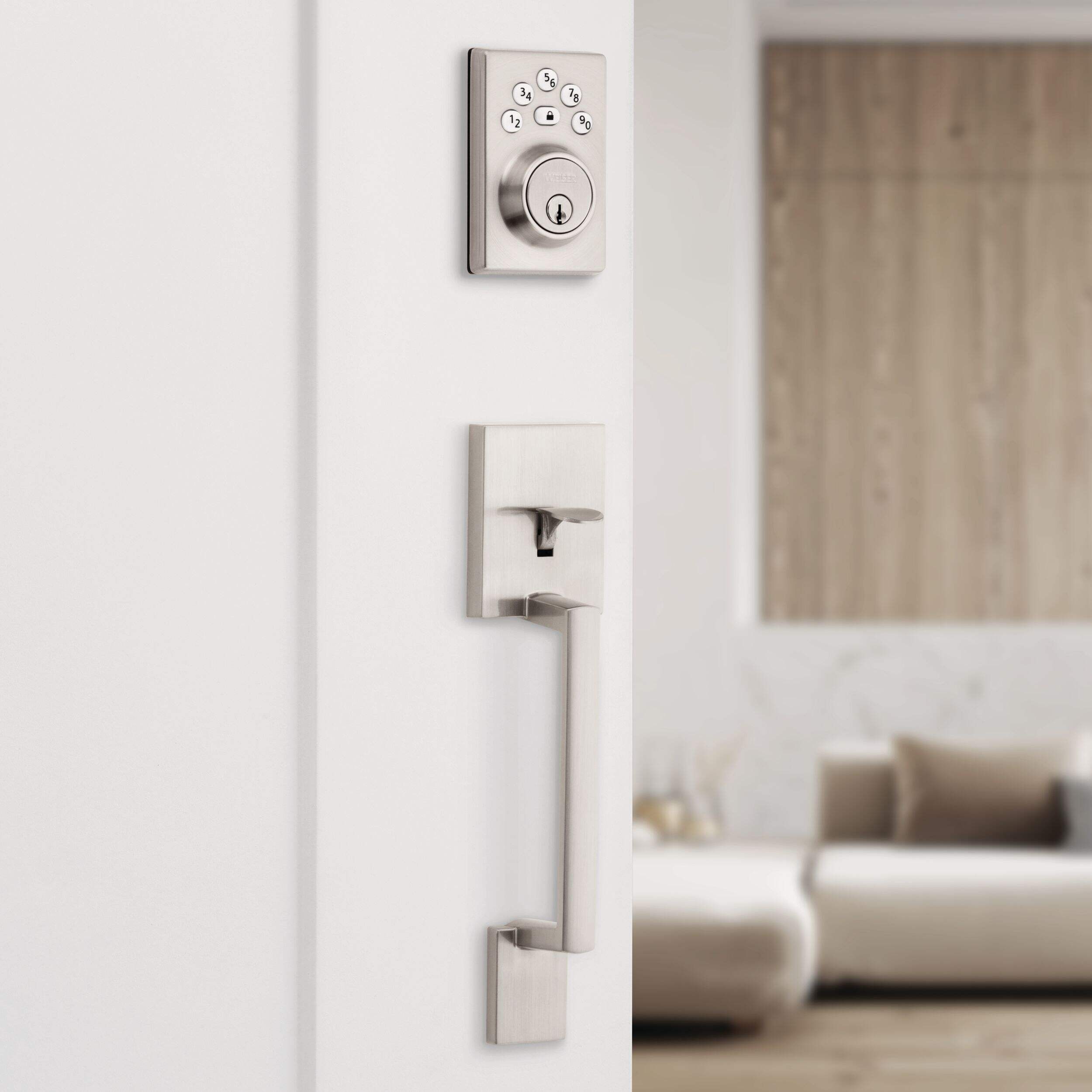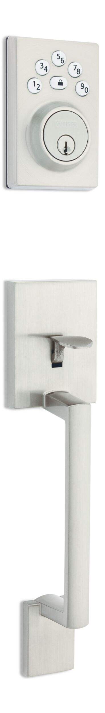 Ensemble de départ idéal pour la maison conçu pour laisser une impression durable. Poignée dotée de la serrure de porte électronique à clavier Elements de Weiser