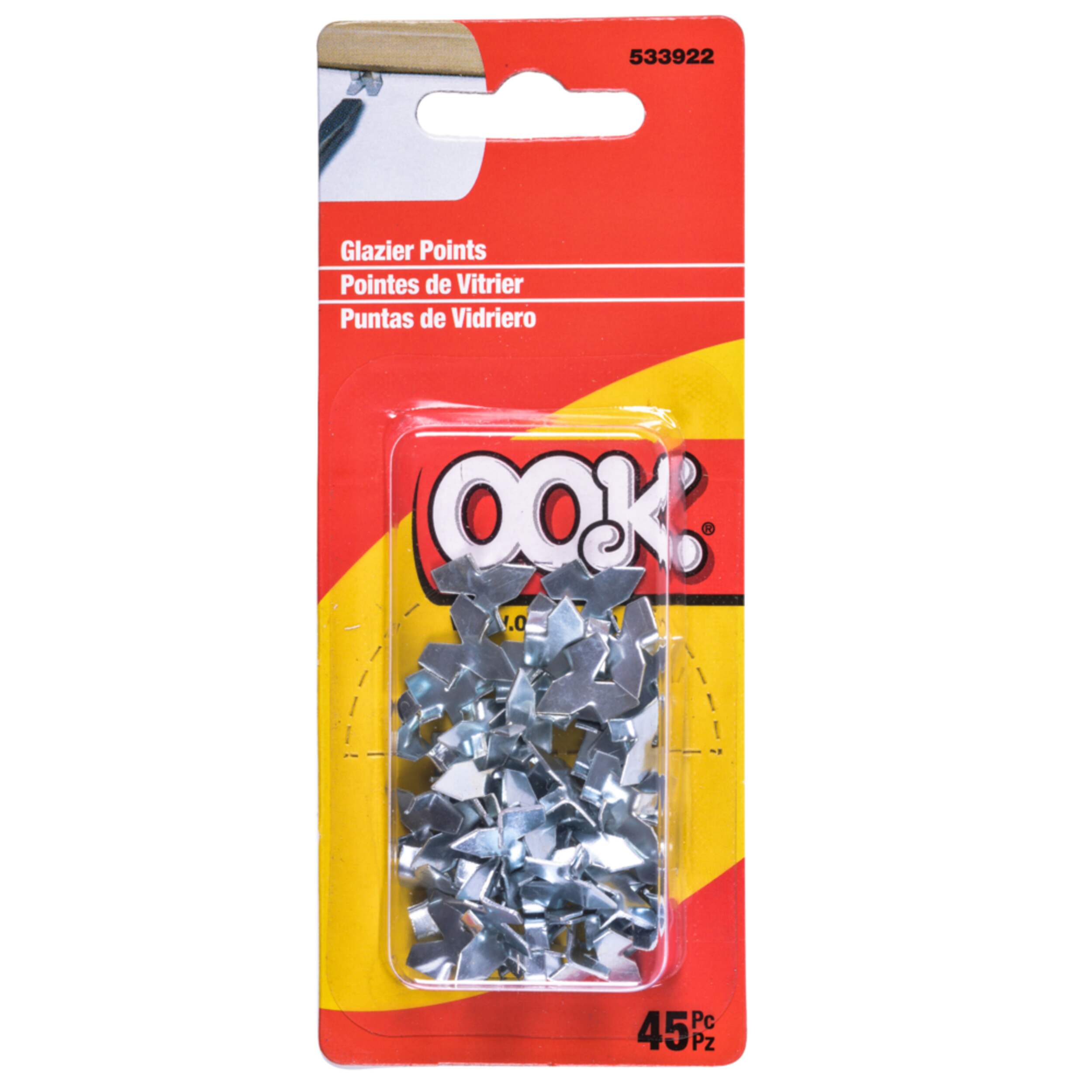 Les OOK Glazier Points maintiennent le verre en place sur les châssis ou les cadres en bois et peuvent être insérés à l'aide d'un couteau à mastic. Le processus de collage unique élimine les blocages des pointeurs dus à l'accumulation de cire. Les pointes sans cire offrent une meilleure tenue pour l'encadrement et le vitrage.