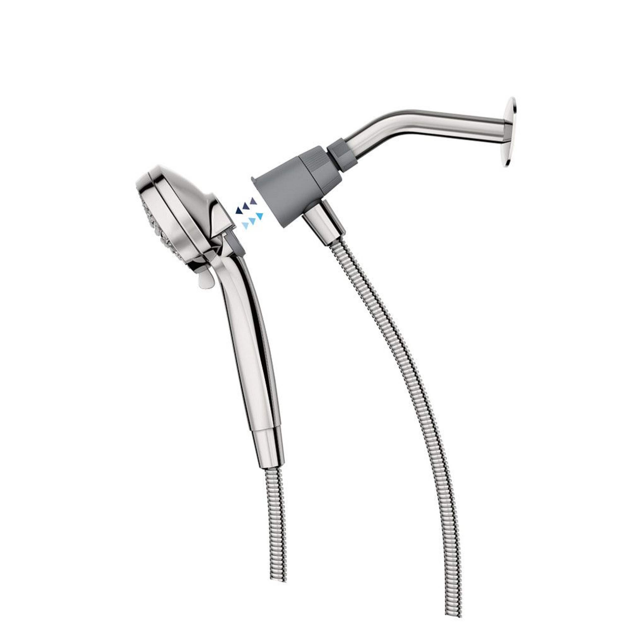 Transformez votre salle de bain avec la pomme de douche à main Moen EngageMC Magnetix 6 réglages de 3,5 po. Le système de socle MagnetixMC assure une libération et un retour faciles mains libres, ce qui le rend simple à utiliser même les yeux fermés. Avec 6 réglages de jet personnalisables, dont un rinçage intégral et un massage, cette pomme de douche à main garantit une expérience personnalisée et rafraîchissante. Son tuyau en métal, qui ne s'entortille pas, offre une portée et une flexibilité accrues, ce qui en fait un outil idéal pour une douche relaxante.