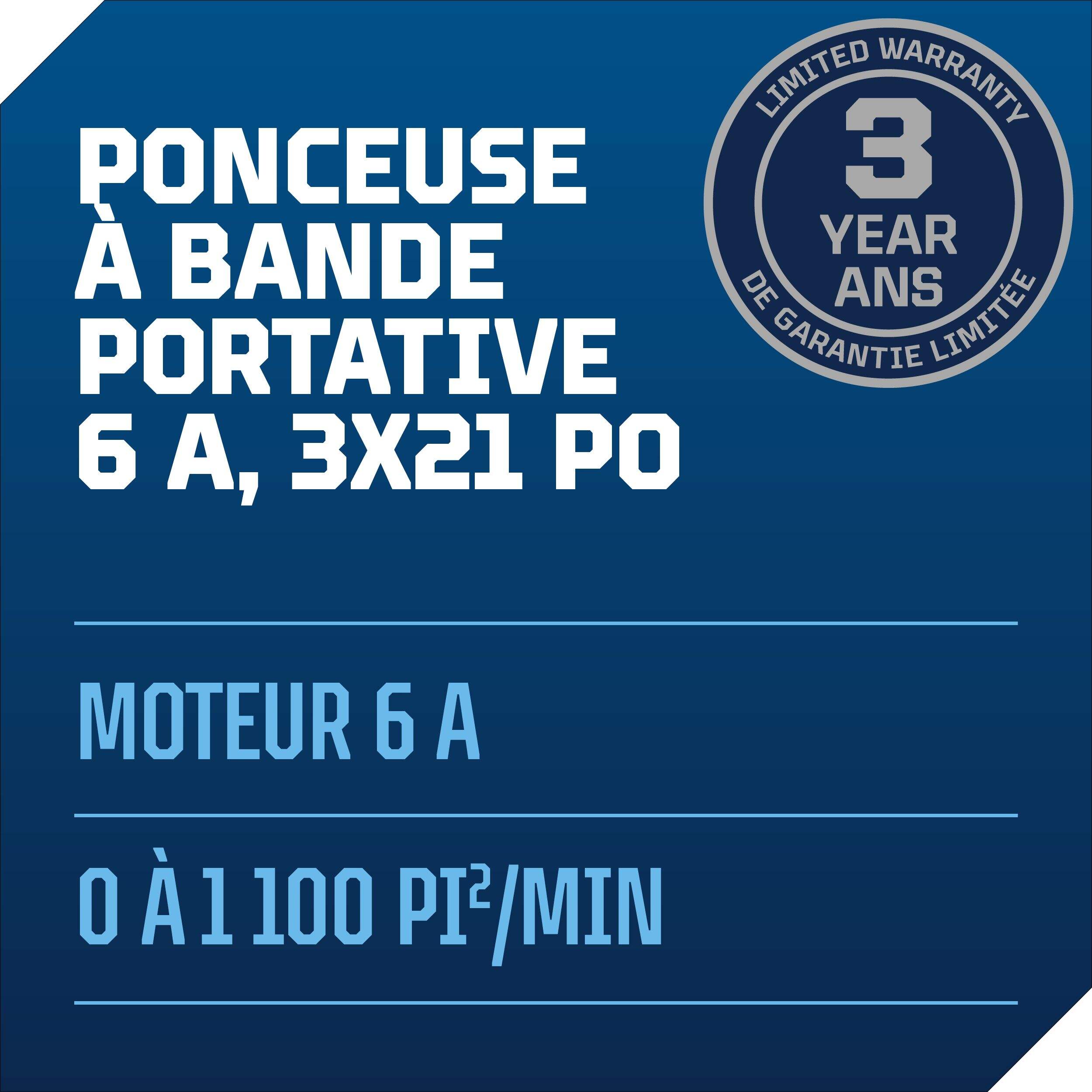 Surface de ponçage de 3 x 21 po idéale pour lisser de grandes surfaces ou travailler sur des projets plus petits et précis