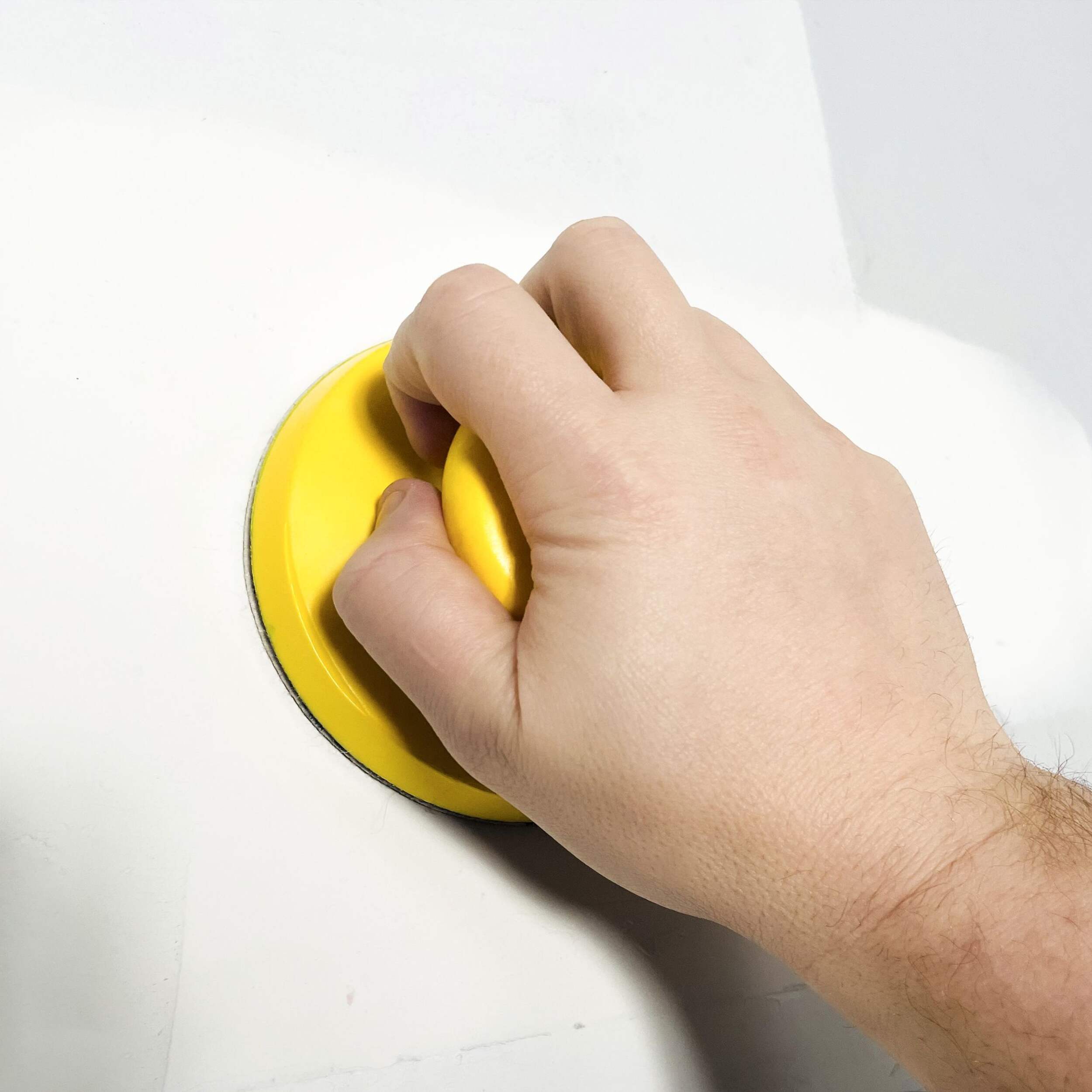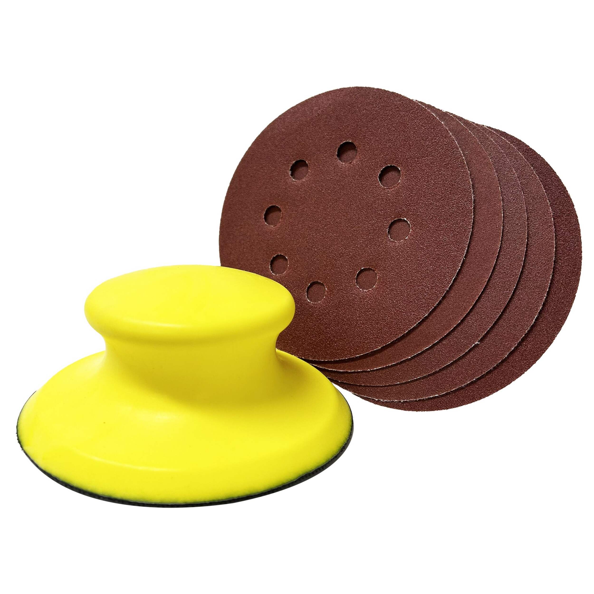 Ponceuse à main Richard avec feuilles de papier qui est idéale pour être utilisée avec tout papier abrasif de 5 po ou tampon abrasif sur le bois, le métal, la fibre de verre ou les surfaces peintes