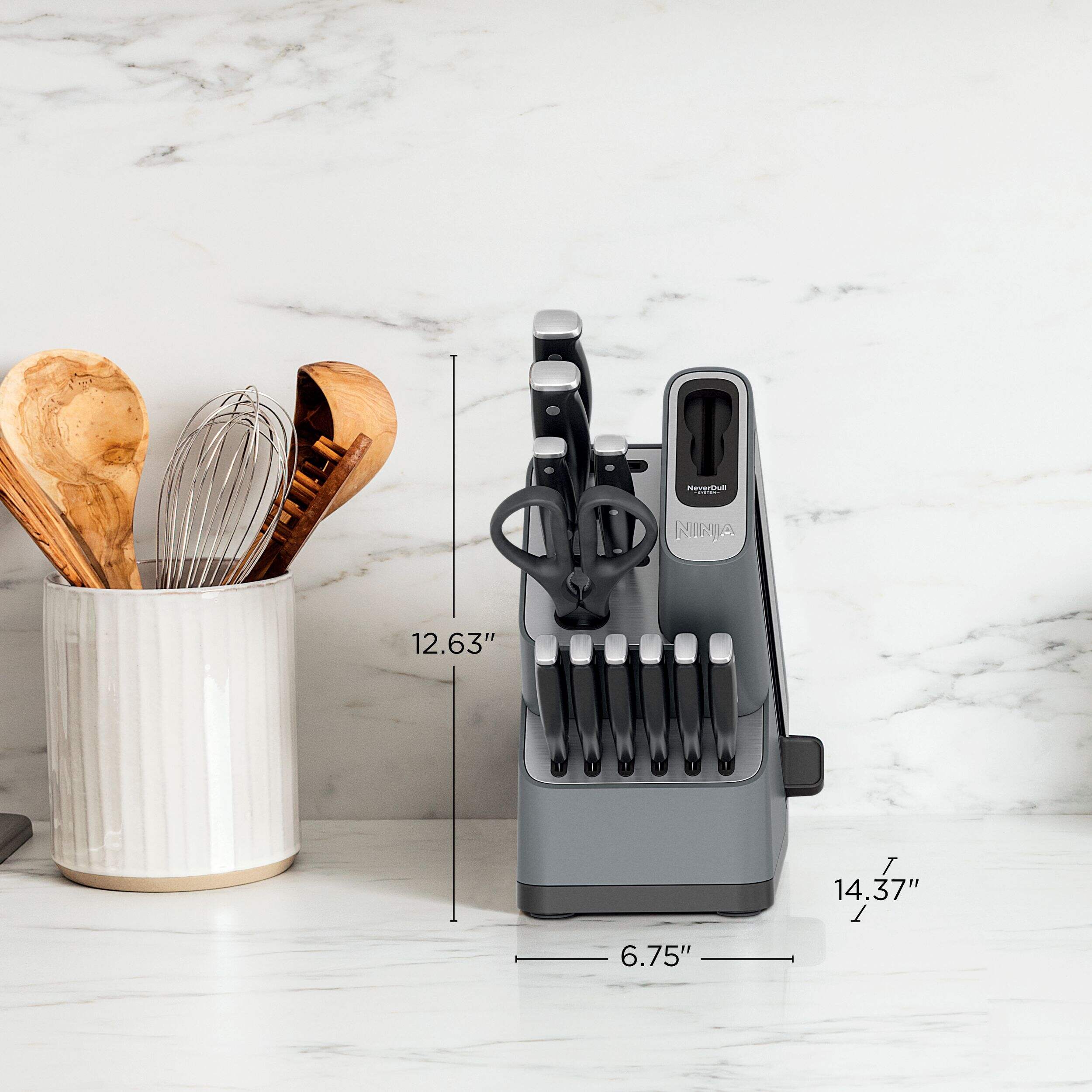 Porte-couteau Ninja Foodi NeverDull Essential avec lames en acier inoxydable à haute teneur en carbone qui sont durables et qui résistent à la rouille
