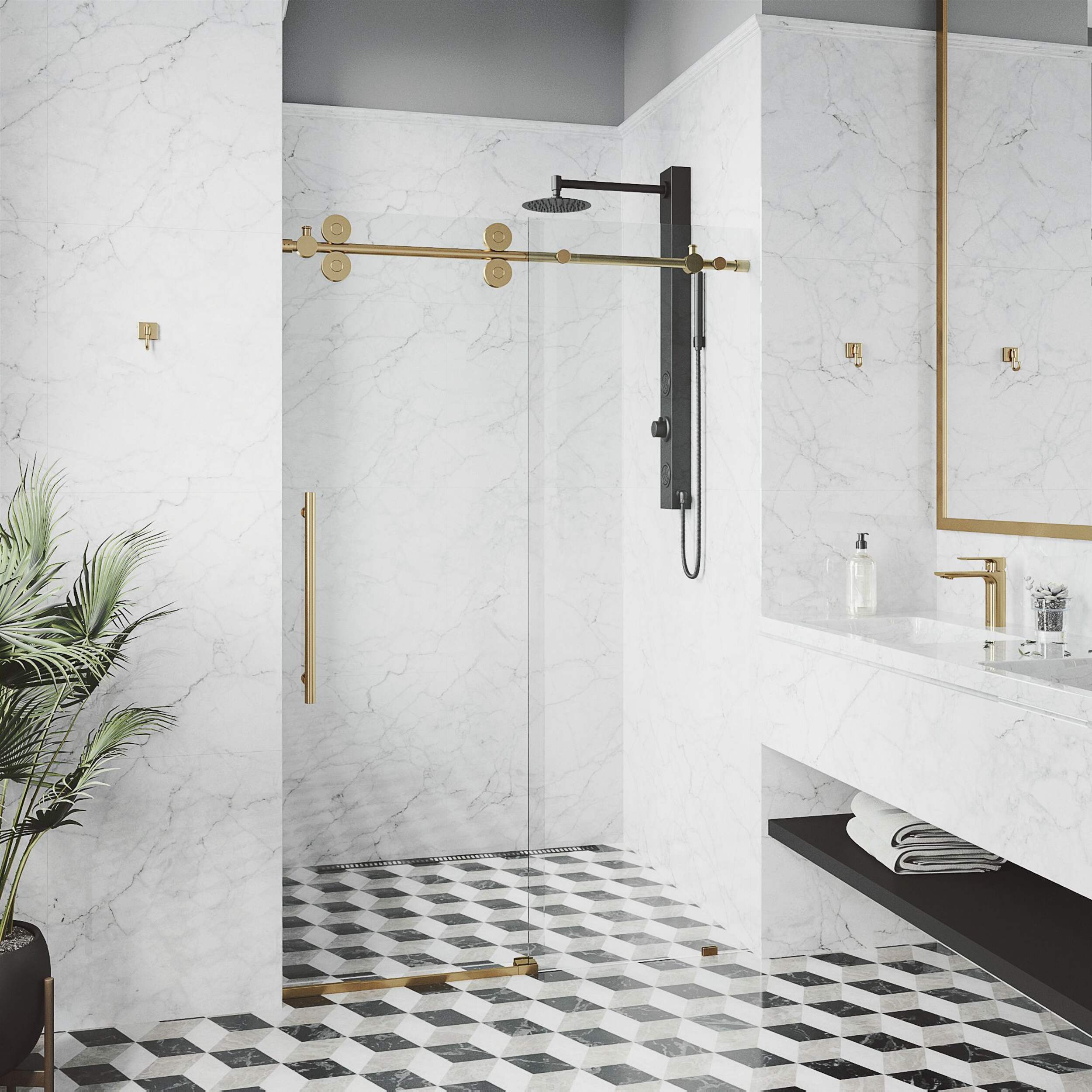 Cette porte de douche coulissante ajustable et sans cadre de Vigo vous aide à tirer le maximum de l'espace de votre salle de bain. La porte peut être ajustée horizontalement jusqu'à 4 pouces lors de l'installation pour s'adapter à votre espace, et la quincaillerie peut s'adapter aux murs qui peuvent se déplacer au fil du temps. Le seuil métallique empêche les fuites d'eau, ce qui permet de garder vos sols secs, tandis que le matériel en acier inoxydable de haute qualité se nettoie à l'eau pour une brillance durable. Toutes les pièces et le matériel de montage sont inclus, ainsi qu'un guide d'installation facile à suivre, afin que vous puissiez installer la porte en une seule journée et profiter enfin de votre douche rénovée.