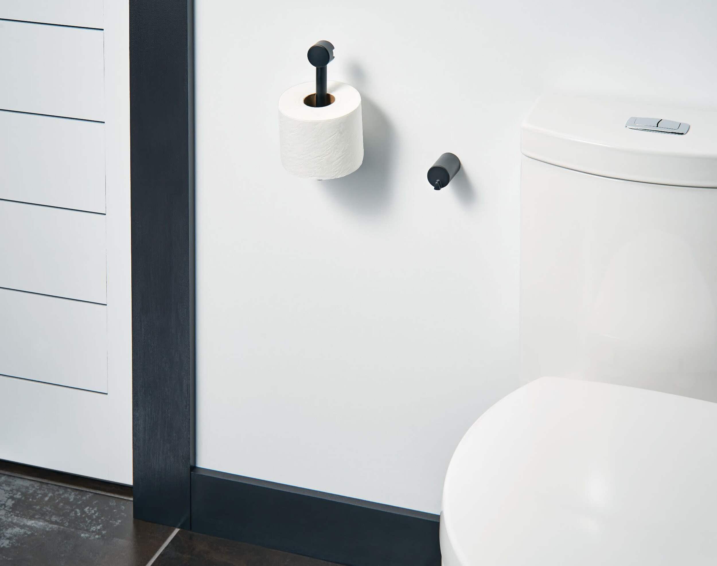Porte-papier hygiénique pivotant Moen Align au fini noir mat qui complète parfaitement les espaces modernes