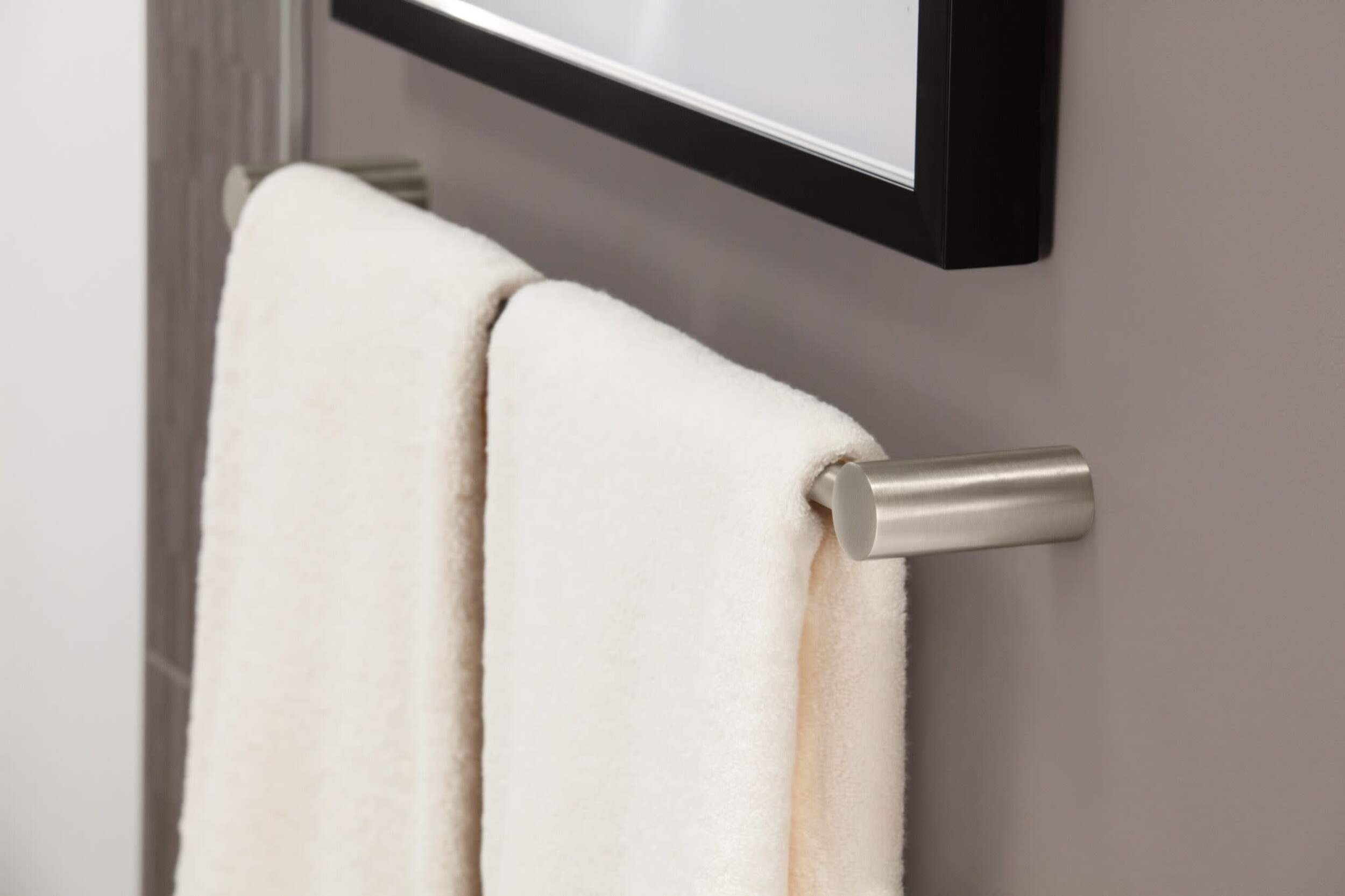 Porte-serviettes Moen Align au fini nickel brossé qui apporte à votre bain l'aspect chaleureux de l'acier inoxydable