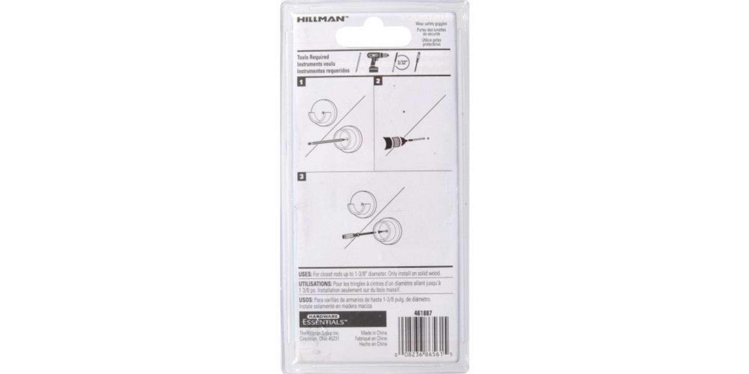 Support pour tringle de placard conçu pour tringles de 1 3/8 po de diamètre maximum