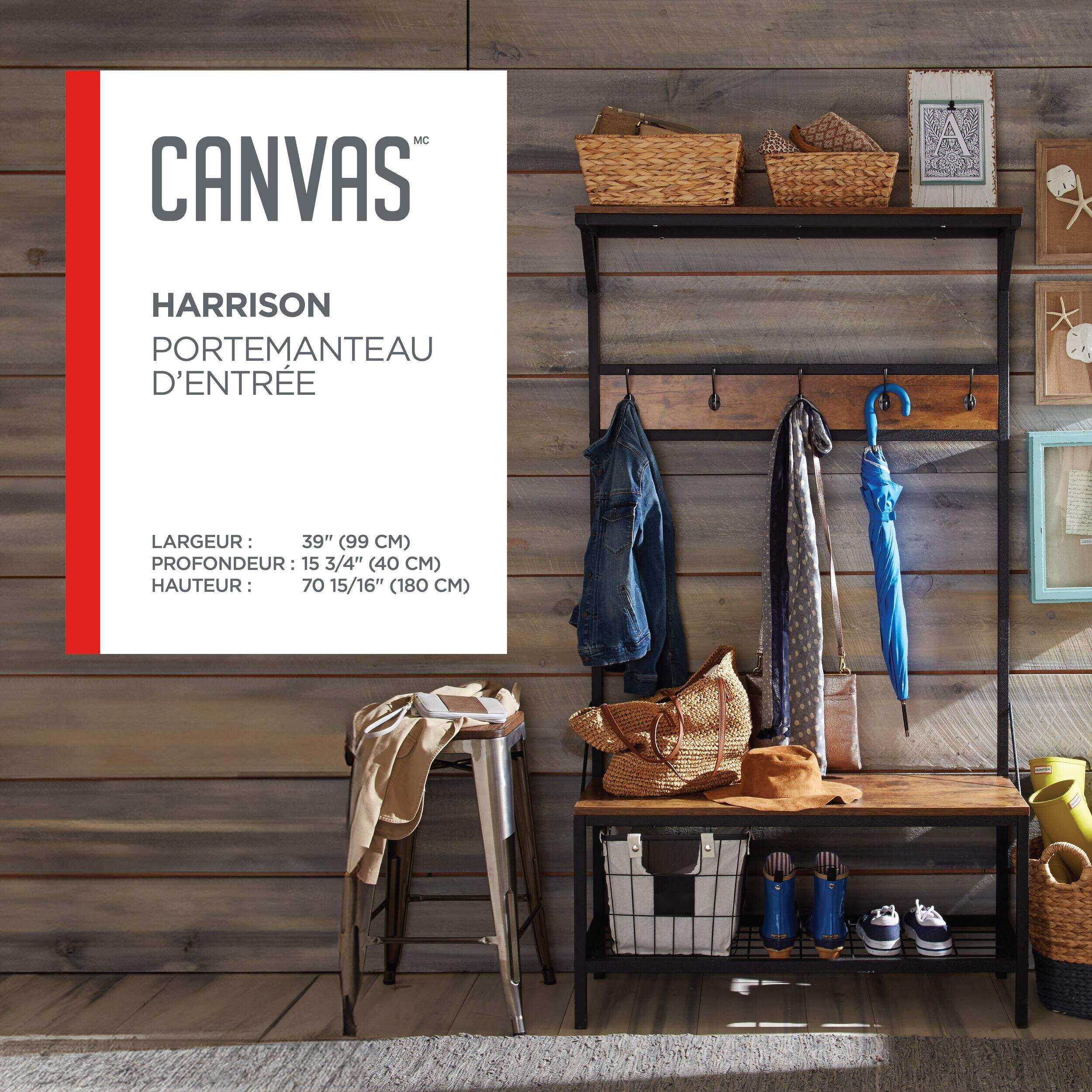 C'est un banc, un portemanteau et une tablette en un : le portemanteau CANVAS Harrison est doté de tout ce dont vous avez besoin pour garder votre entrée dégagée, organisée et élégante. Portemanteau offrant un espace de rangement peu encombrant et un modèle polyvalent qui s'harmonise à votre décor transitionnel. Avec des crochets à manteaux, un siège de banc et une tablette de rangement, il est aussi un excellent choix pour une chambre d'appoint ou un bureau à domicile.