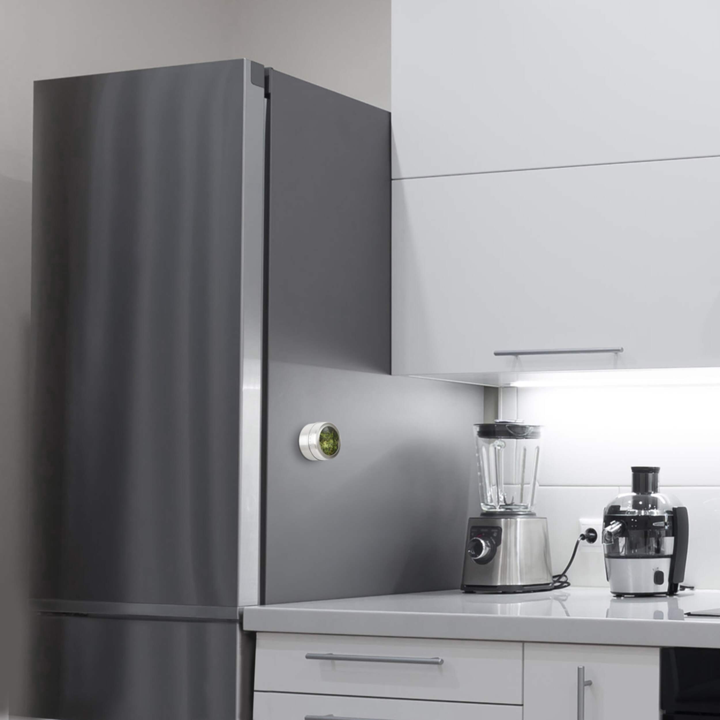 Pot à épices aimanté avec couvercle au fini acier inoxydable