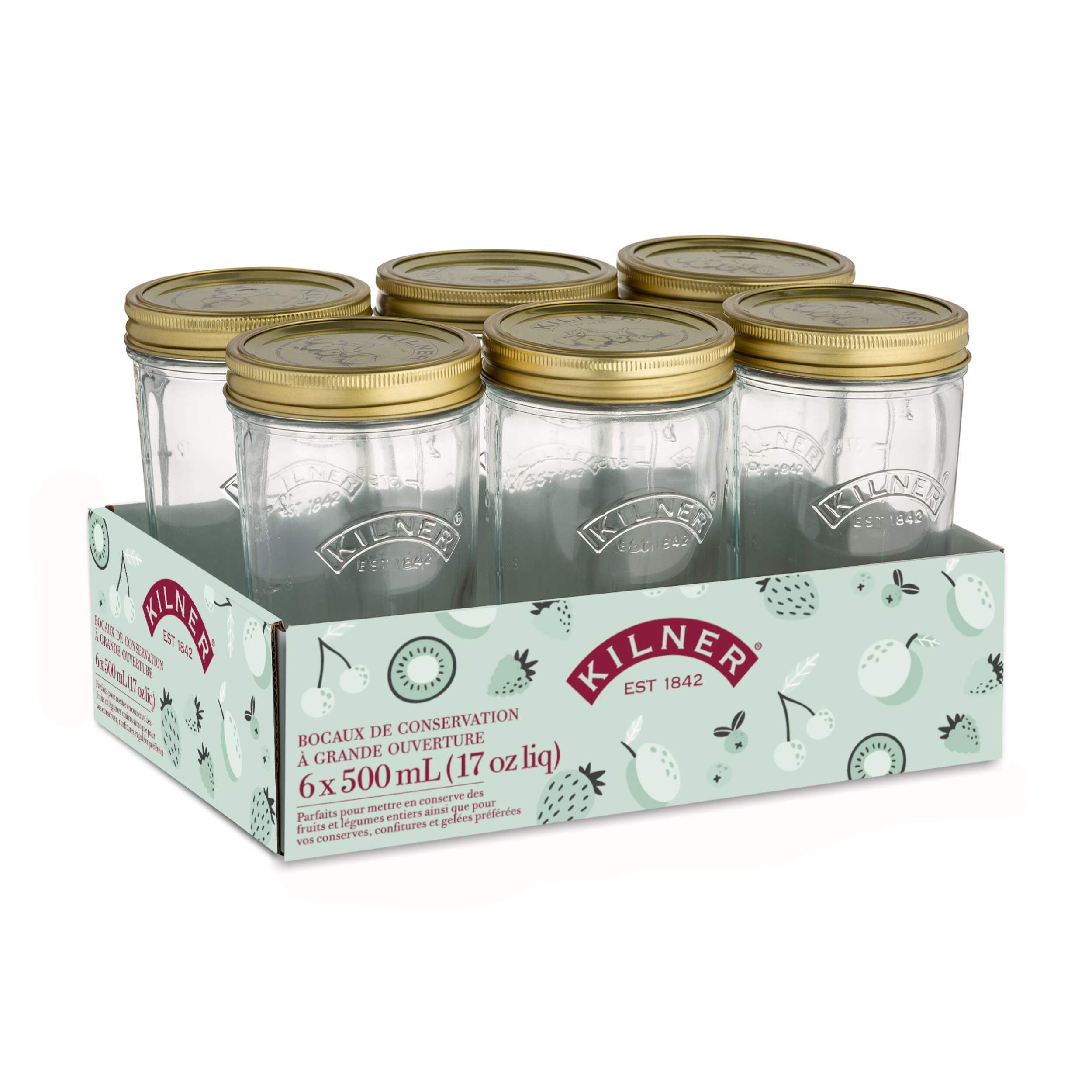 Bocaux en verre pour conserves à ouverture large Kilner conçus pour conserver des aliments sains cultivés à la maison