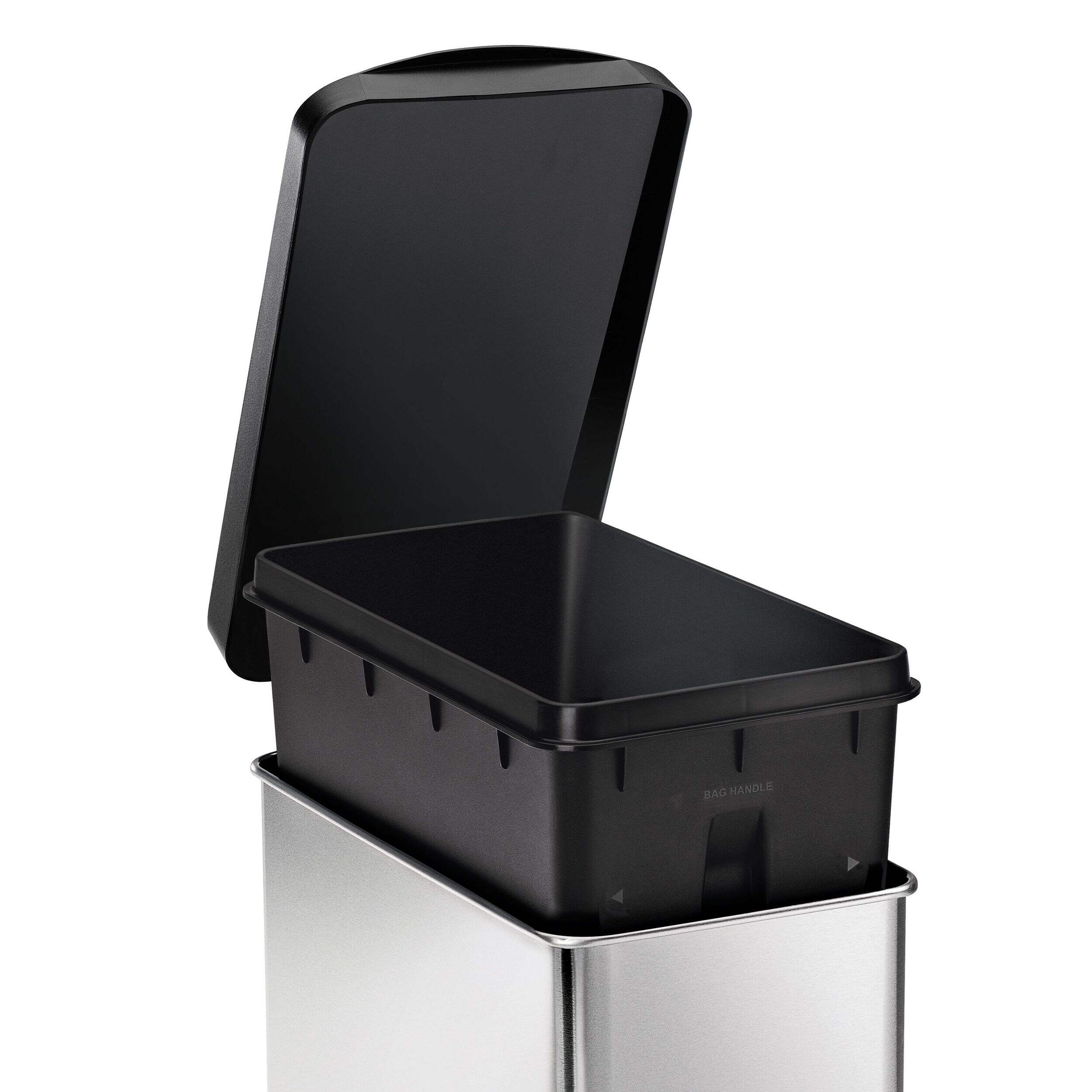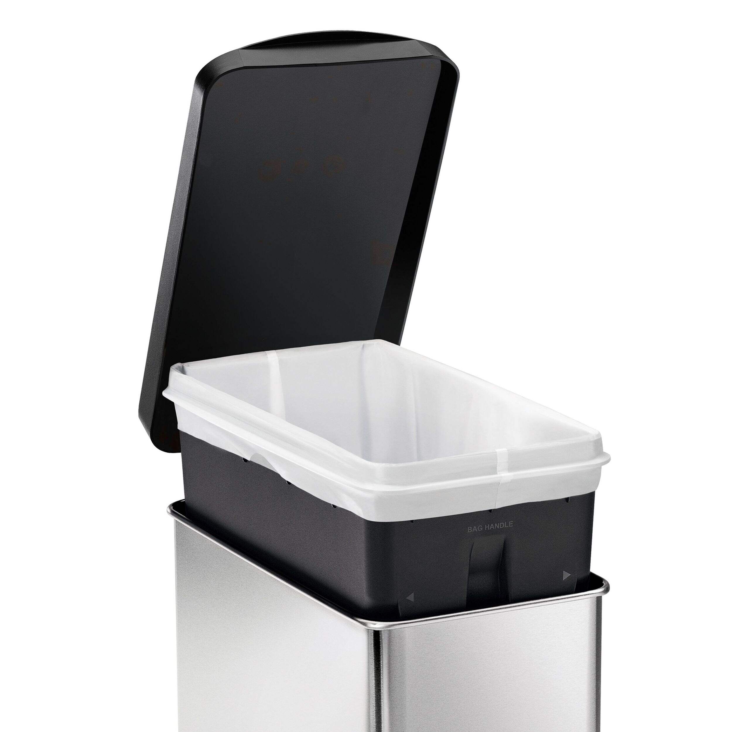 La poubelle à pédale rectangulaire en acier inoxydable simplehuman combine style élégant et fonctionnalité pratique, ce qui en fait une solution de gestion des déchets idéale pour les petits espaces. Fabriquée en acier inoxydable de grande qualité, cette poubelle est à la fois durable et résistante à la rouille et aux traces de doigts, pour une apparence propre et moderne. La pédale permet une utilisation mains libres, commode et favorisant l'hygiène, tandis que le couvercle à fermeture douce prévient les claquements bruyants.
