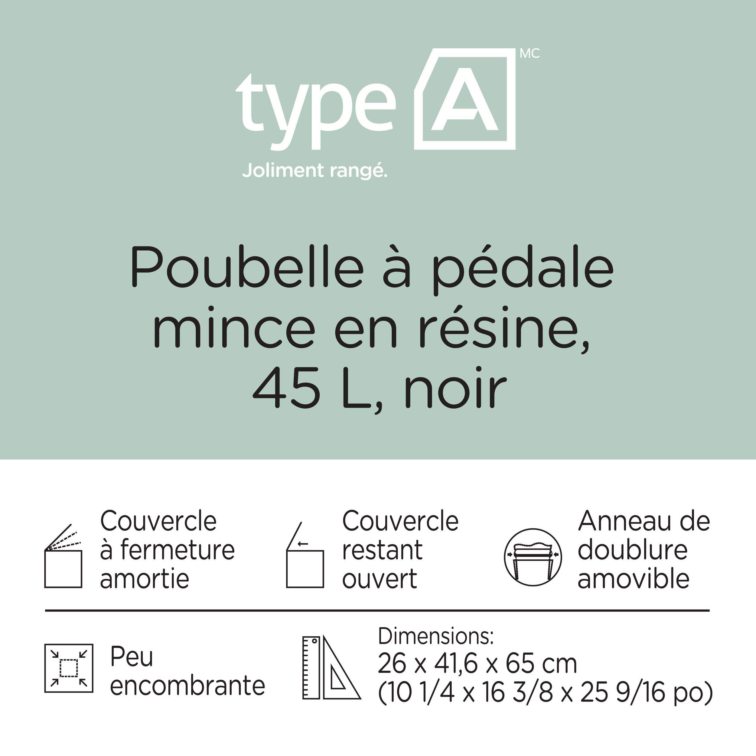 Poubelle mince en résine Type A noire qui est en plastique de haute qualité avec un couvercle à pédale