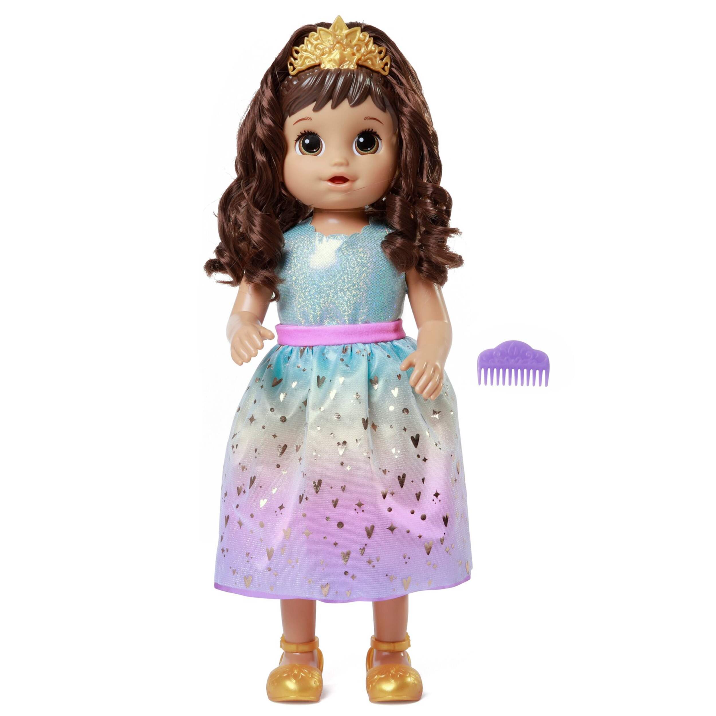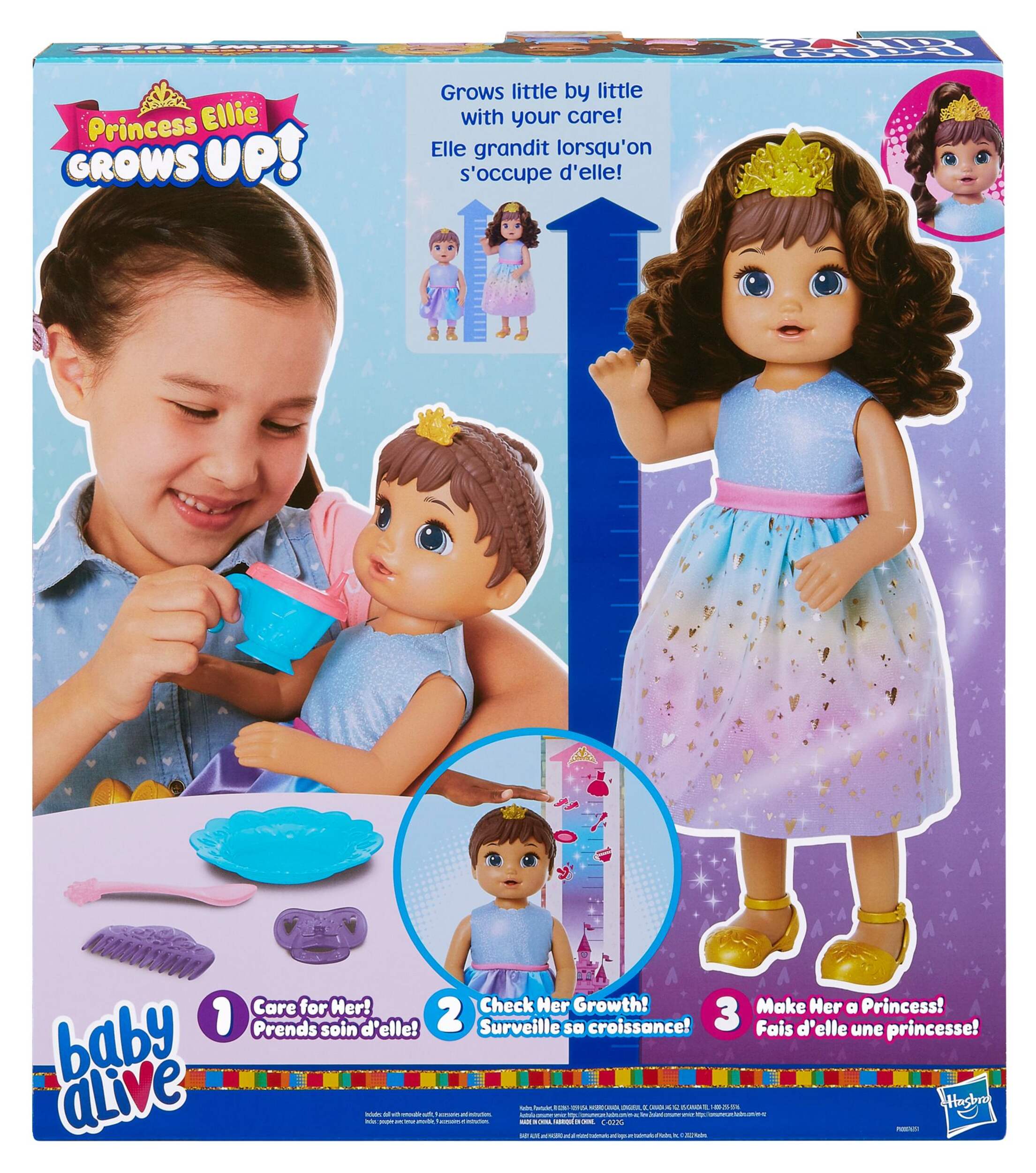 Poupée de princesse Ellie Baby Alive Grows Up! La poupée Like Me Isabella à cheveux bruns est une poupée parlante de 45 cm (18 po) qui répond aux soins avec plus de 75 sons et phrases