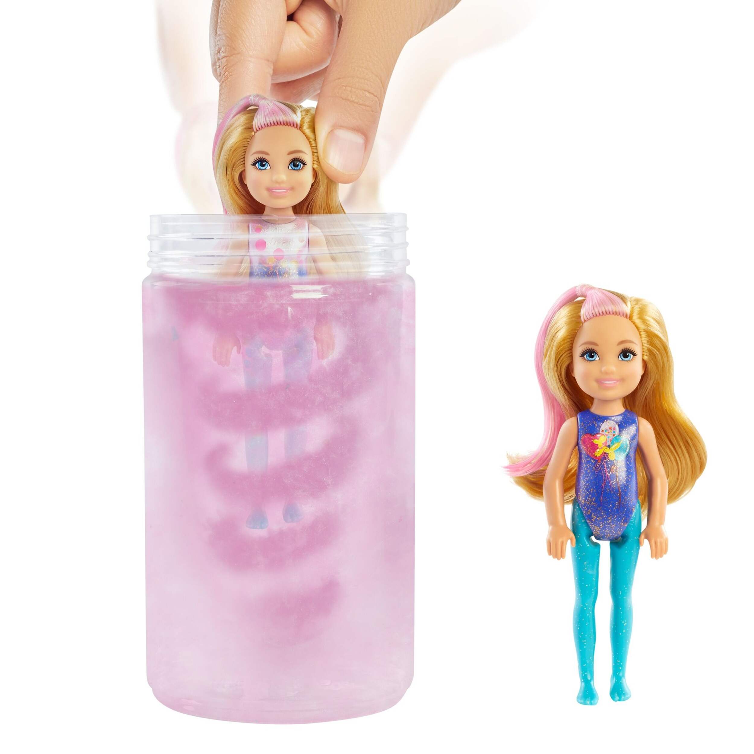Chaque poupée a une combinaison différente de couleur d'yeux, de cheveux avec racine qui changent de couleur, de couleur de peau, de couleur de lèvres, de jambes pailletées opaques et de léotard décoré, mais les surprises continuent à ouvrir les sachets pour découvrir une brosse à cheveux à deux côtés et une éponge, une paire de boucles d'oreilles, une jupe et une paire de chaussures