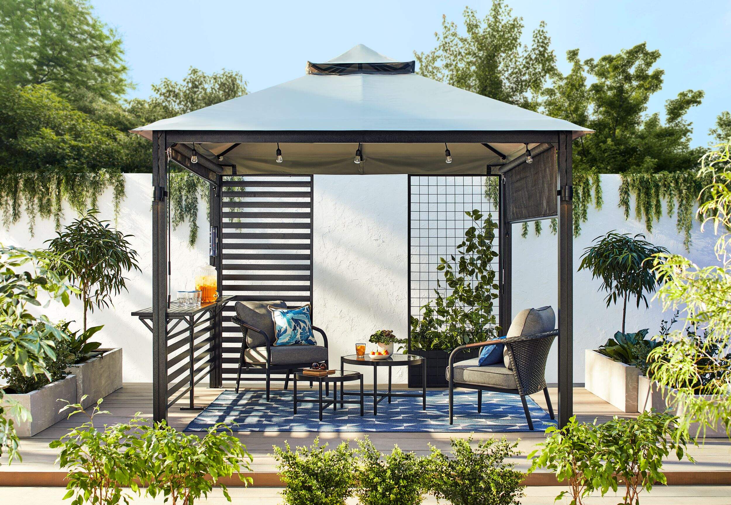 Combinez-le avec d'autres accessoires (vendus séparément) pour personnaliser votre espace : Paroi d'intimité (CT 188-1319), auvent rétractable (CT 188-1320), trousse d'extension (CT 188-1321)