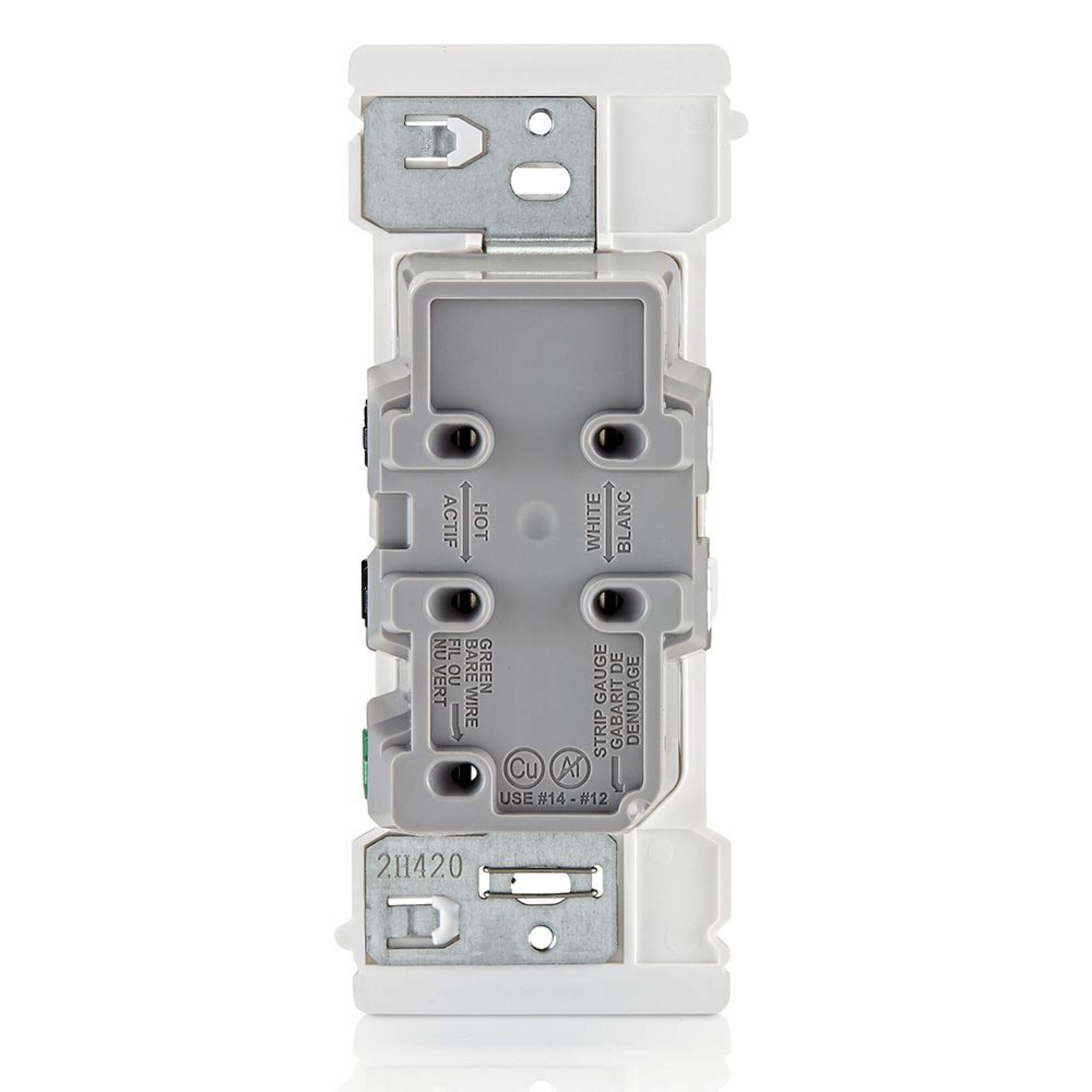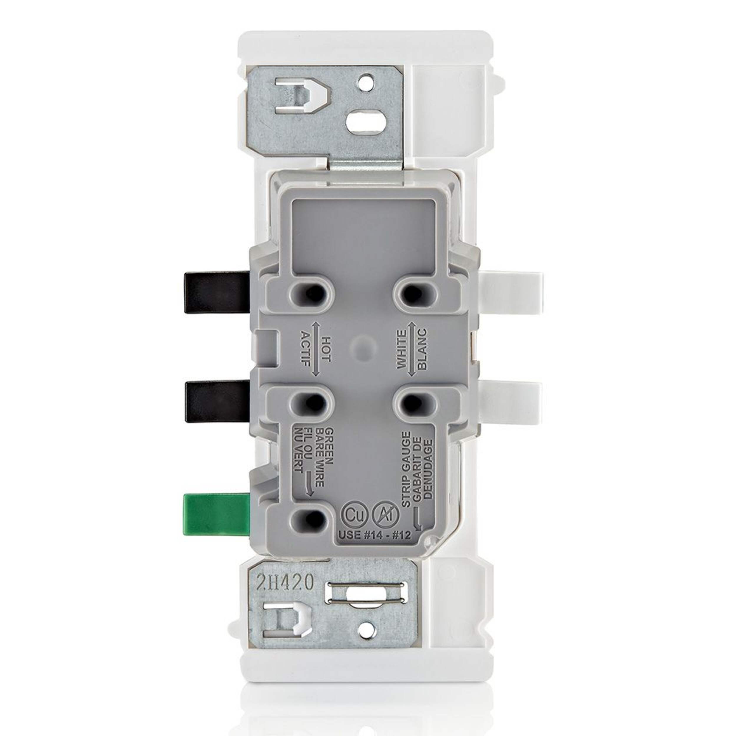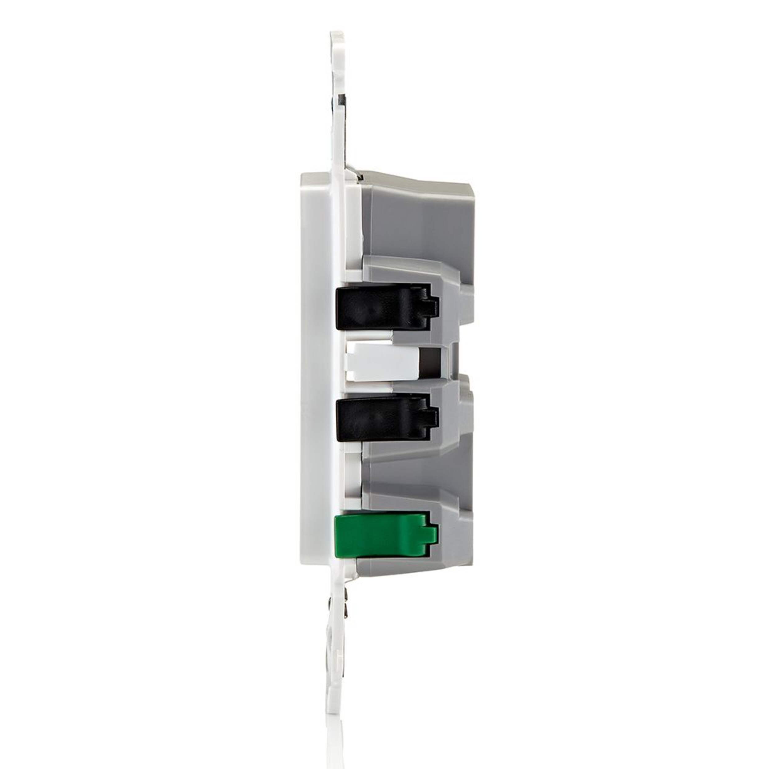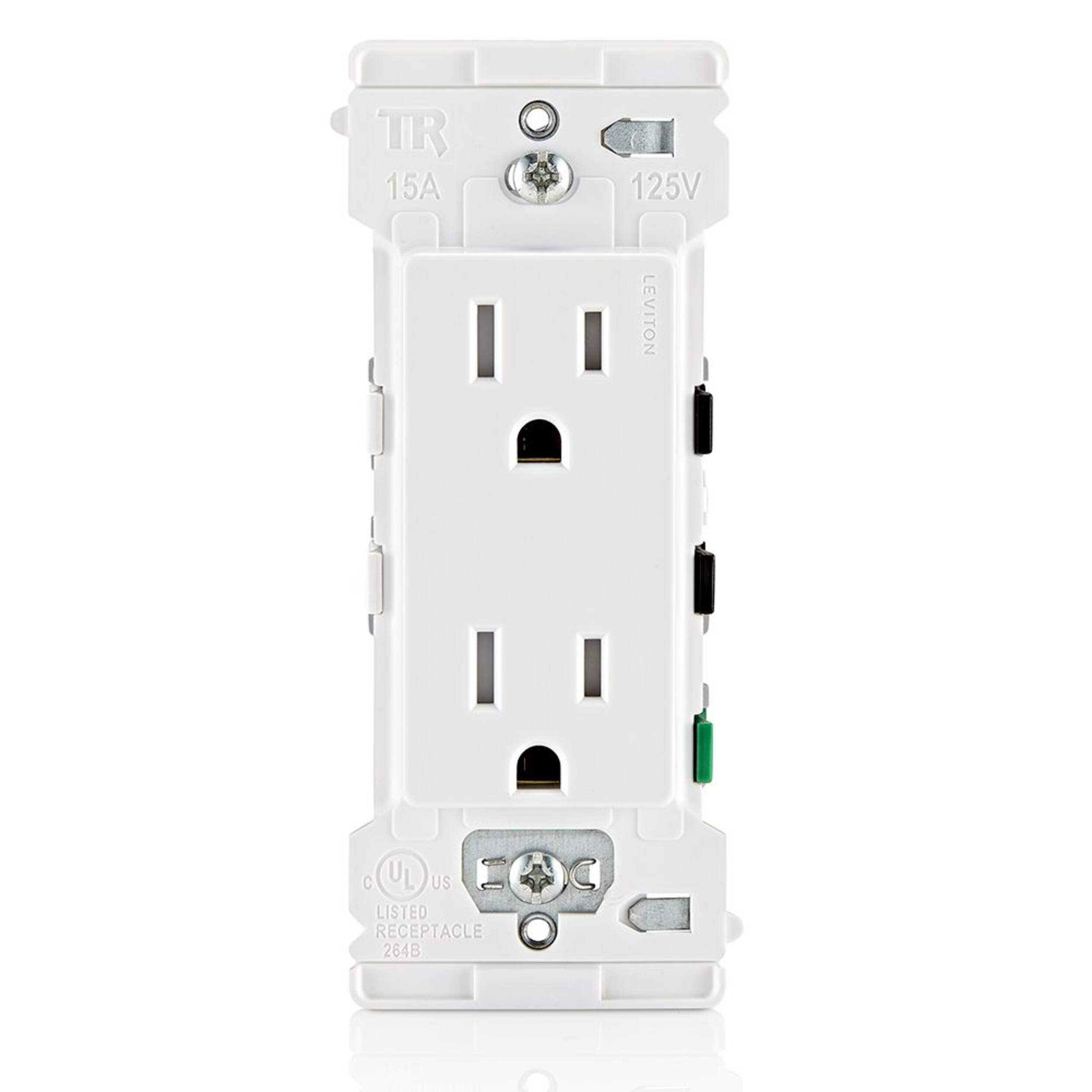 Prise de courant Leviton Decora Edge 15 A 125 V plus rapide, plus sécuritaire et plus facile à installer grâce à sa fonctionnalité Push, Click, Done