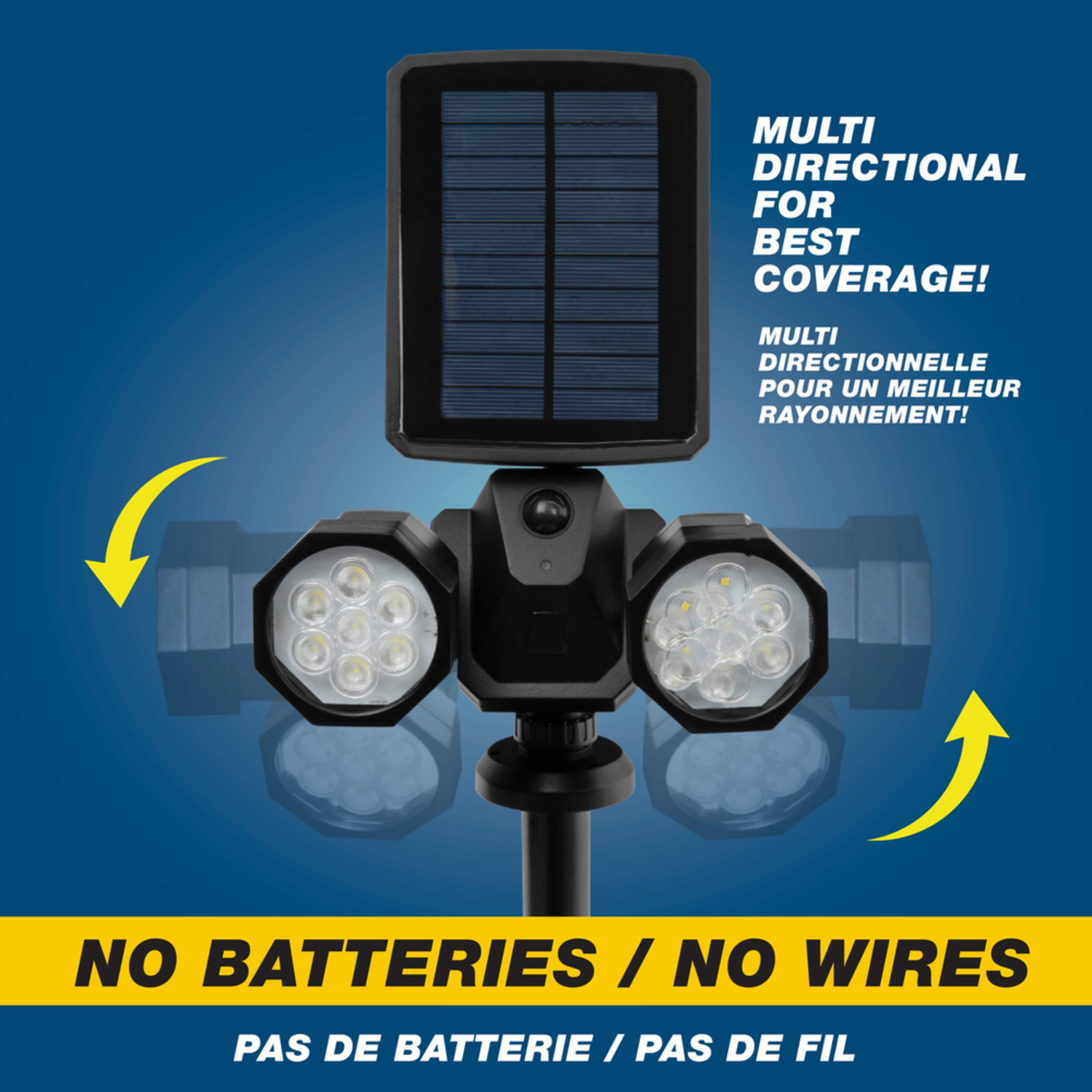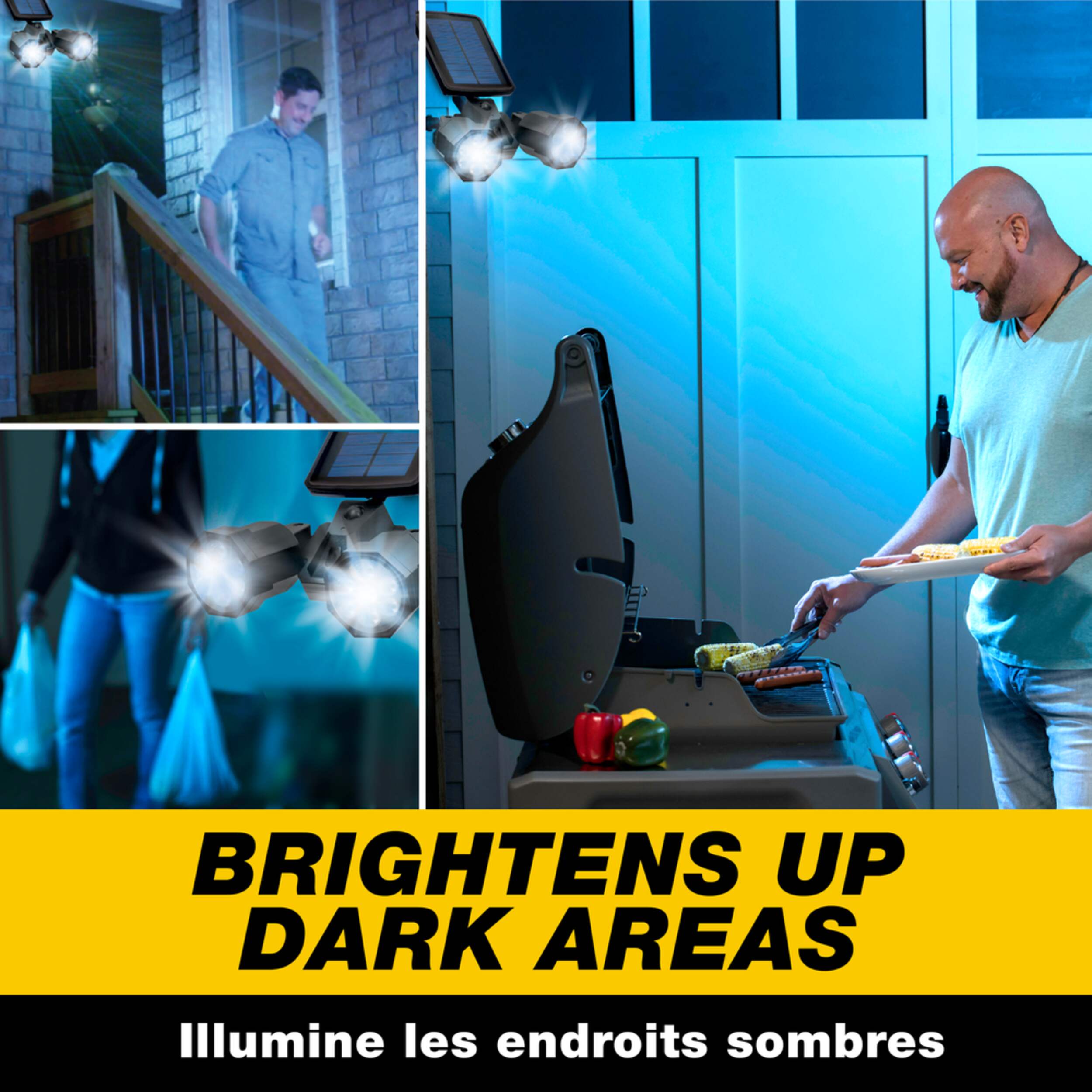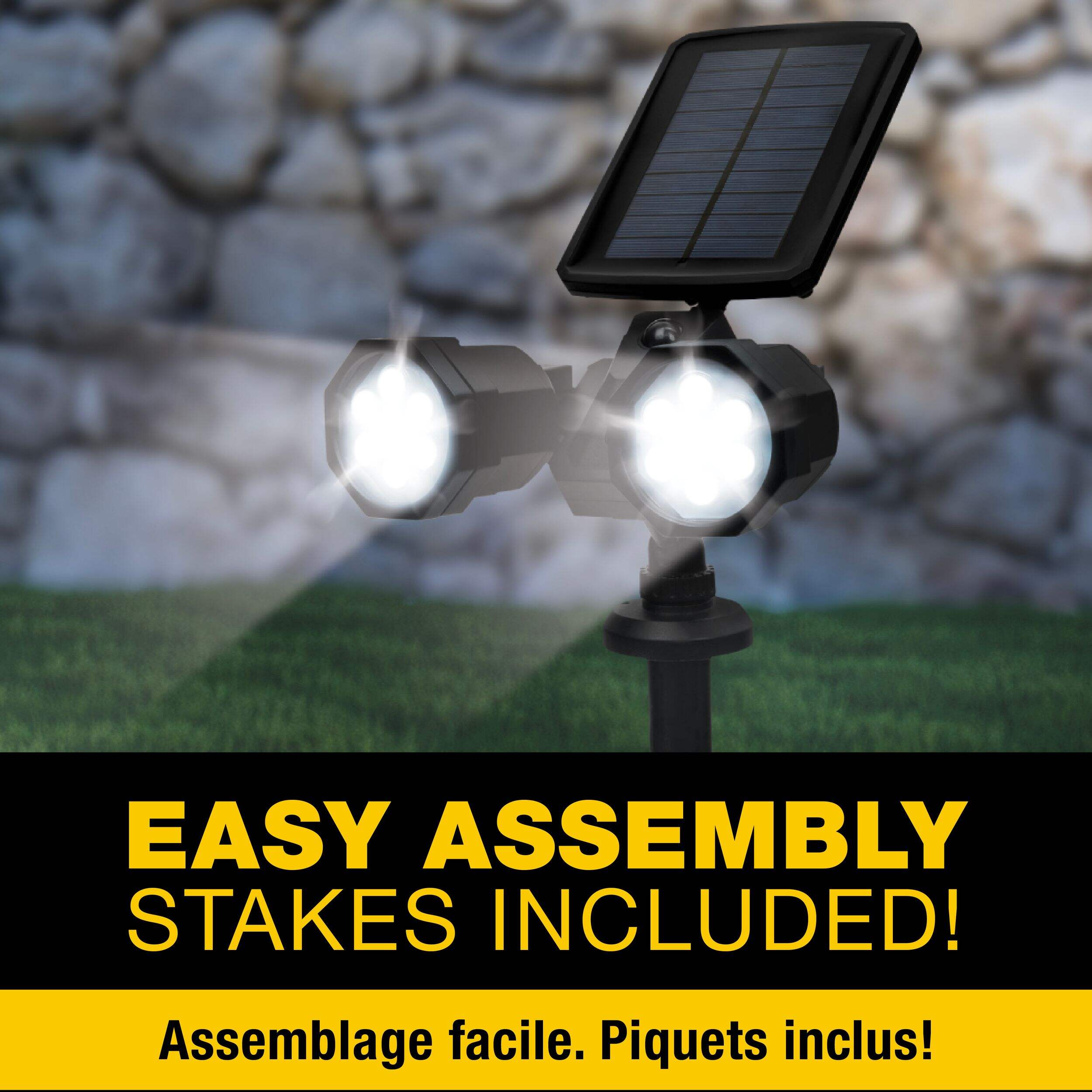 Projecteur Bell & Howell Bionic Spotlight Duo comme à la télé constituant une lampe de surveillance solaire
