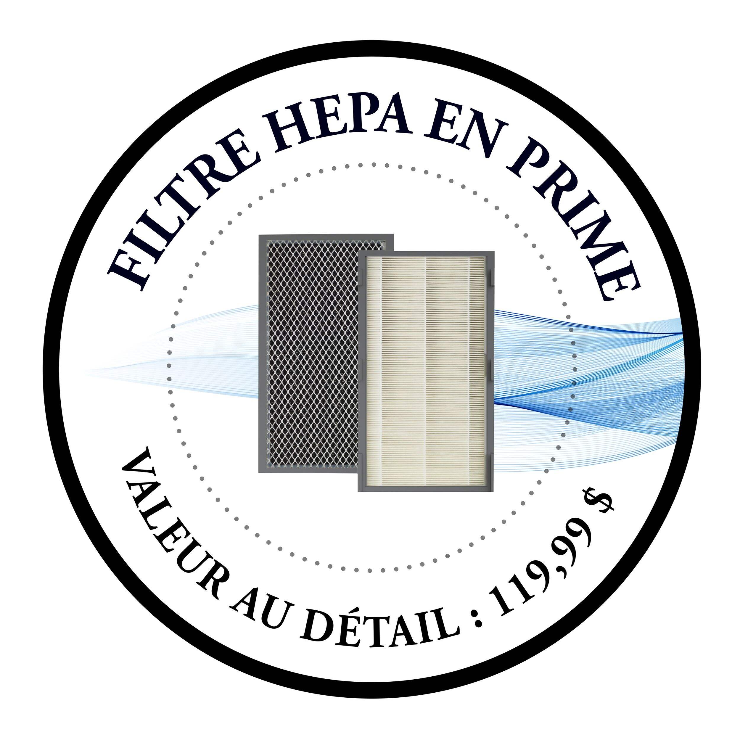 Filtre HEPA de grande qualité H13, filtres au charbon actif amovibles, préfiltres en métal réutilisables purifiant jusqu'à 1 000 pi2 2 fois par heure