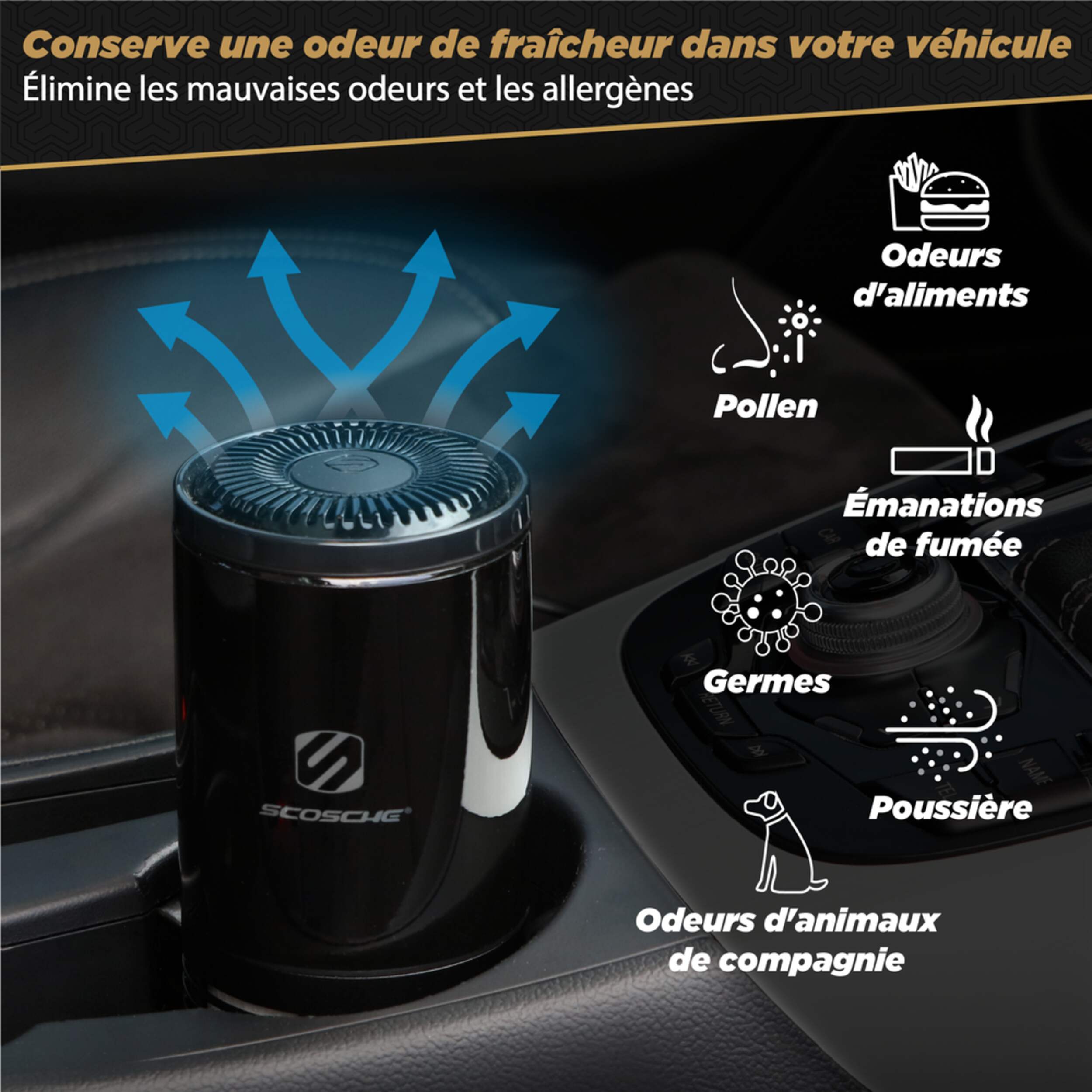 Purificateur d'air portatif HEPA pour l'auto Scosche FrescheAir 2 conçu pour tenir dans le porte-gobelet de votre véhicule
