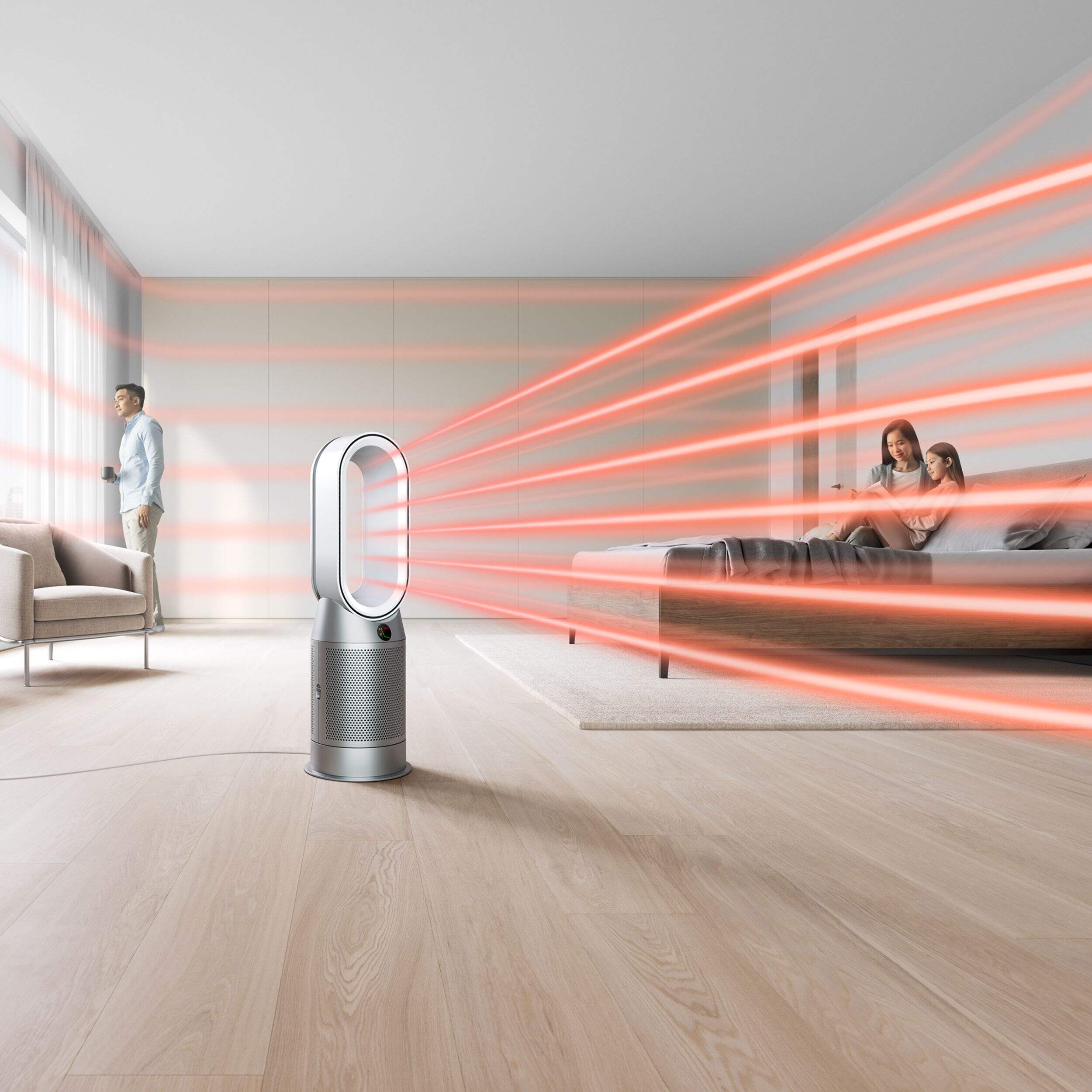 Le radiateur ventilateur purificateur d'air oscillant Dyson HP07 Purifier Hot + CoolMC sans lames combine une détection intelligente avec un système de filtration avancé HEPA qui capture les gaz et particules aussi petites que 0,3 microns pour un air propre et pur. Sa technologie Air MultiplierMC génère la puissance de circulation requise pour attirer même les polluants les plus éloignés dans la machine et projette de l'air purifié dans toute la pièce. Détecte, capture et emprisonne automatiquement les polluants pour un air plus pur. Grâce à sa projection longue portée, il réchauffera rapidement et uniformément toute la pièce, et par temps chaud, le puissant flux d'air purifié vous rafraîchira.